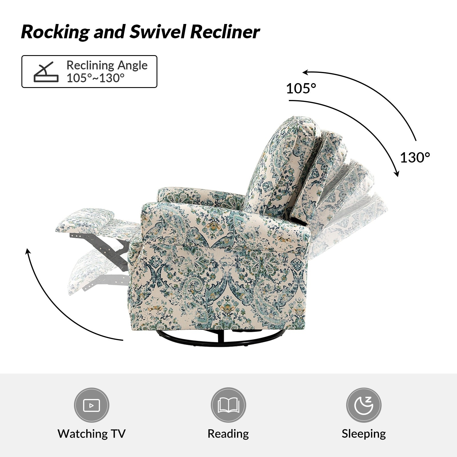 Relaxation and Comfort: With cozy backrest support, multiple reclining positions, 360°swivel, and smooth gliding motion, this recliner set is designed to provide full comfort to your body.