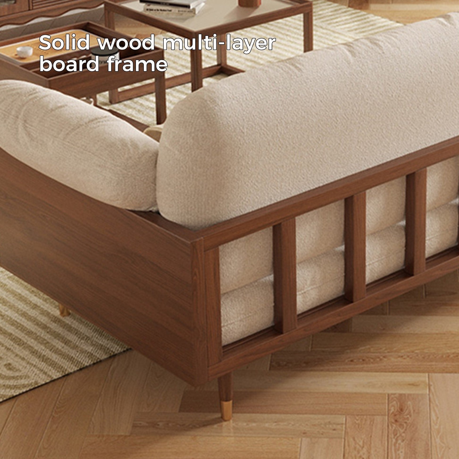 This is a three-seater sofa. The combination of solid wood base and foam material, comfortable and stable. The cotton and linen fabric is simple and easy to clean.