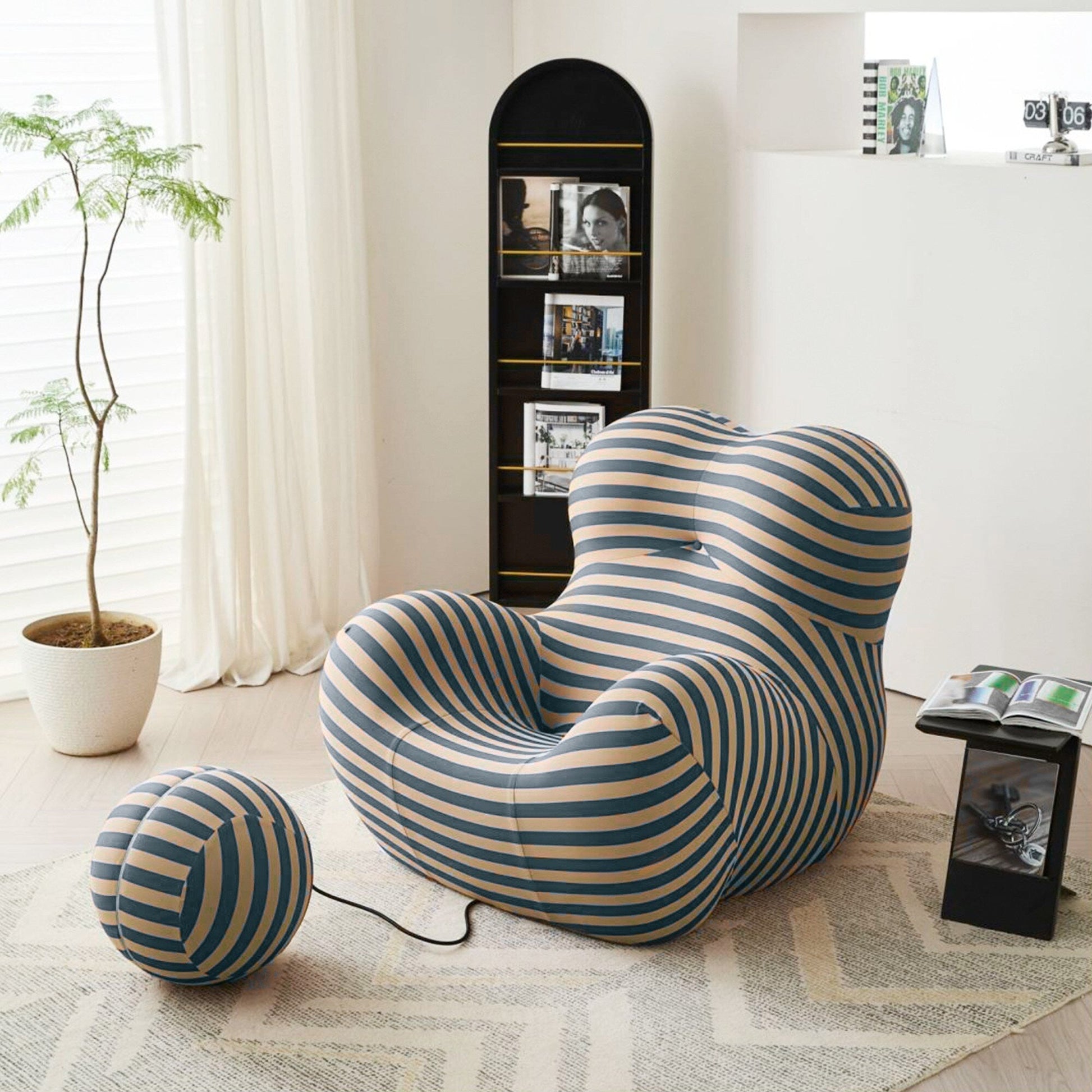 • Ball Footrest- The footrest boasts a unique spherical design that serves both as an eye-catching feature and a comfortable spot to rest your feet, with a soft, inviting texture.