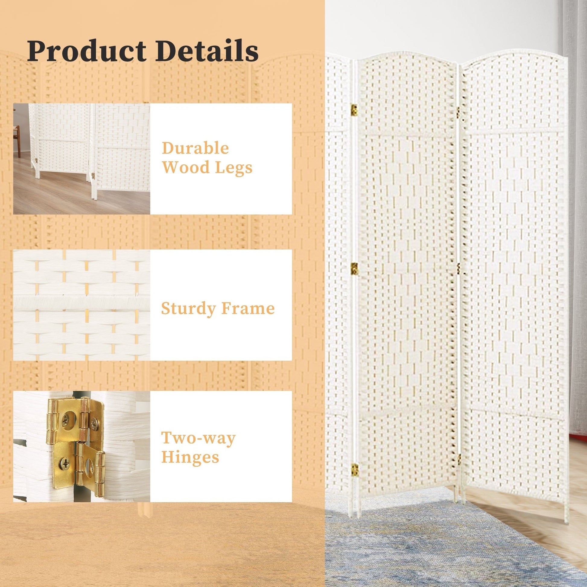Discover versatile privacy and decor enhancement with our freestanding room divider. It functions as a sunscreen, room partition, and decorative cover, perfect for indoors and outdoors. Featuring 360° directional two-way hinges, the room divider folds flexibly for easy setup and storage. Ready to use upon arrival with upgraded packaging, it's crafted from lightweight, high-density woven fiber for durability. The privacy screens are available in brown, grey, and off white, choose from sizes accommodating 6 or 8 panels to fit your space seamlessly. Ideal for creating private spaces or adding aesthetic appeal to any environment effortlessly.