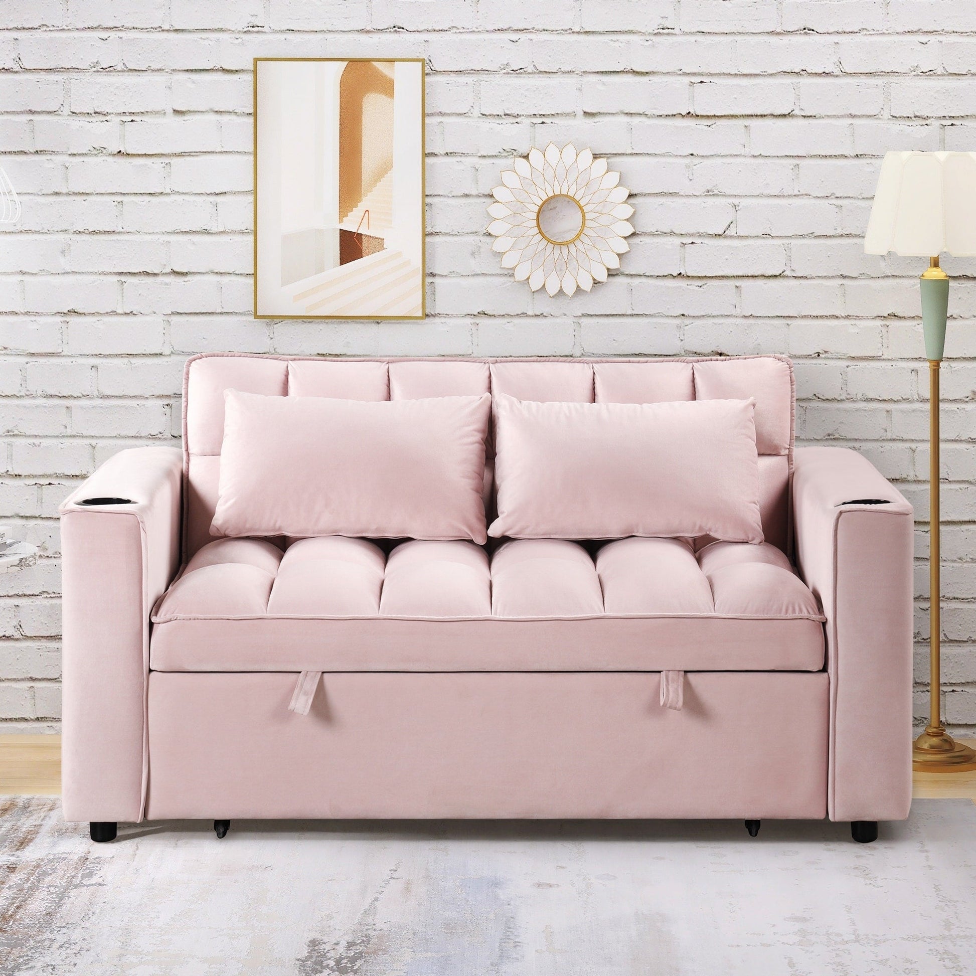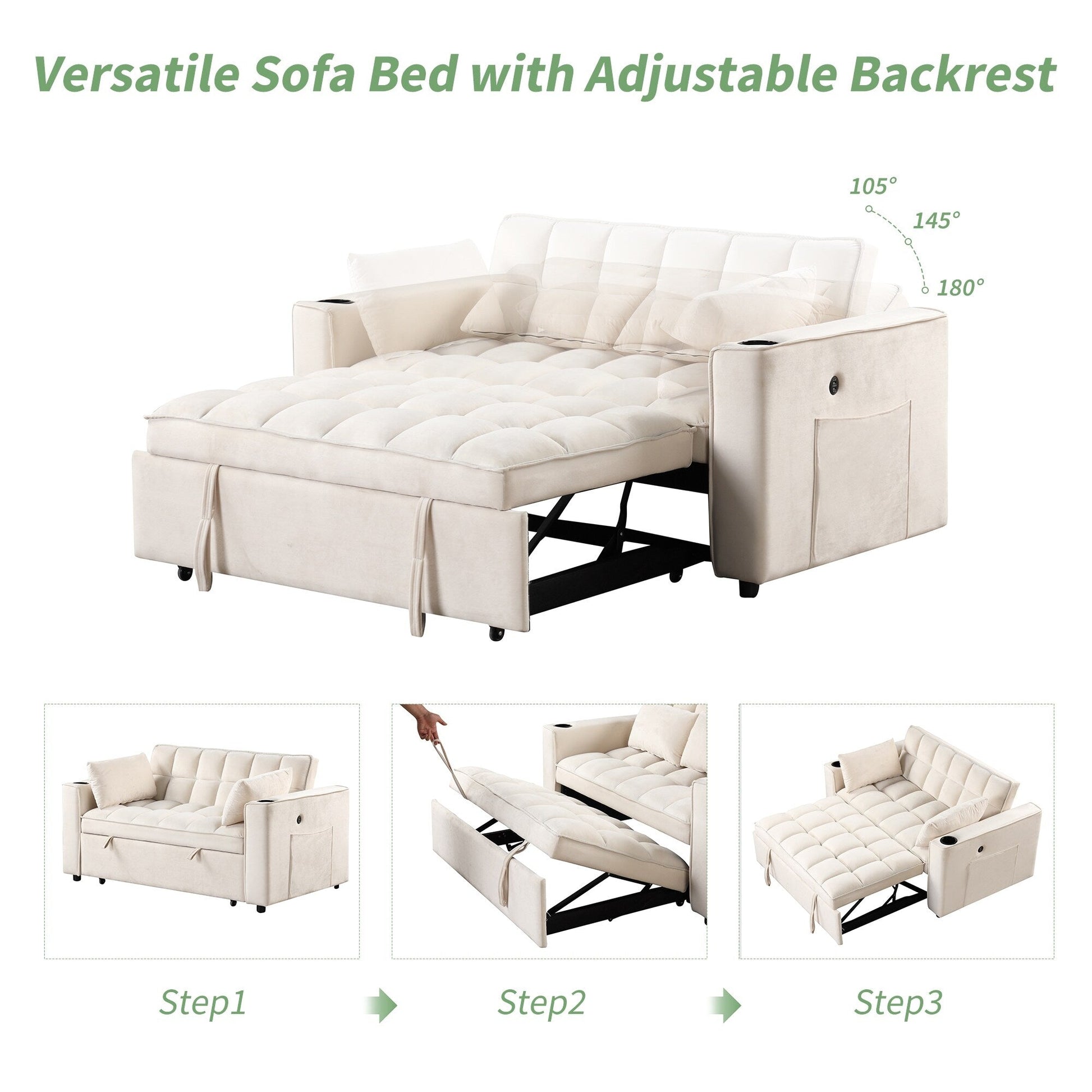 Multi-Functionality: Equipped with a convenient cup holder and USB port, this sofa bed combines comfort with functionality, providing a perfect solution for your living space.