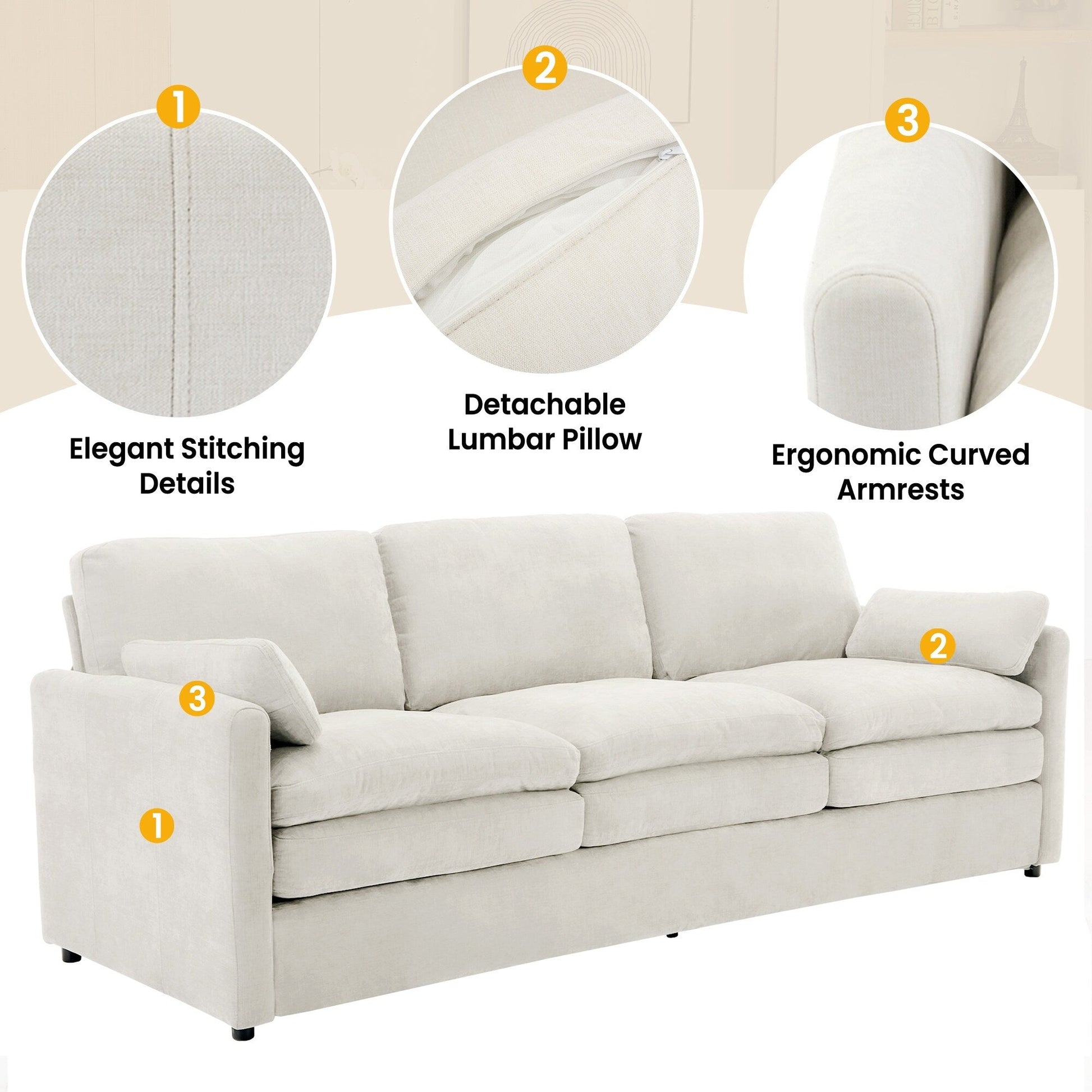 Wrapped in ultra-soft chenille, this 3-seater sofa offers a plush, refined texture that feels luxurious and resists everyday wear?î¯erfect for modern living spaces.