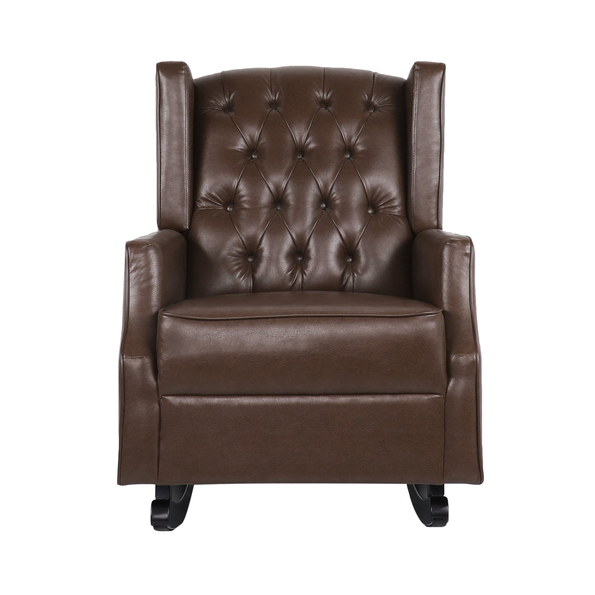 Wingback silhouette, tufted backrest, and sleek upholstery give this rocker a refined modern look that adds cozy sophistication to any living space.