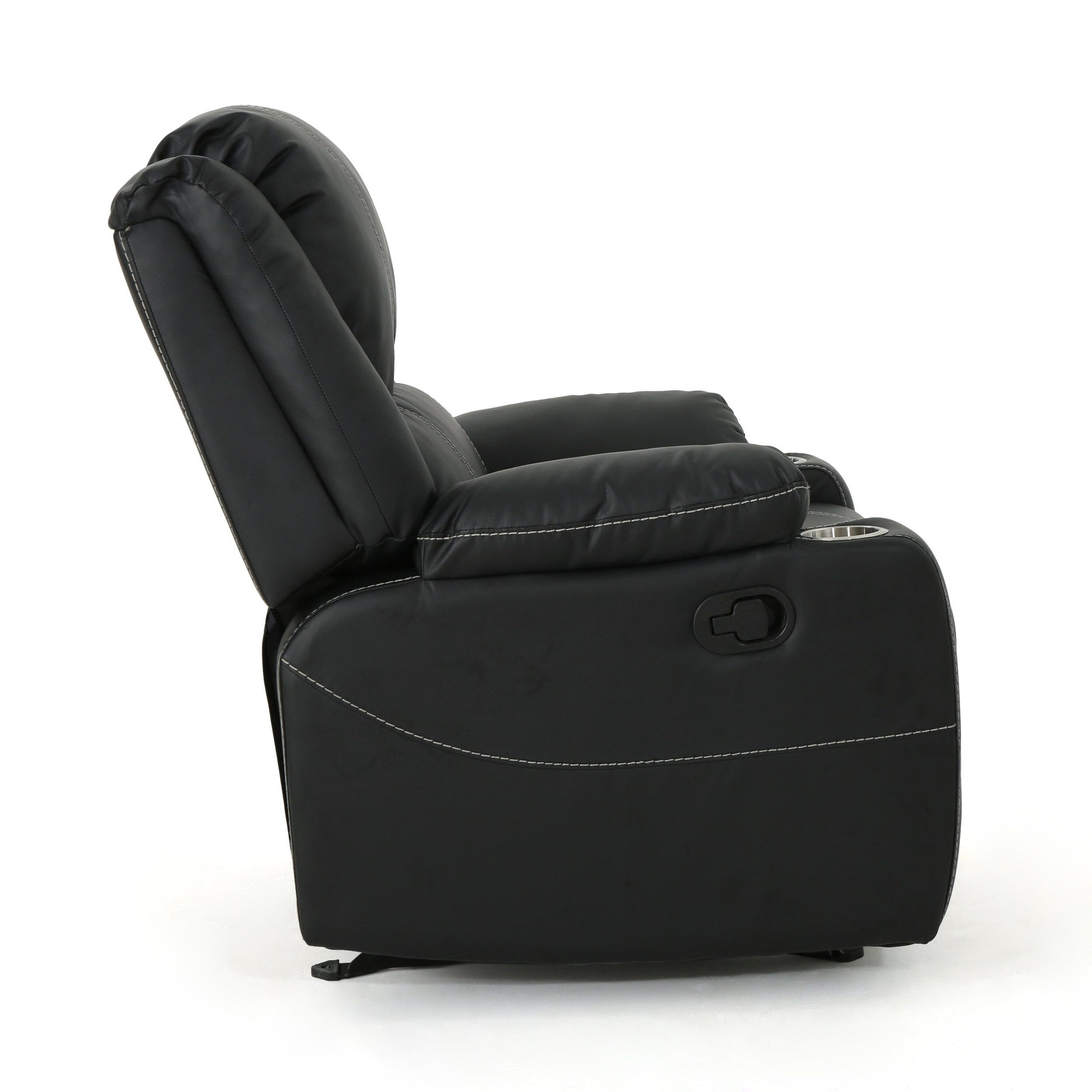 Roomfitters Glider Recliner with Steel Cup Holders, Comfortable Recliner for Living Room, Bedroom, Black