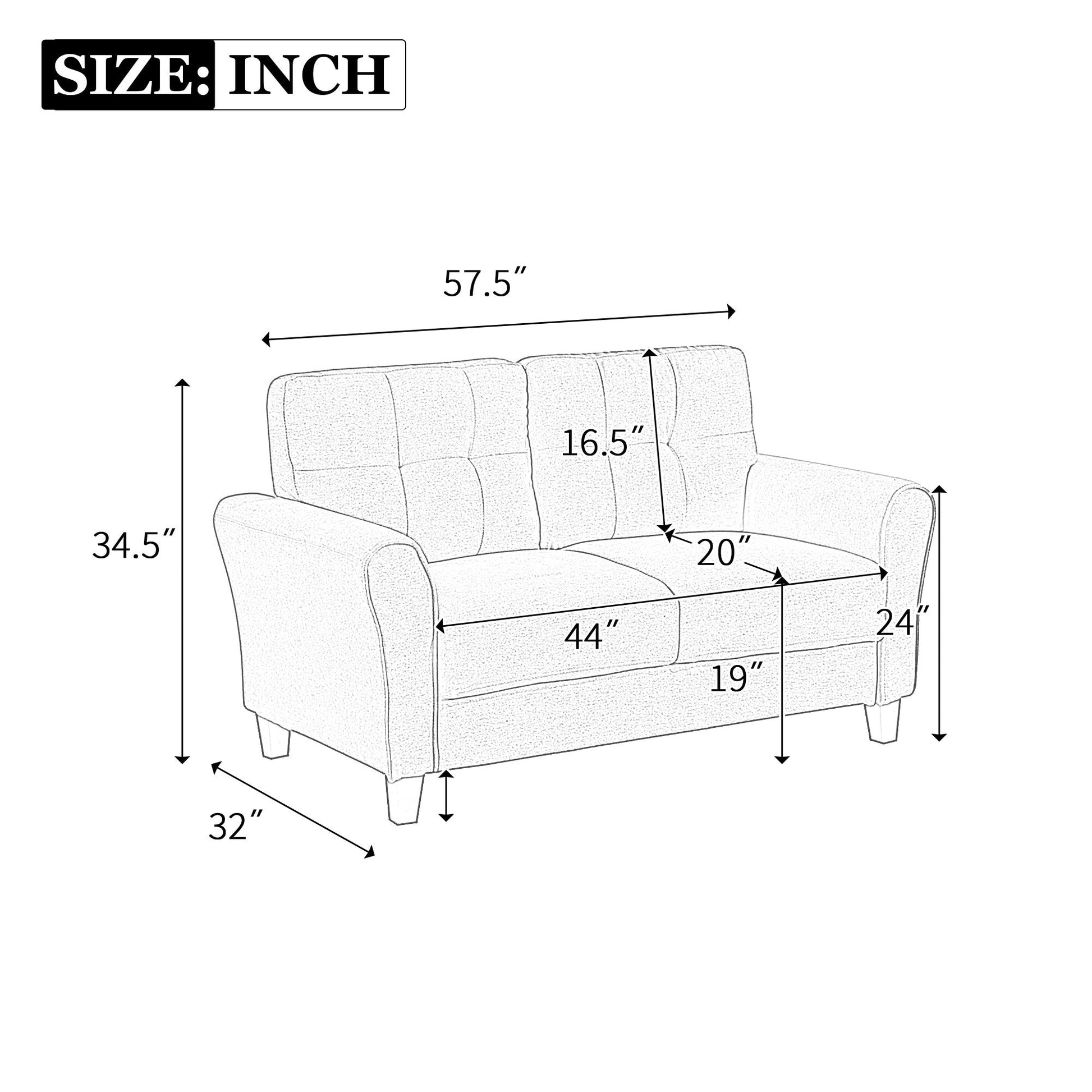Roomfitters Modern Linen Upholstered Loveseat, Compact 2-Seat Couch for Living Room or Office Elegance