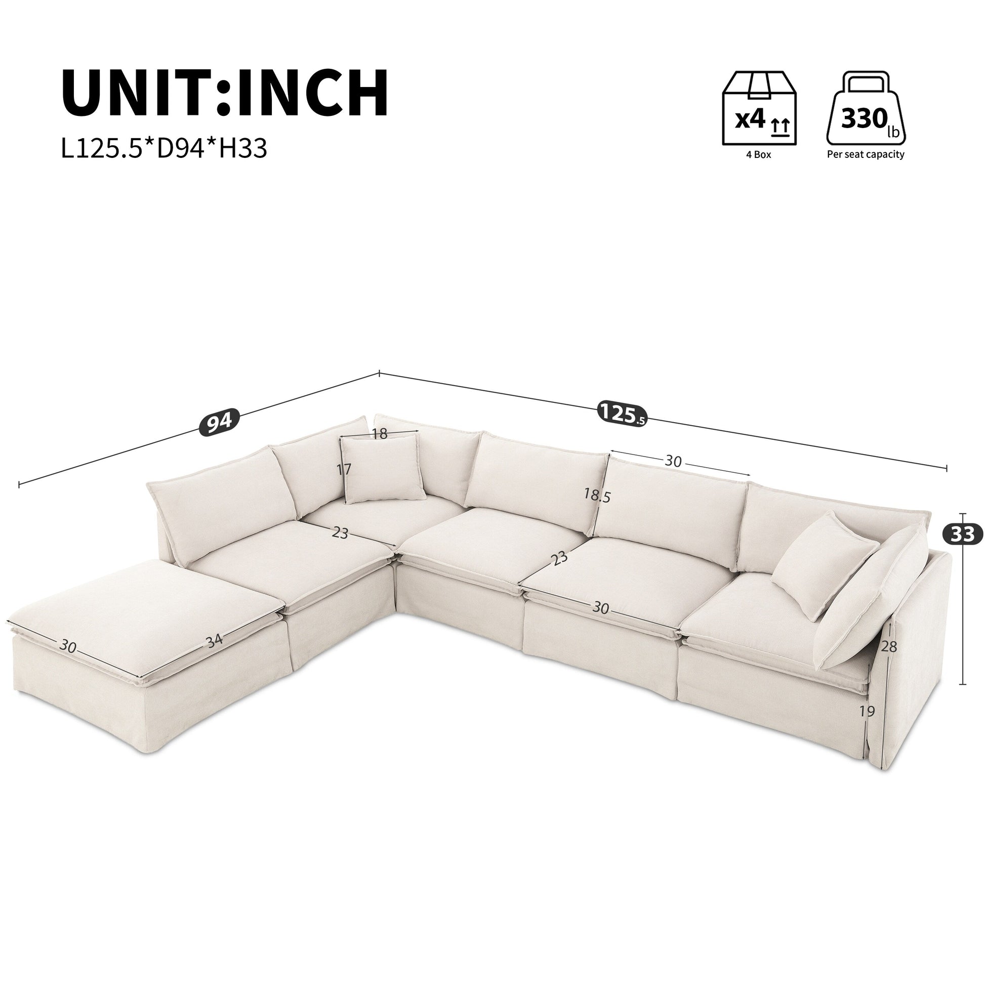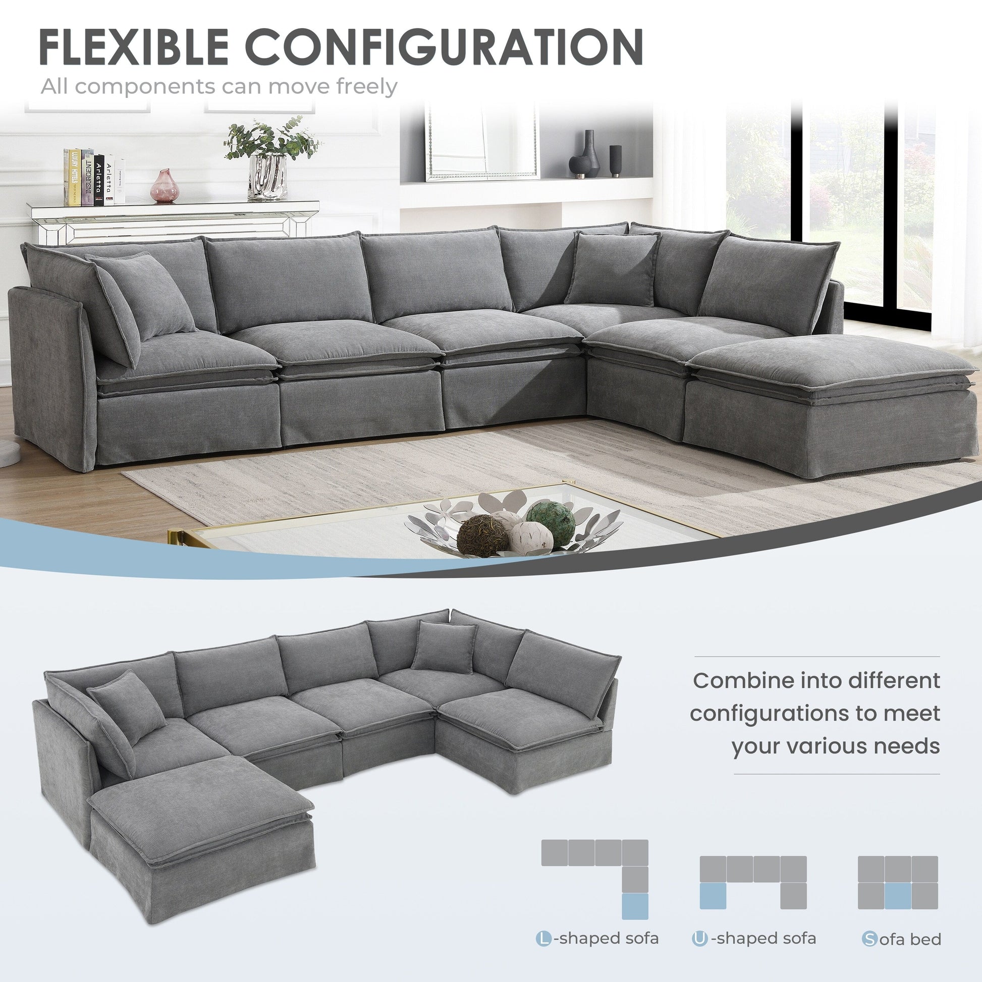 Roomfitters Modular Sectional Sofa with Movable Ottoman, Wide 6-Seat L-Shaped Chenille Couch for Living Room