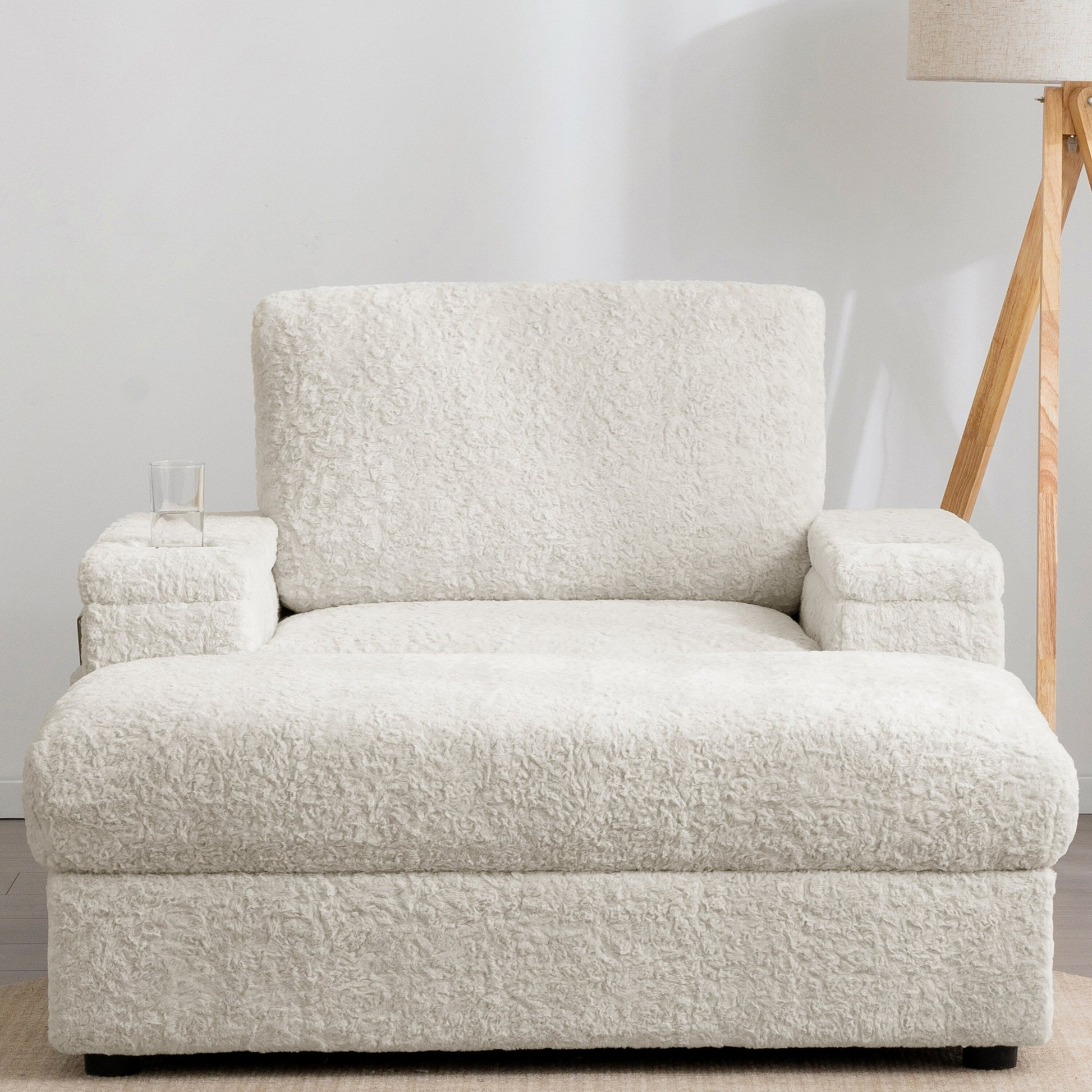 Hidden armrest storage keeps remotes and chargers neatly tucked away, while dual side pockets provide quick access to your favorite reads, snacks, or small essentials.
