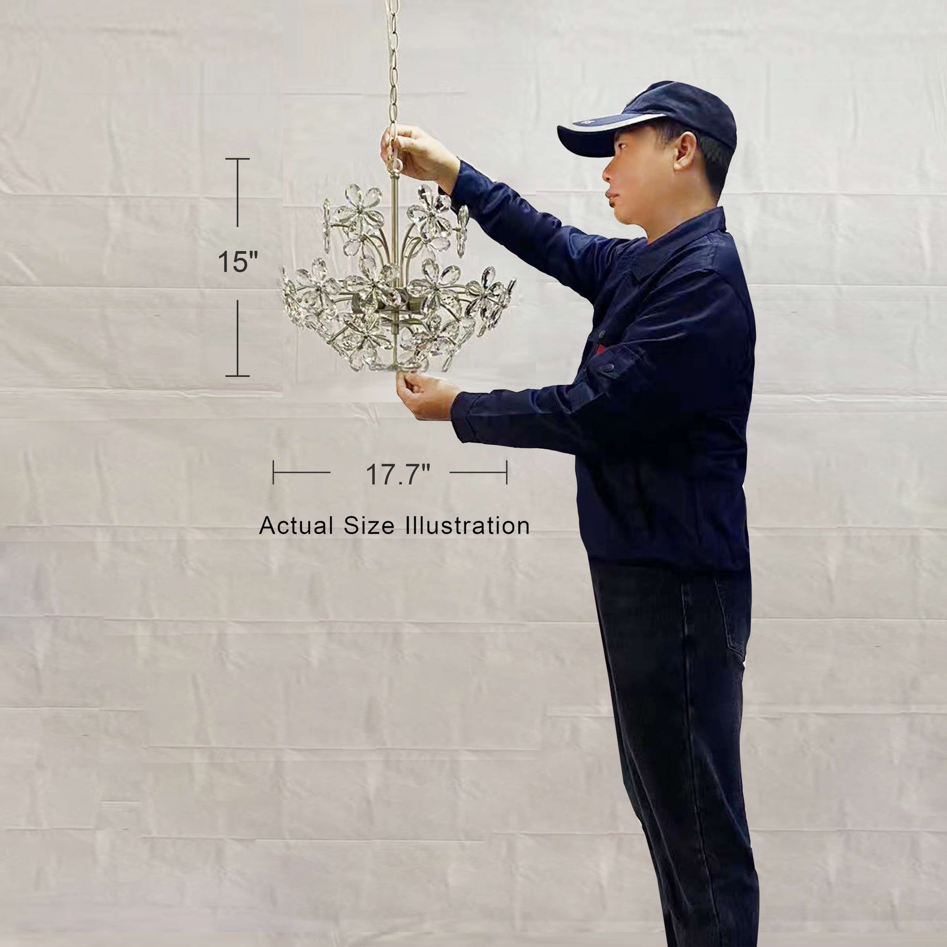 Transform your space with the Rosa 6-Light Brushed Silver-ish Champagne Flower Crystal Chandelier. This elegant fixture features crystal flower accents that add sophistication to any room. With a 39.4-inch adjustable chain, you can customize its height for perfect placement in dining rooms, living areas, or entryways. The chandelier's six light sockets ensure ample illumination, while the brushed silver-ish champagne finish enhances its modern look, beautifully complementing the sparkling crystals.Dominant color champagne, secondary color silver, brushed with brown. The ceiling plate is made of iron; shade: N/A.