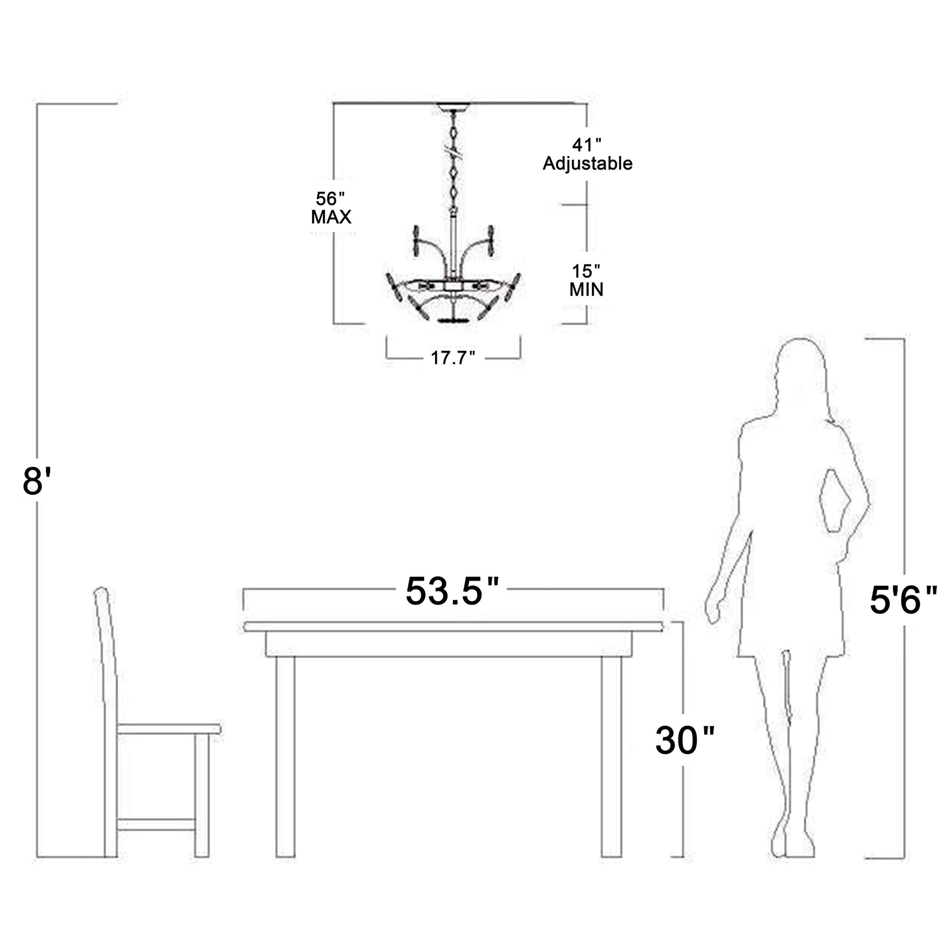 Fixture: 17.7 inches in diameter x 15 inches H; Ceiling plate: 5.1 inches in diameter x 1 inch H.