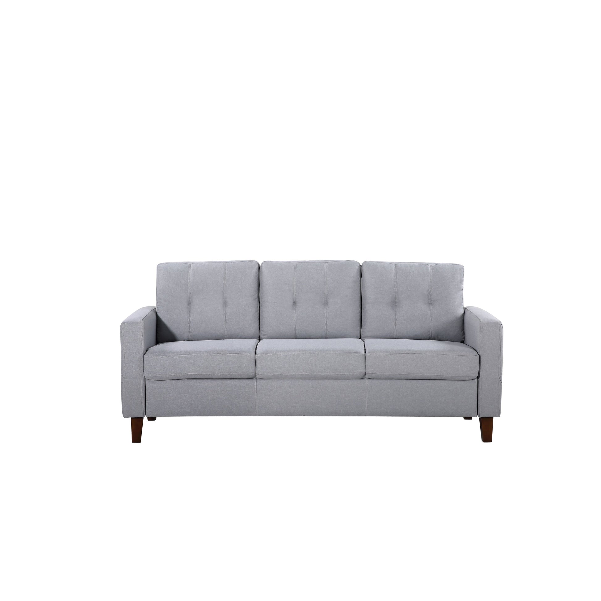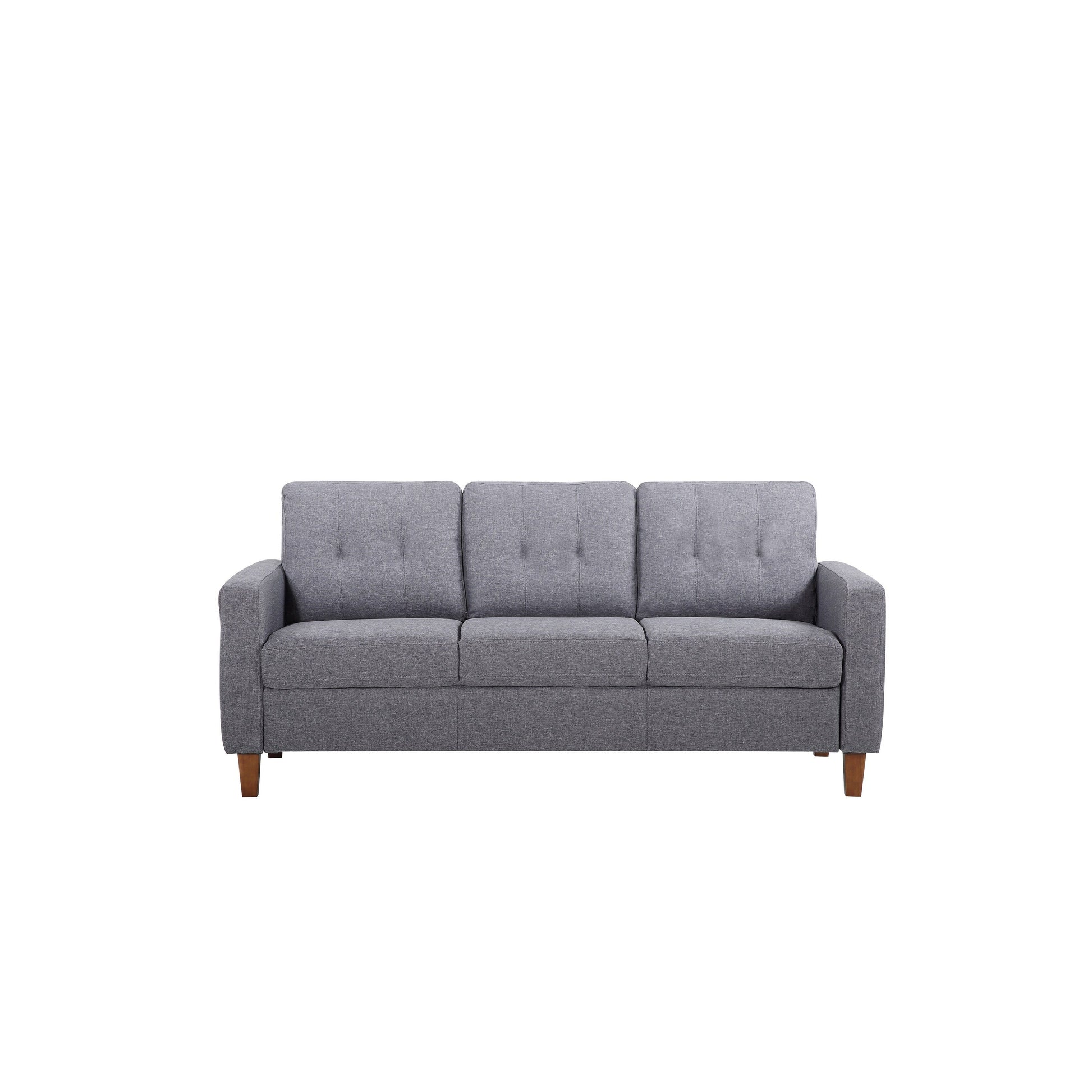 Upgrade your living room with the Rossetti Mid-Century Tufted Upholstered Sofa. With its versatile style, this sofa is the perfect addition to any transitional seating area. The tufted details and choice of beige, light gray or dark gray upholstery make it easy to incorporate into any color scheme. The sofa is filled with linen for a comfortable seating experience, and its mid-century style adds a touch of sophistication to your decor. Assembly is required.