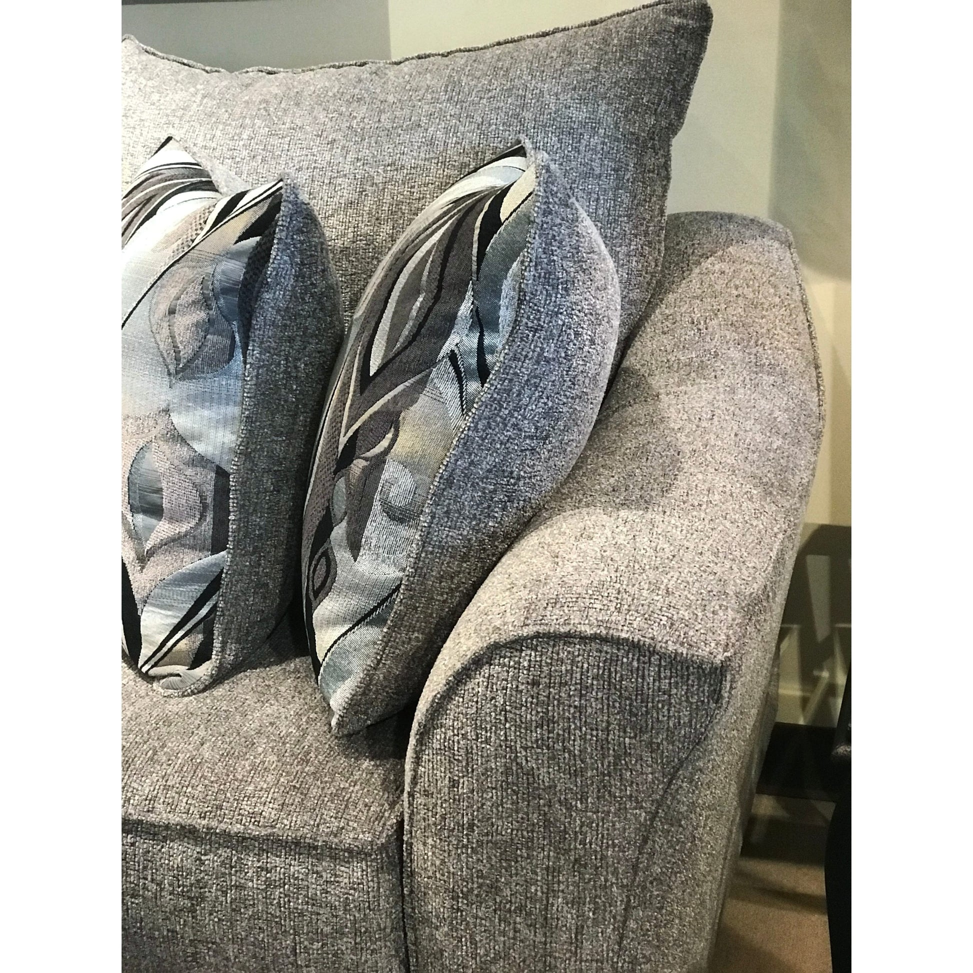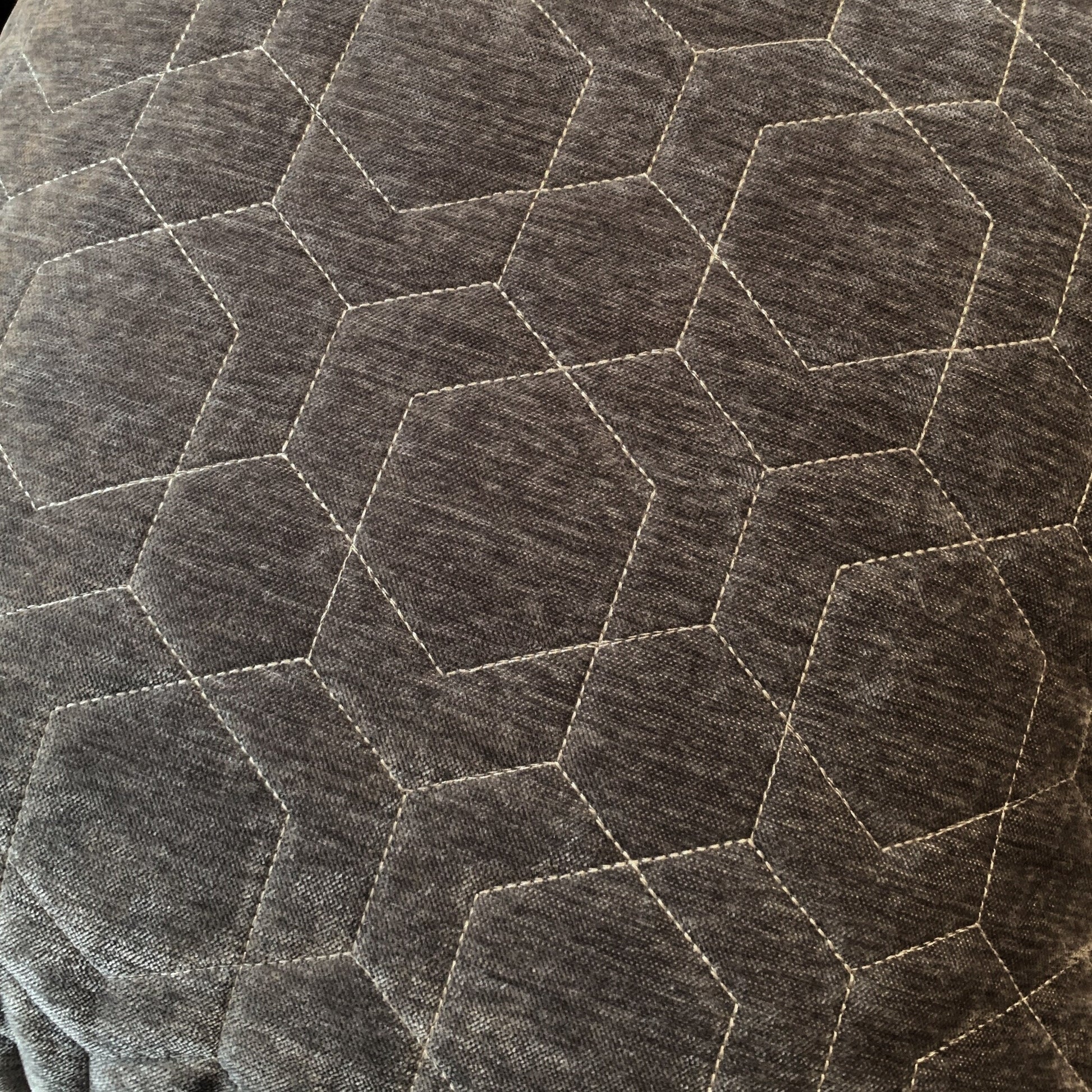 Textured fabric upholstery with overstuffed back cushions to provide comfort, throw pillows included.
