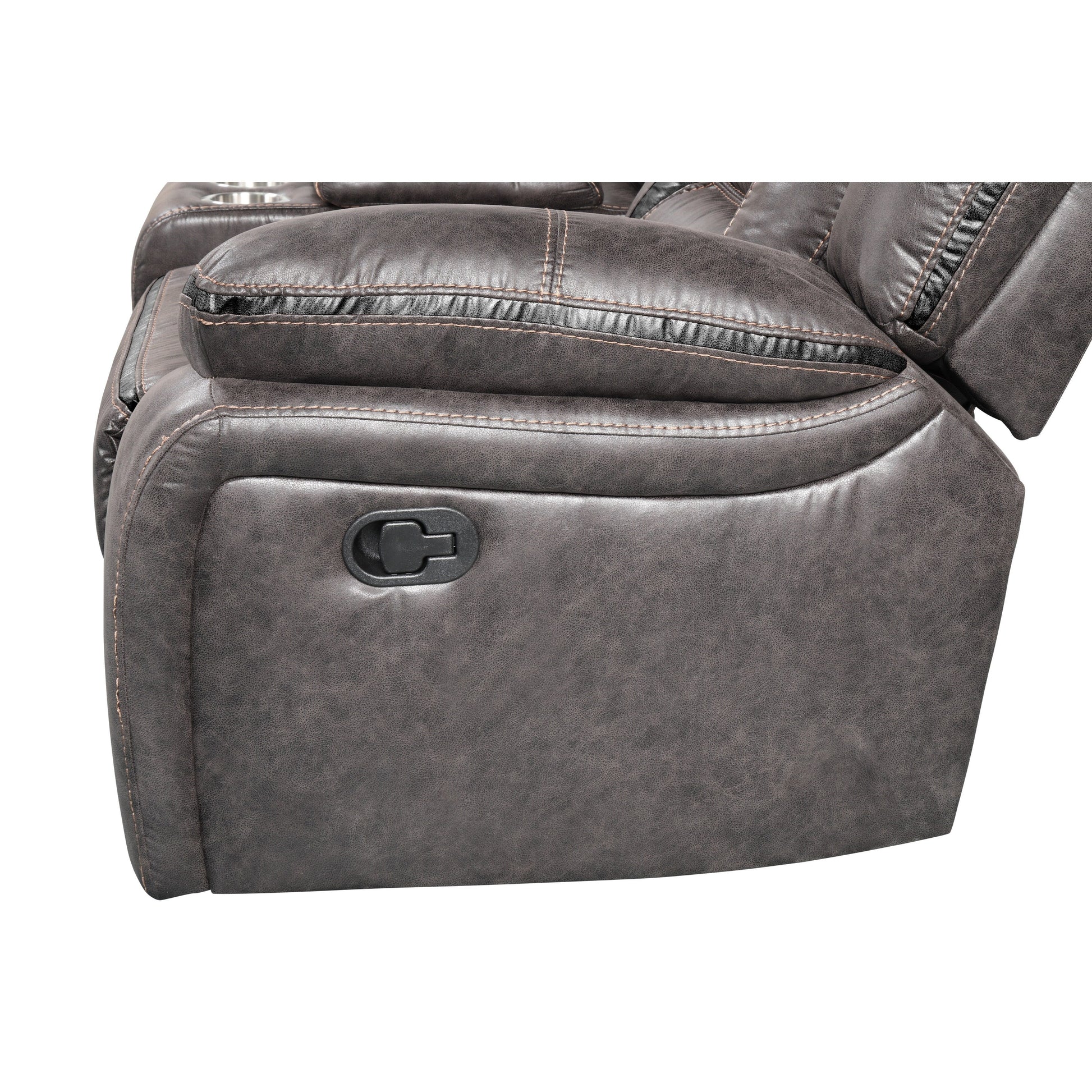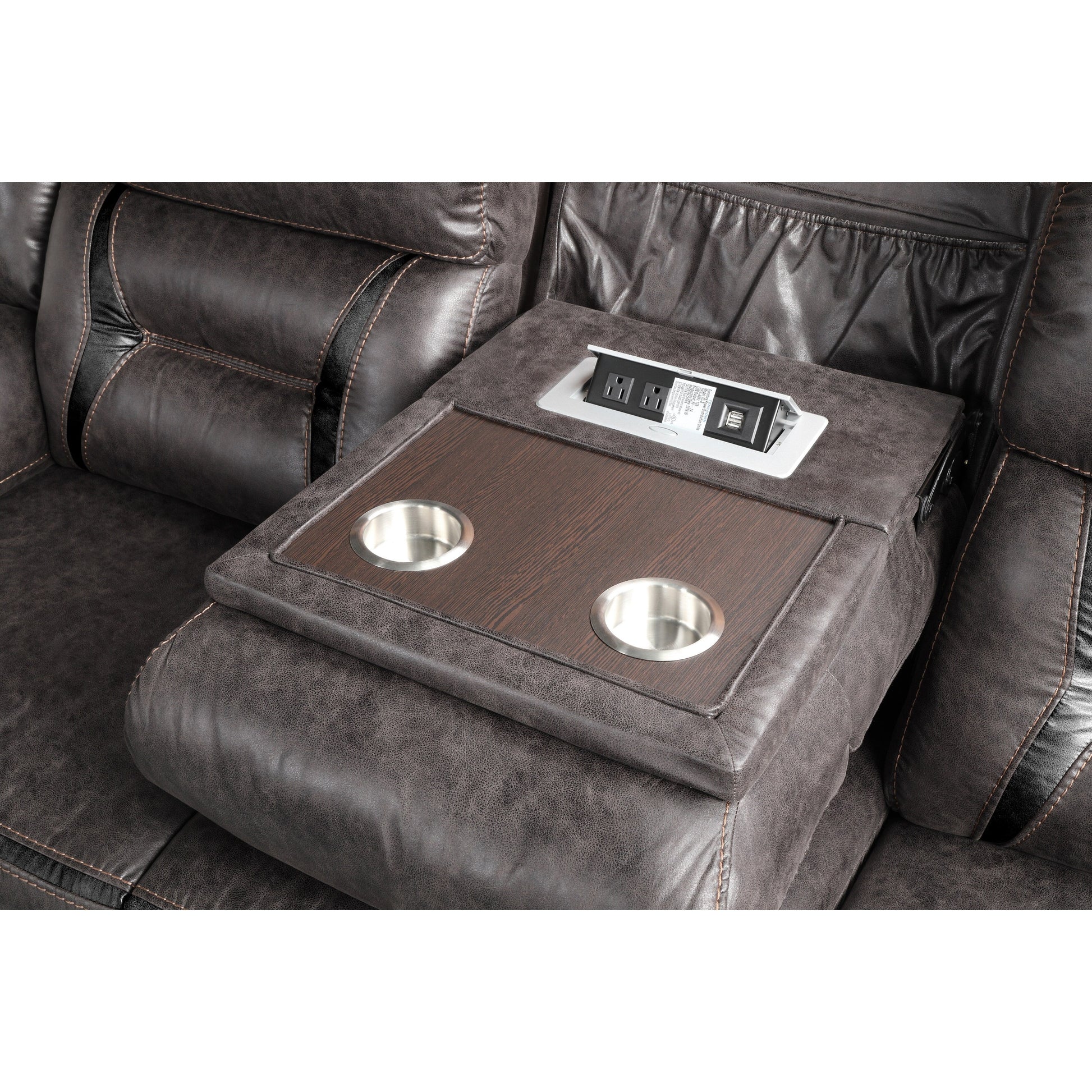 Double recliner, the seatback in the middle features two sleek stainless steel cupholders for your beverages, the power outlets located by the console makes it so easy to keep your electronic devices charged