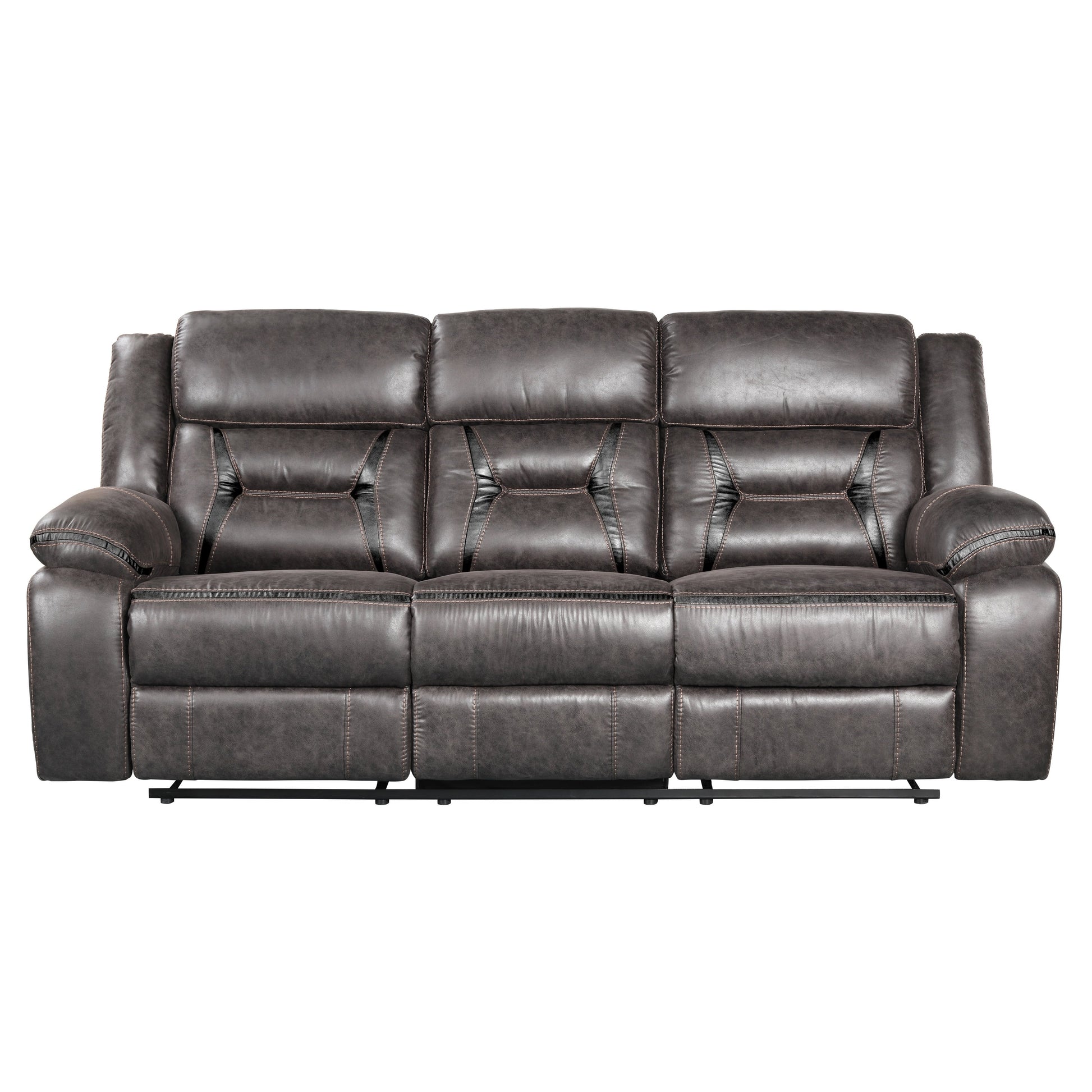 Classic comfort features of this sofa include cushioned headrests, pillow top arms, and manual recline levers located conveniently on the sides