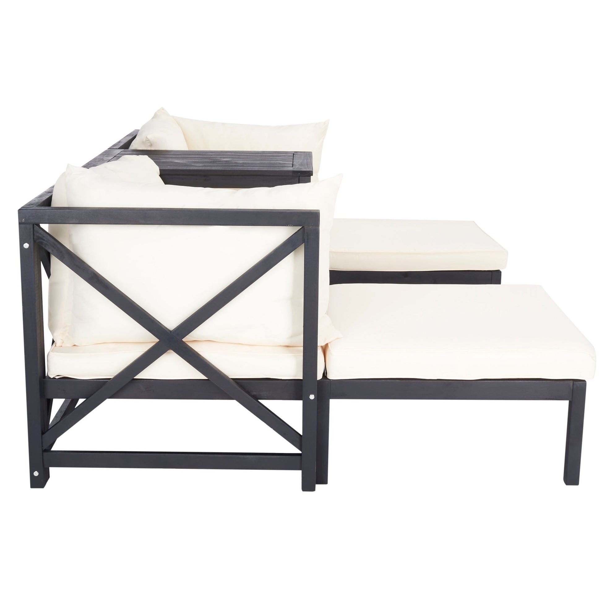 The surefire remedy for too much reality, the Ronson 5 PC Sectional is a comfortable oasis away from it all. With comfort-soft cushions, versatile ottomans that double as extra seating, and a handy table for all your requisite refreshments, Ronson is resort outdoor decor for your staycation spa.CHAIR: 26.9 x 26.9 x 26.8TABLE: 17.7 x 25.6 x 26.8FOOTREST: 25.6 x 25.6 x 10.6