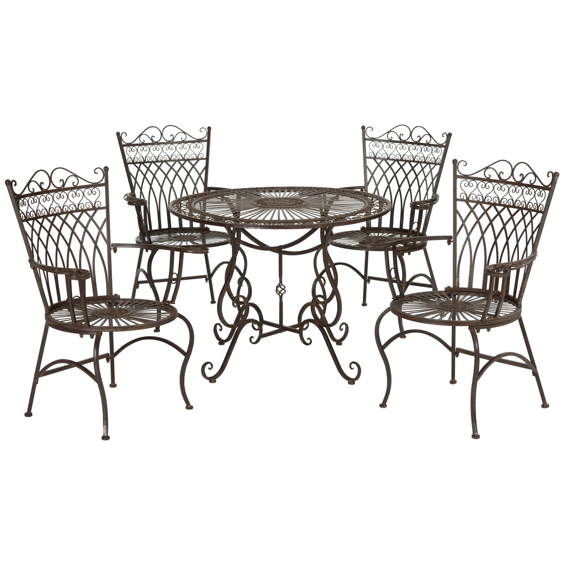 SAFAVIEH Outdoor Living Thessaly Victorian Scroll Iron 5-Piece Dining Set - 39W x 39D x 29H