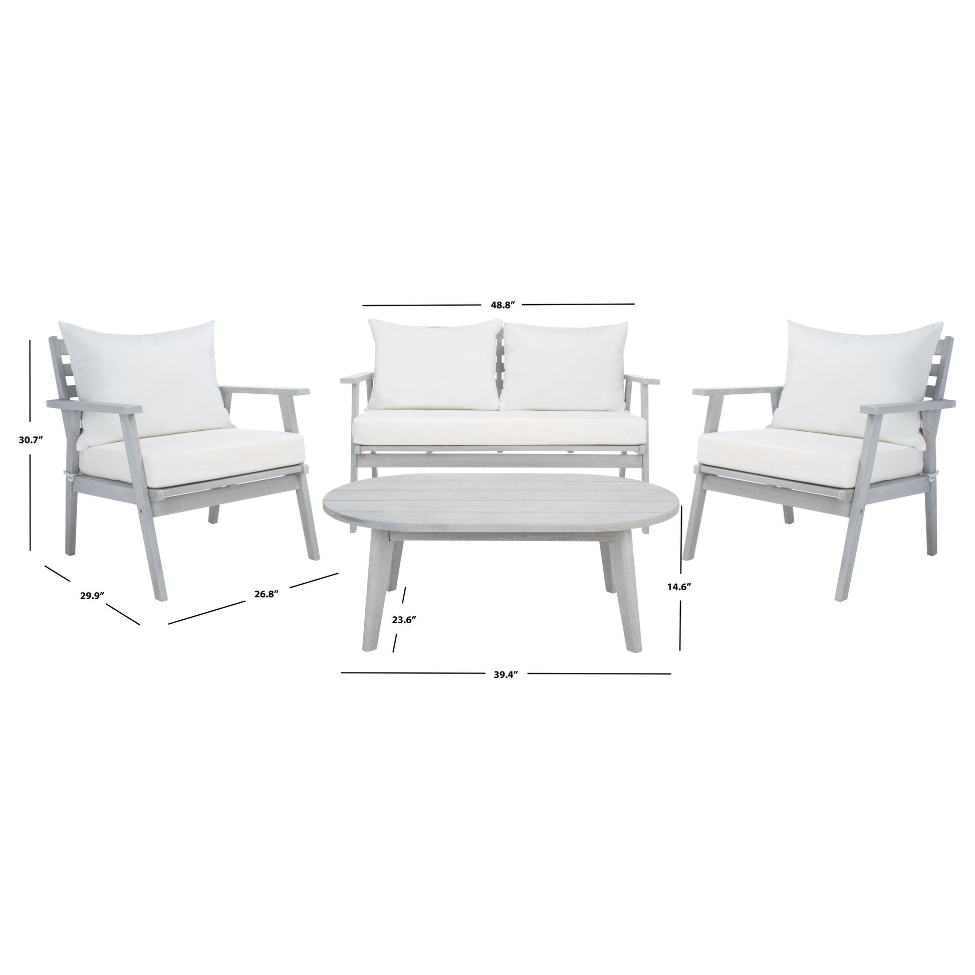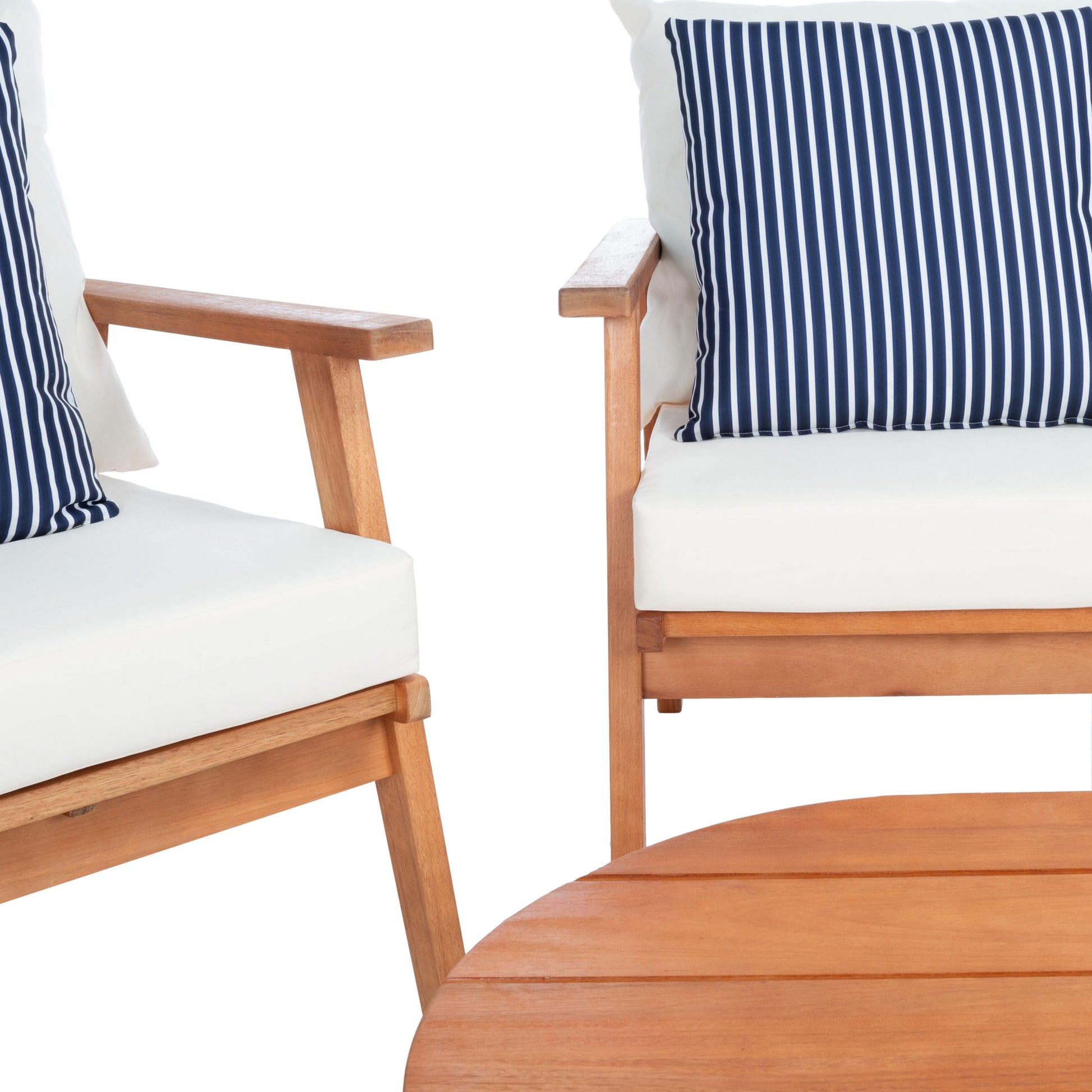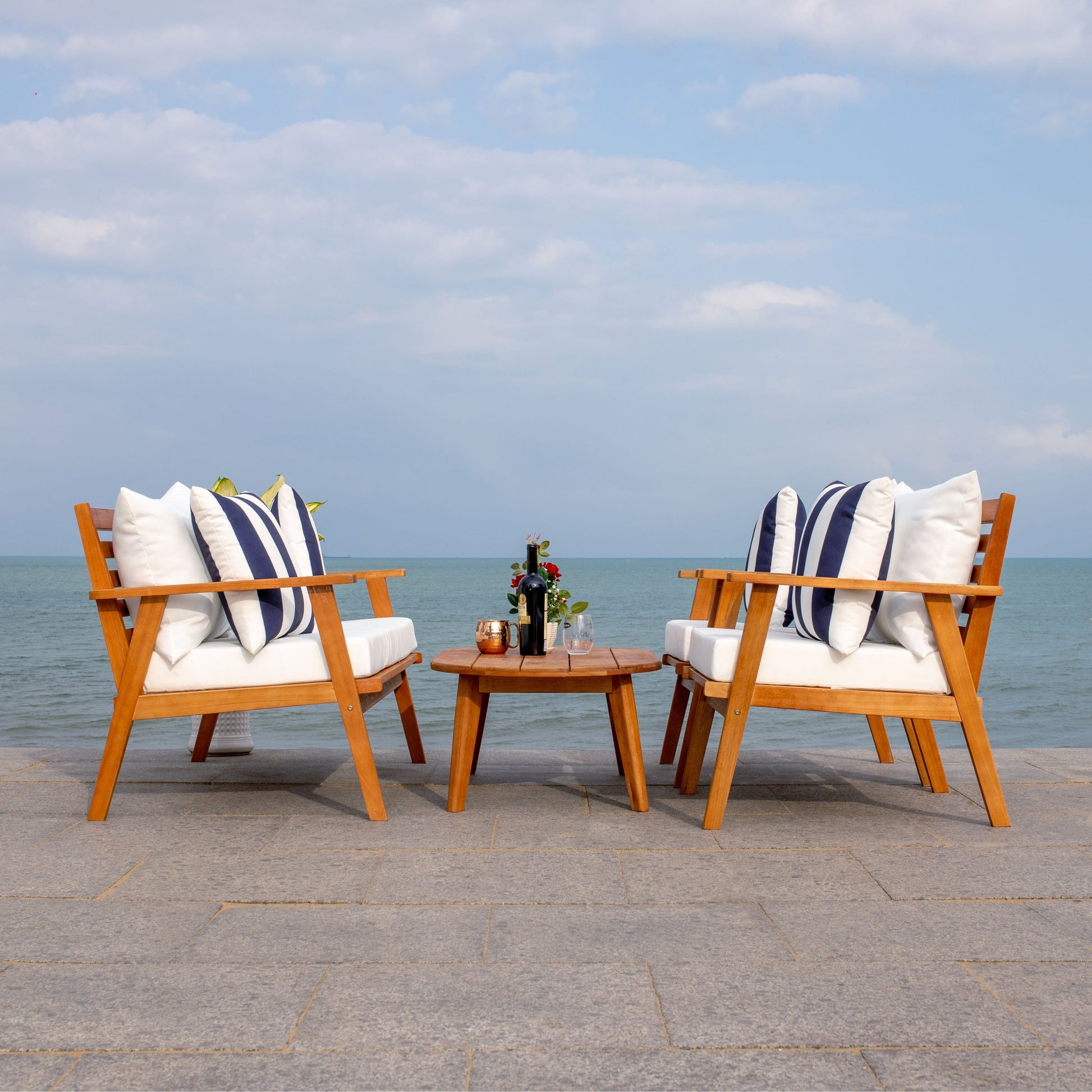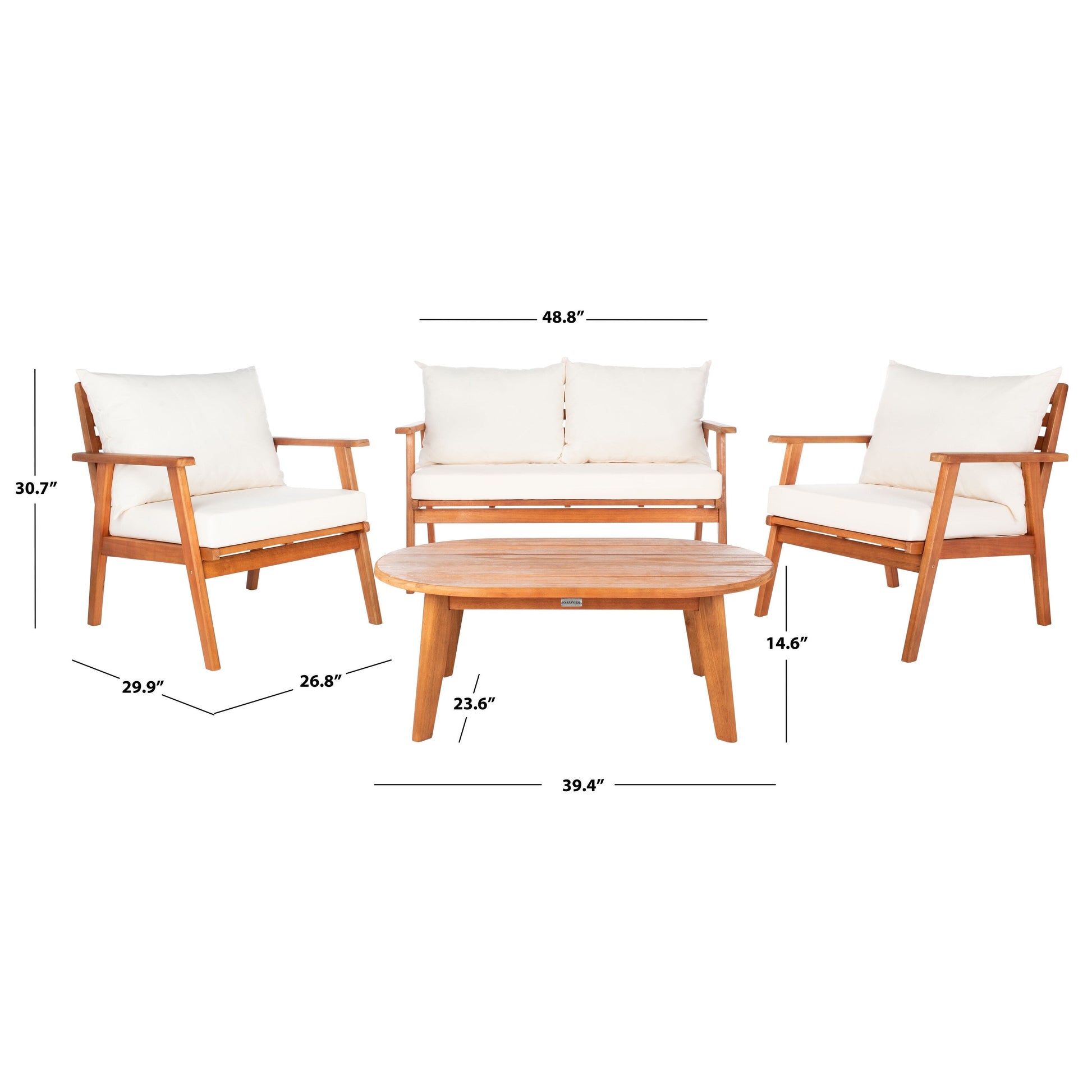 Designed for value and versatility, this contemporary 4 piece living set creates an instant outdoor room in any open air space. Comfy beige cushion to sit on expertly crafted acacia wood frames, while its circular table is ideal for entertaining.
