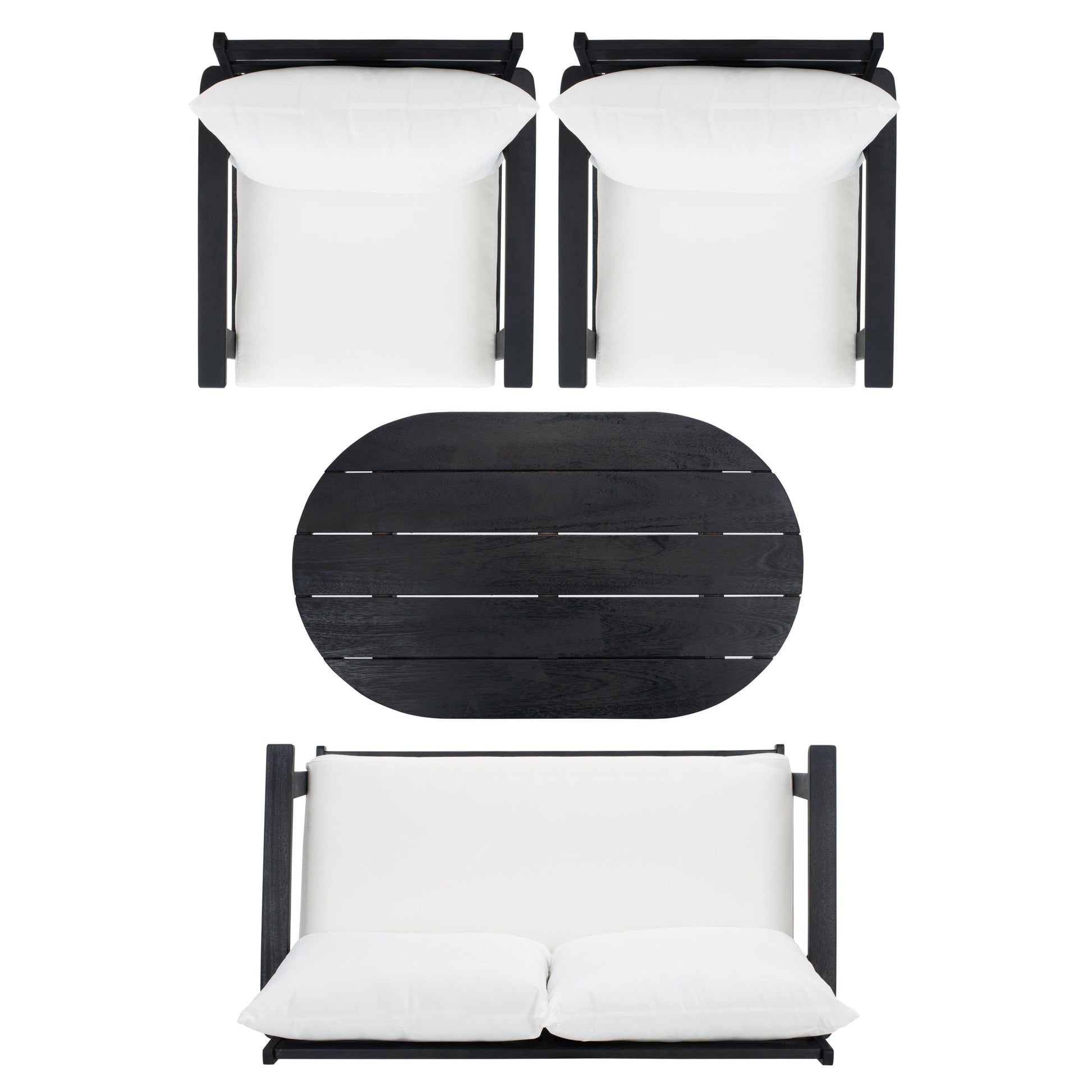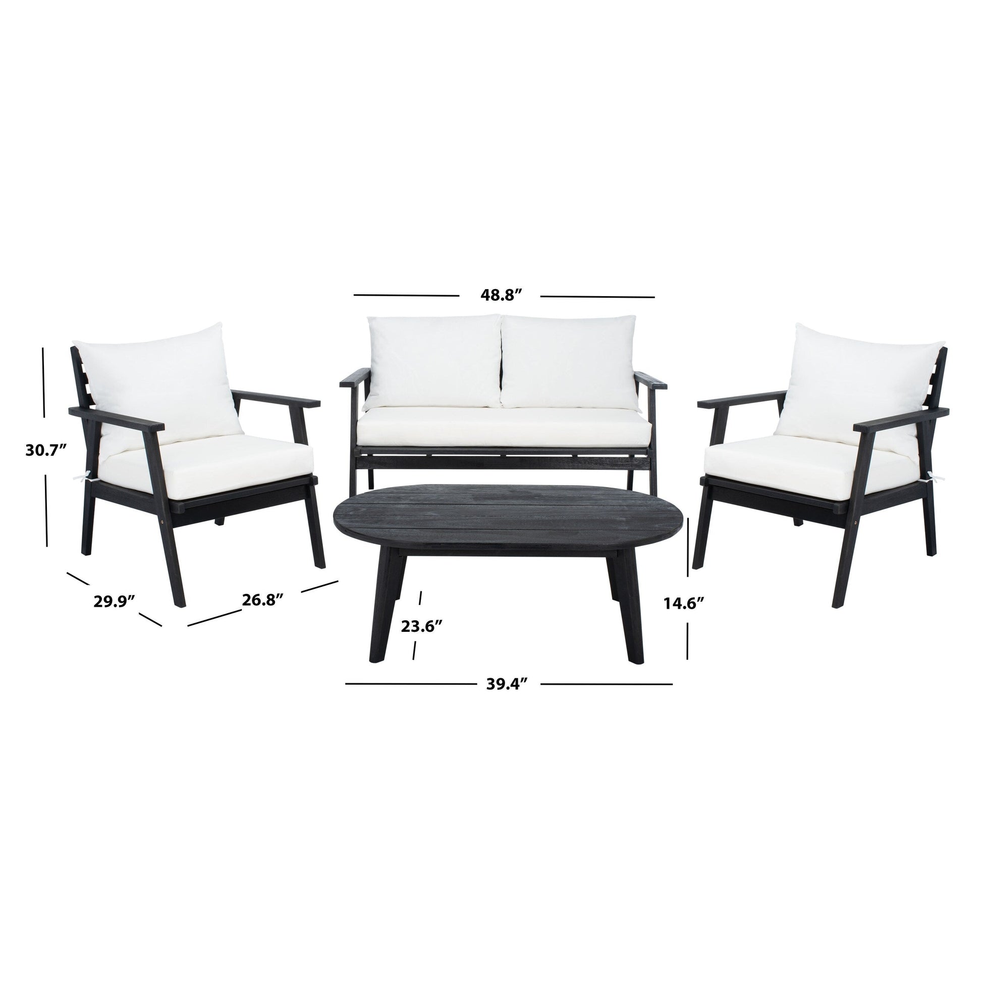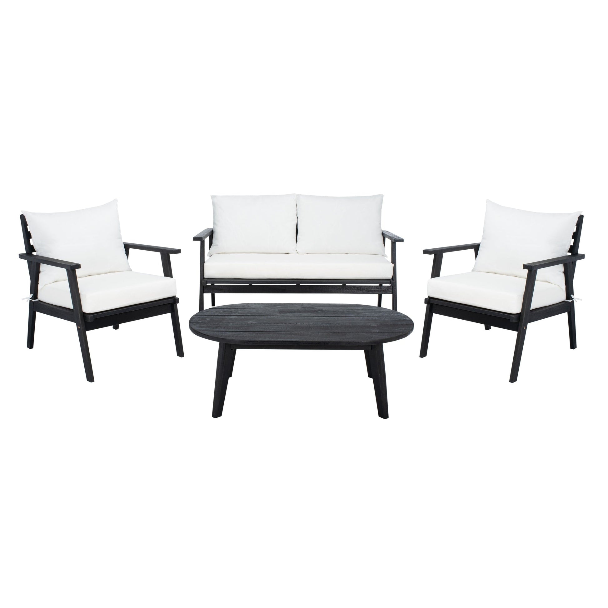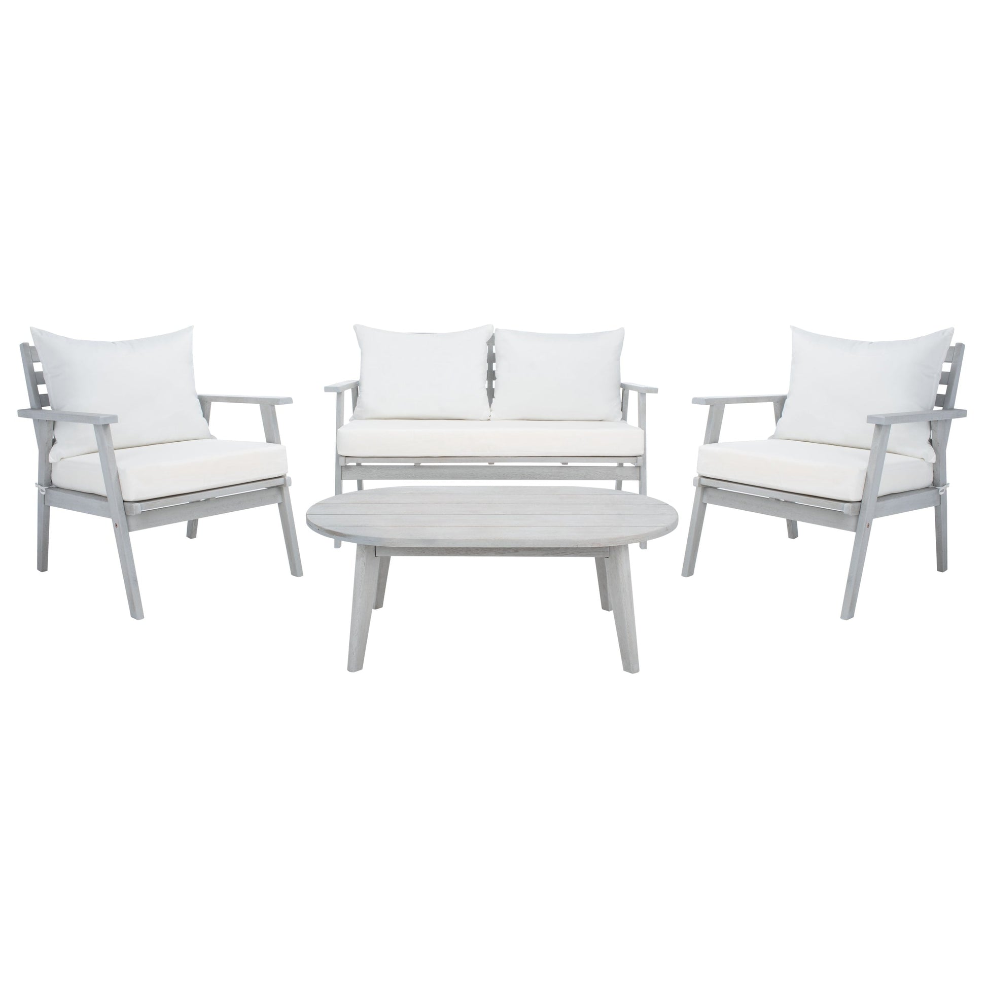 Designed for value and versatility, this contemporary 4 piece living set creates an instant outdoor room in any open air space. Comfy beige cushion to sit on expertly crafted acacia wood frames, while its circular table is ideal for entertaining.