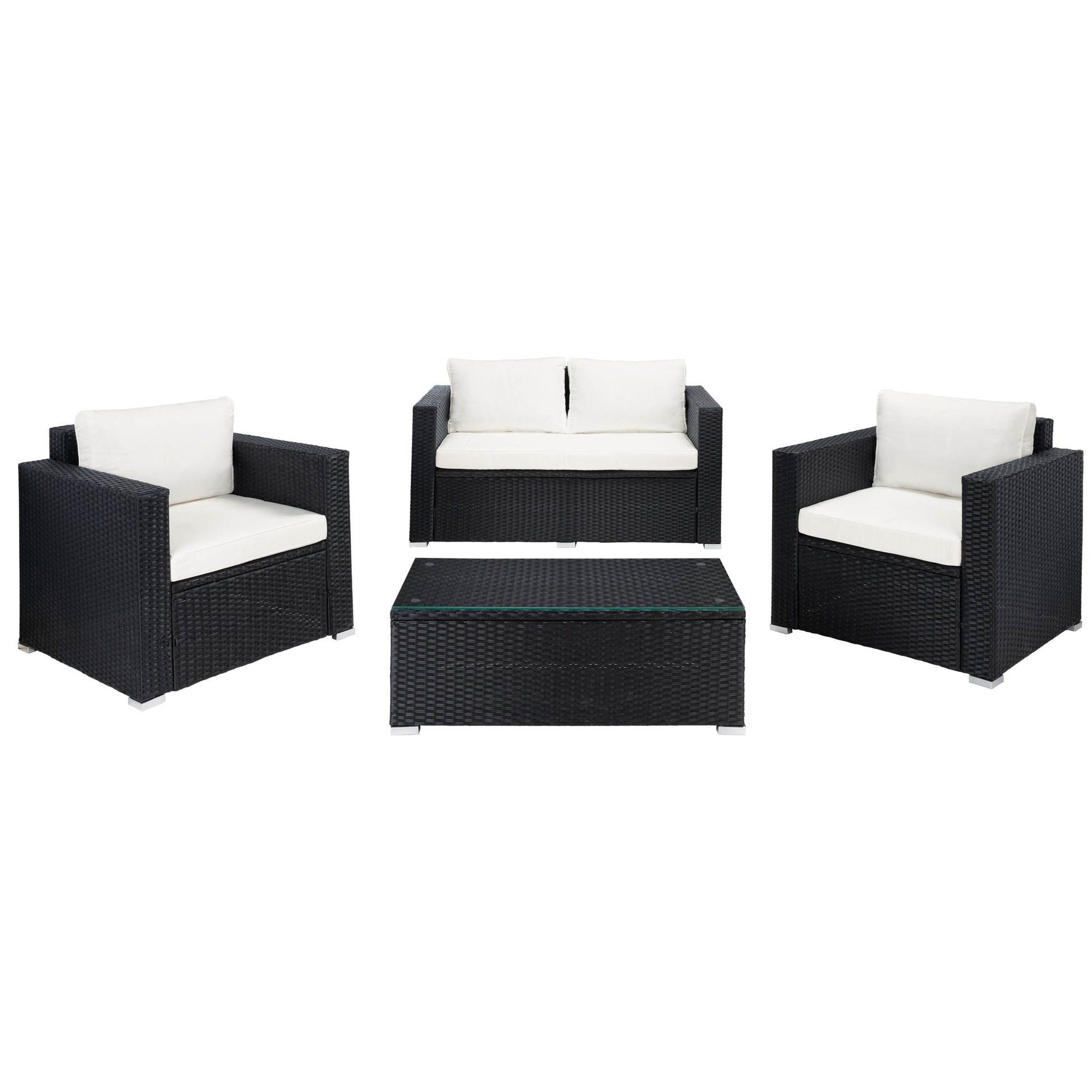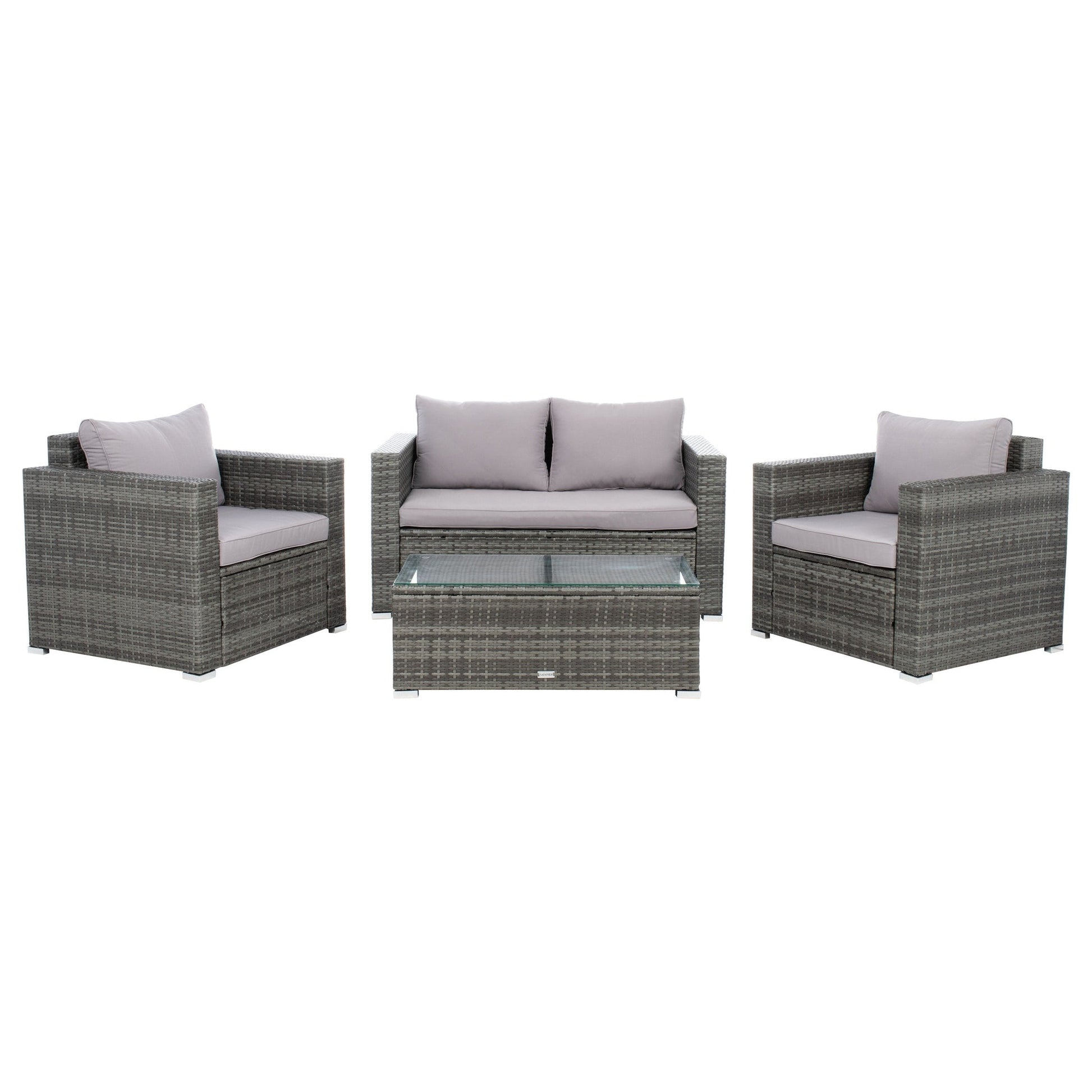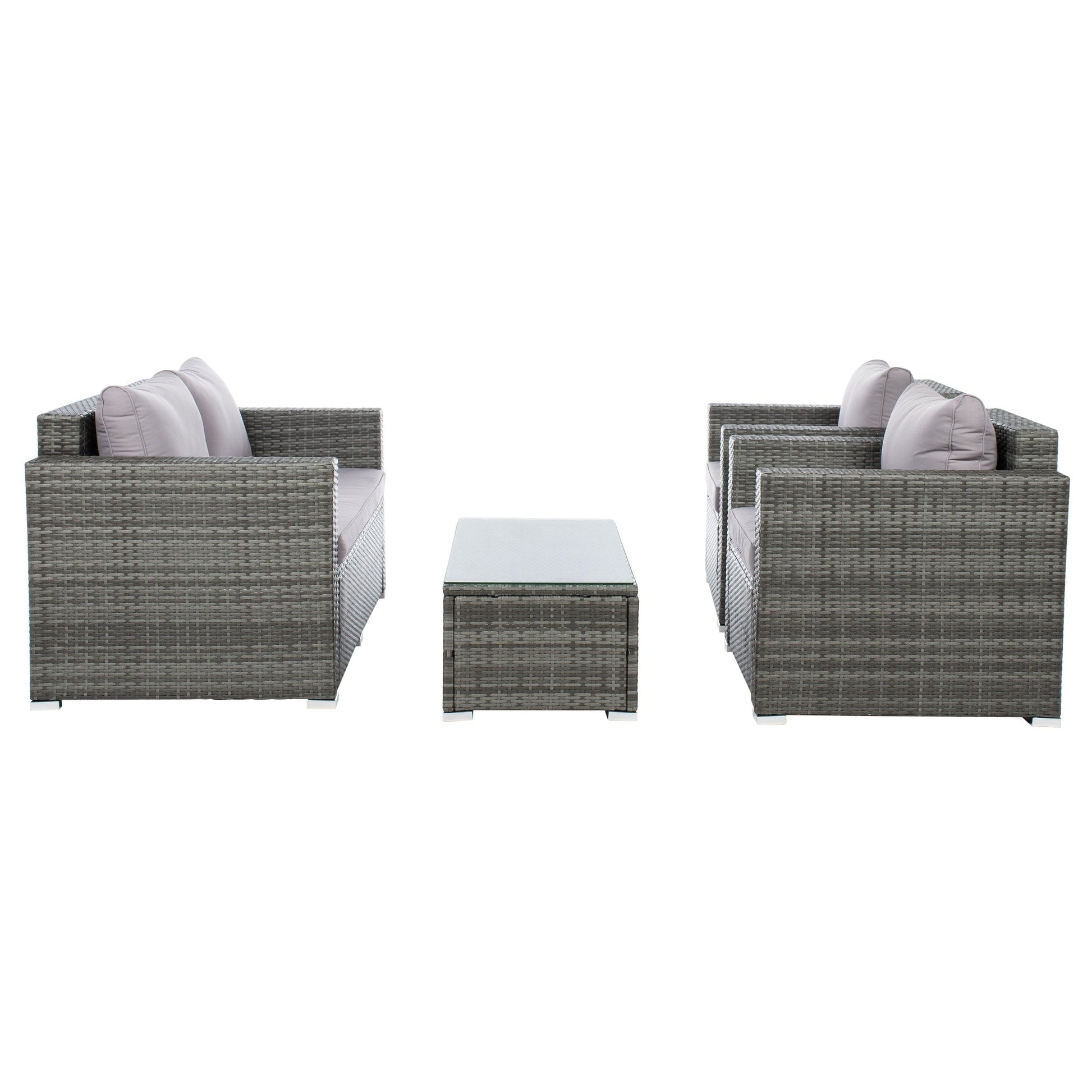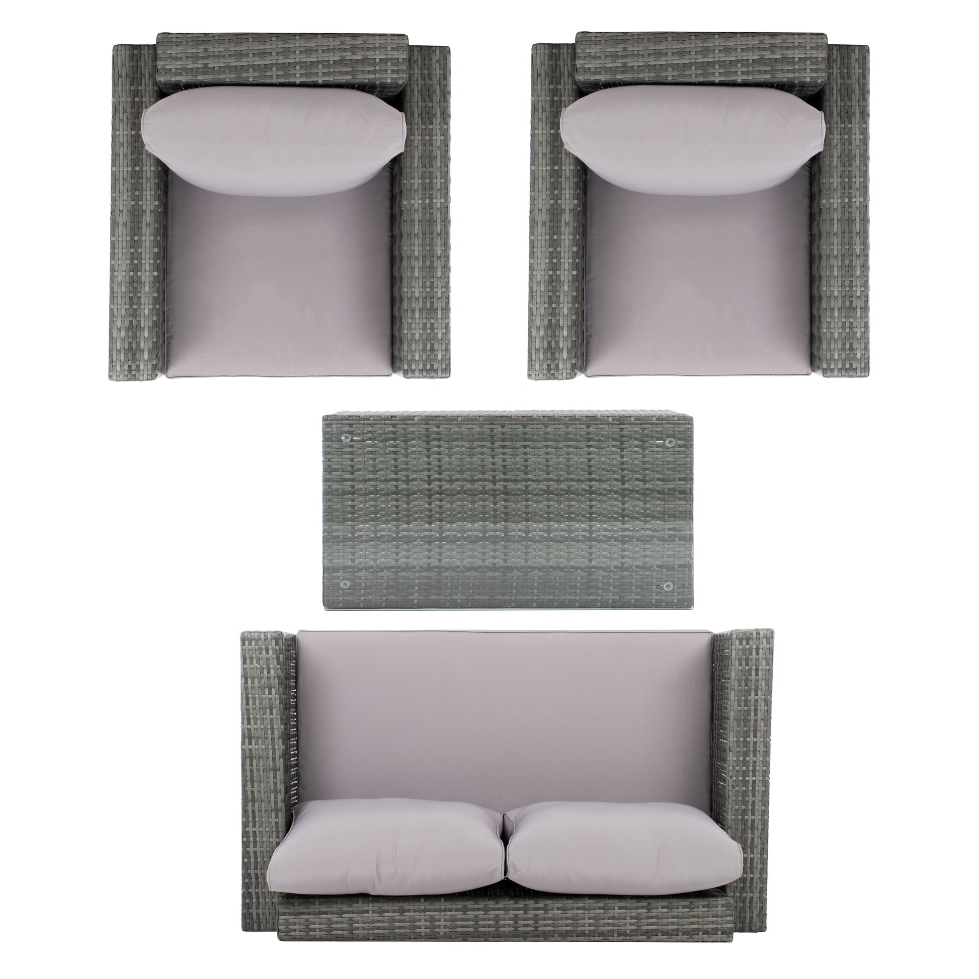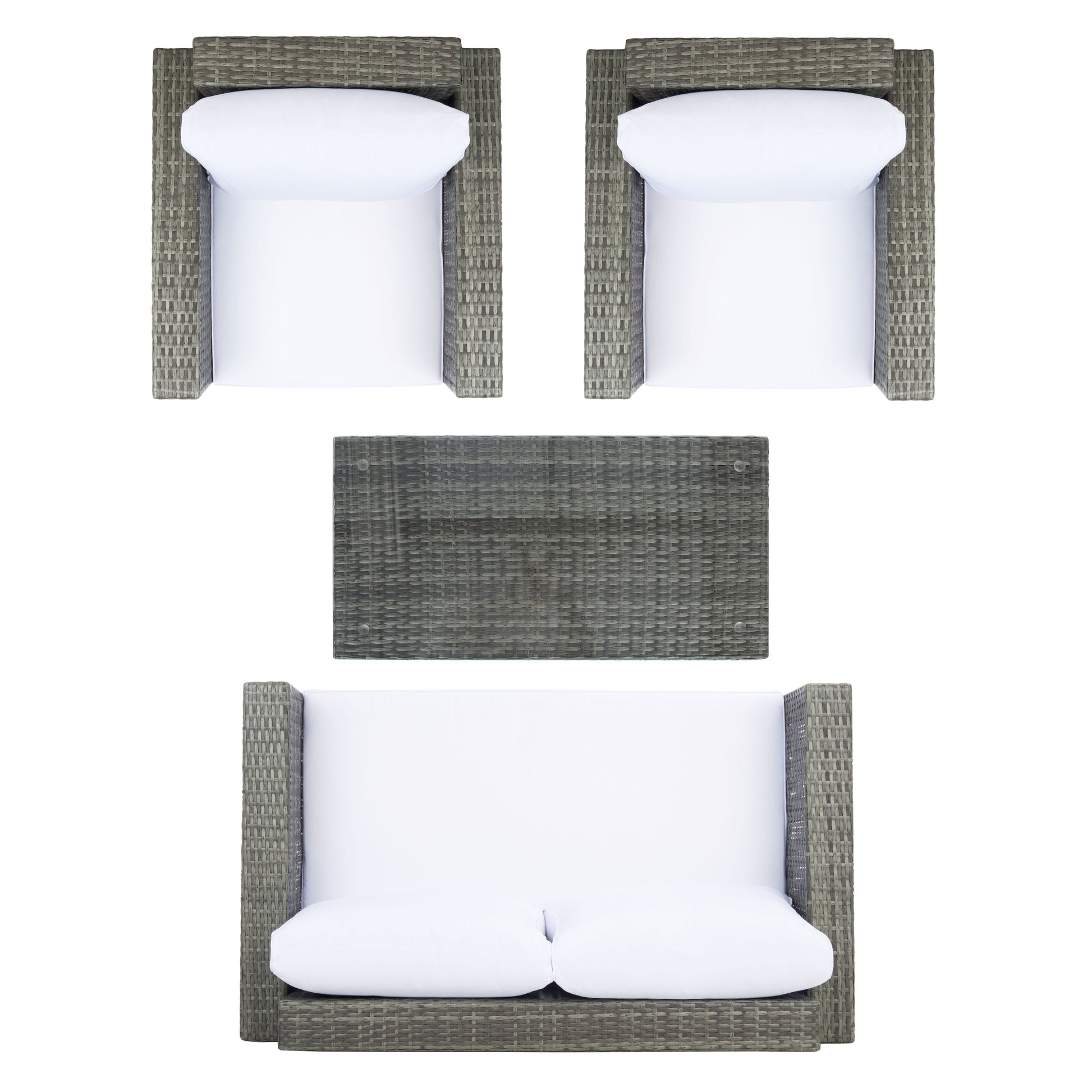 This Living Set perfectly pairs clean lined geometry with rich, flowing texture, elevating your outdoor decor to new heights of sophistication. Machie's woven frames are beautifully juxtaposed with plush beige cushions, and its glass topped coffee table provides ample room for drinks or tapas.