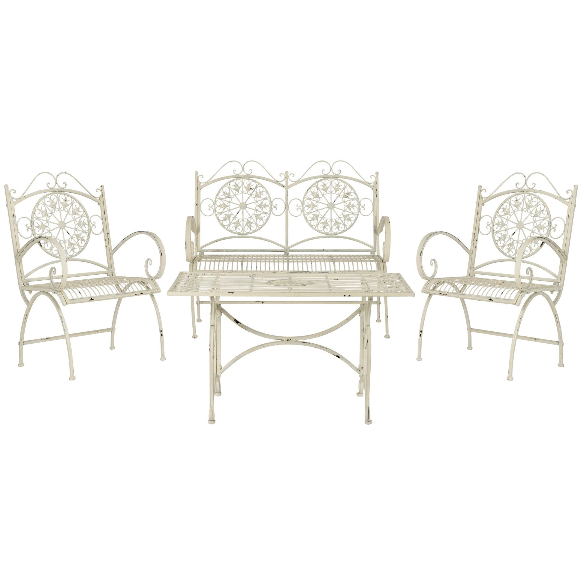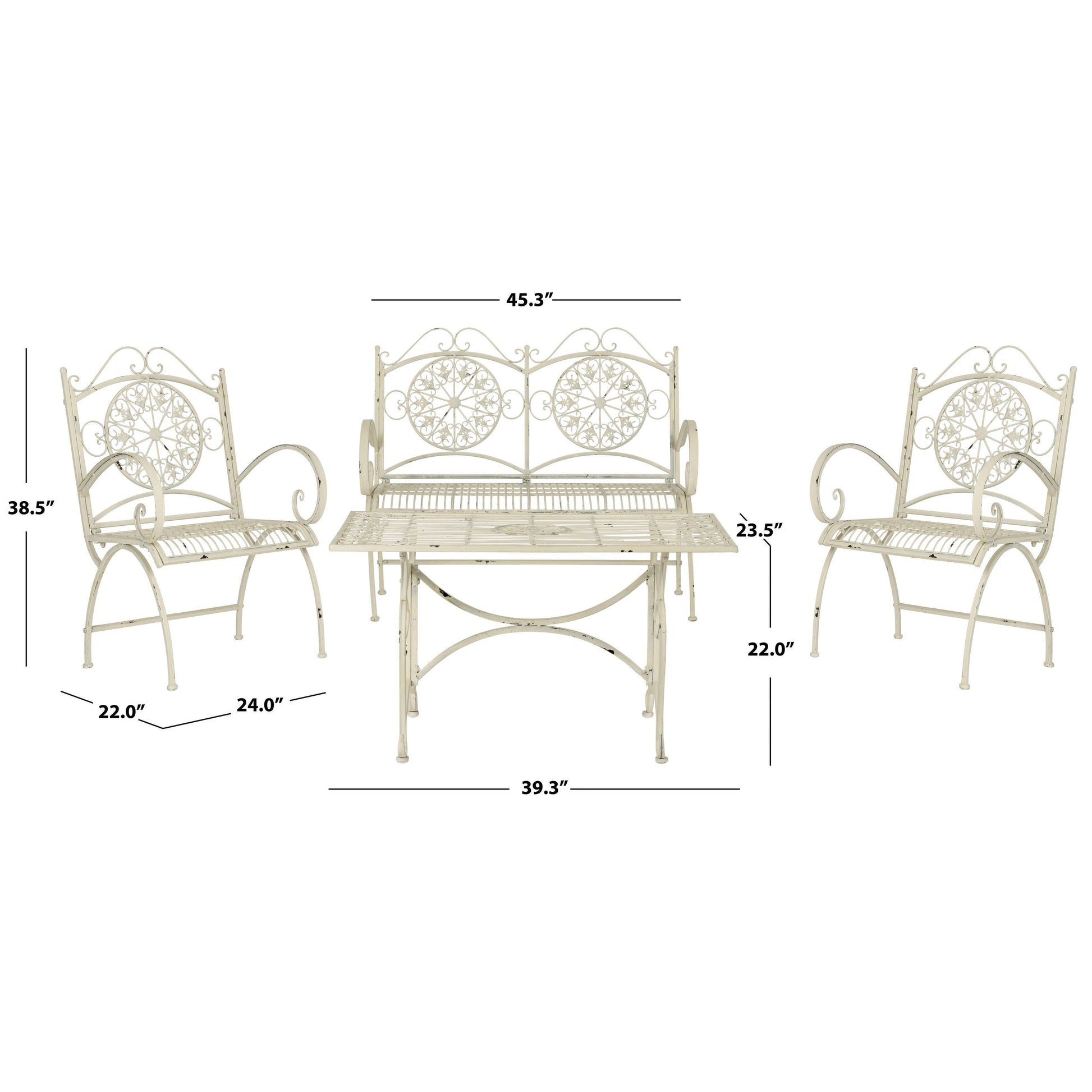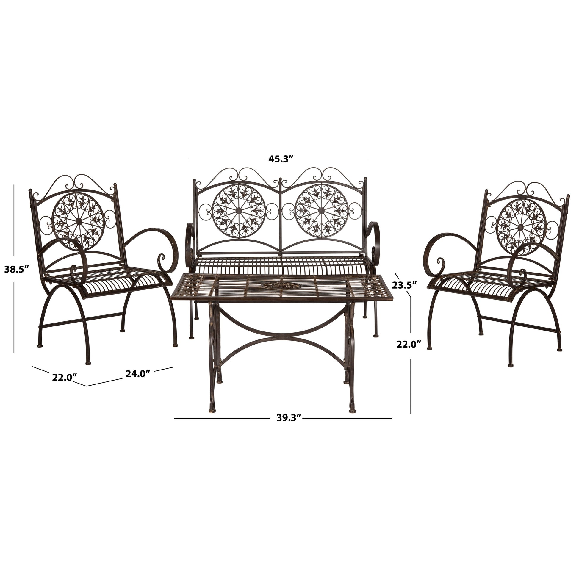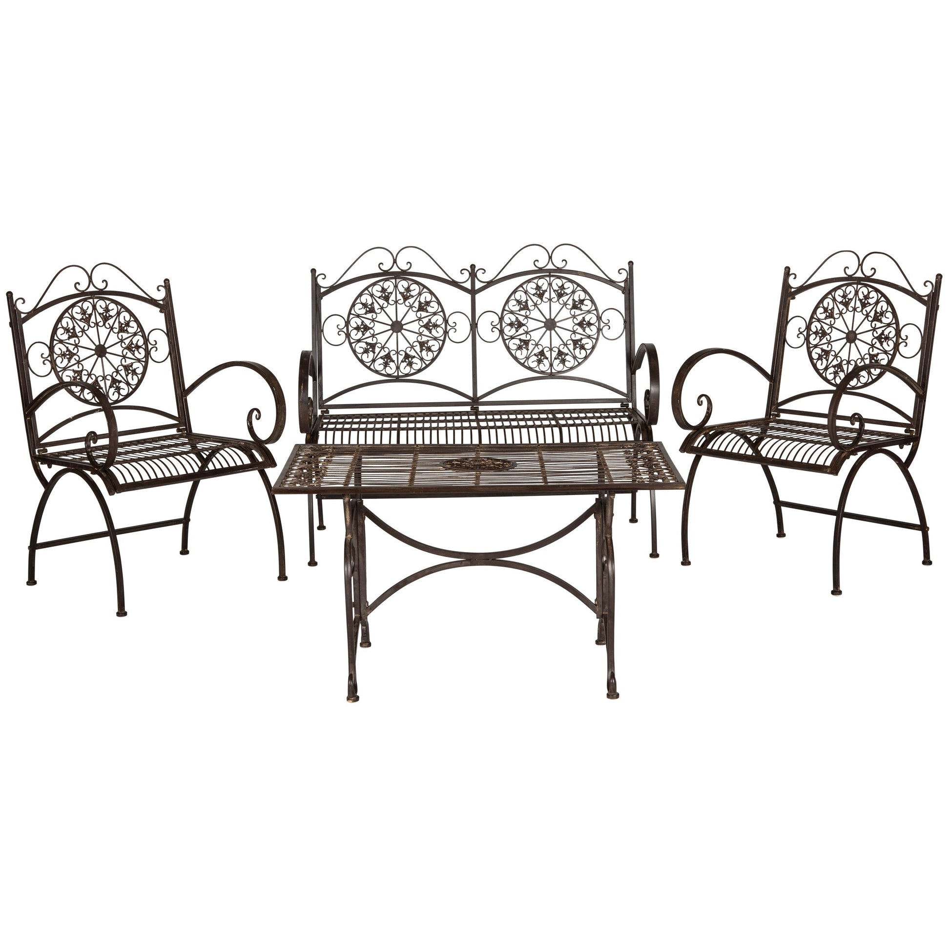 SAFAVIEH Outdoor Nyasia Victorian Scroll Iron 4-Piece Patio Set - 45W x 39D x 22H