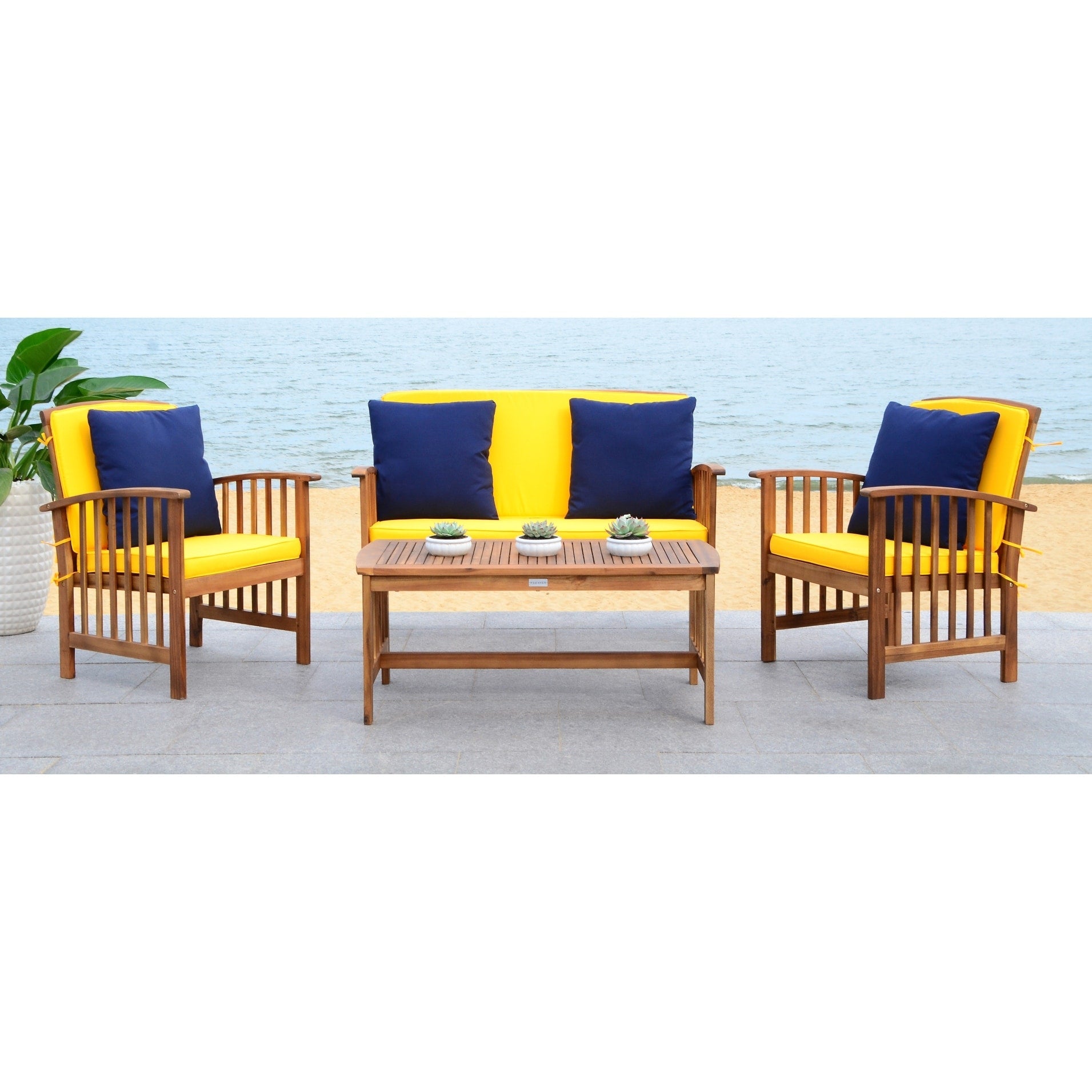SAFAVIEH Outdoor Yuliana 4-Piece Conversation Patio Set -...
