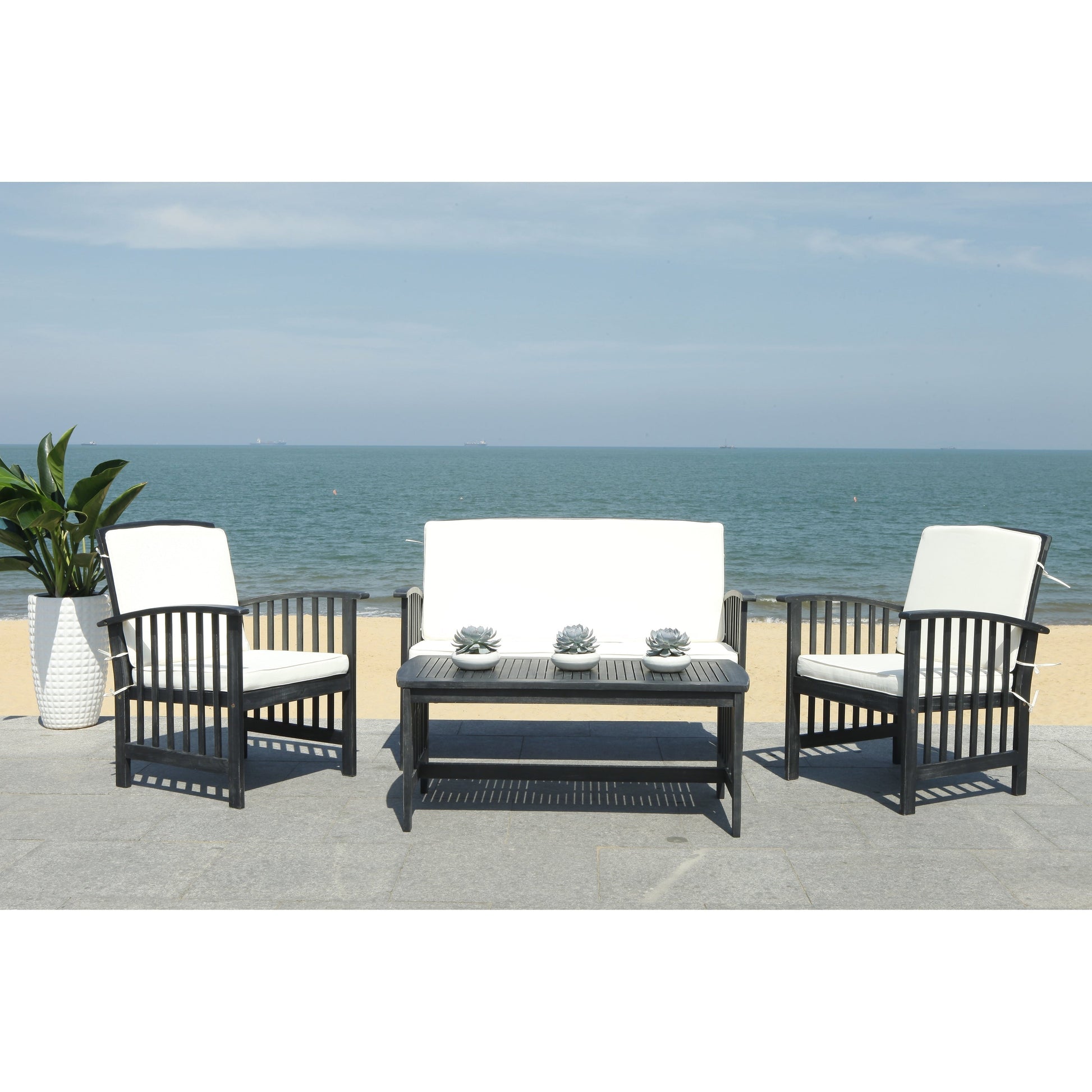 SAFAVIEH Outdoor Yuliana 4-Piece Conversation Patio Set - 47W x 33D x 26H