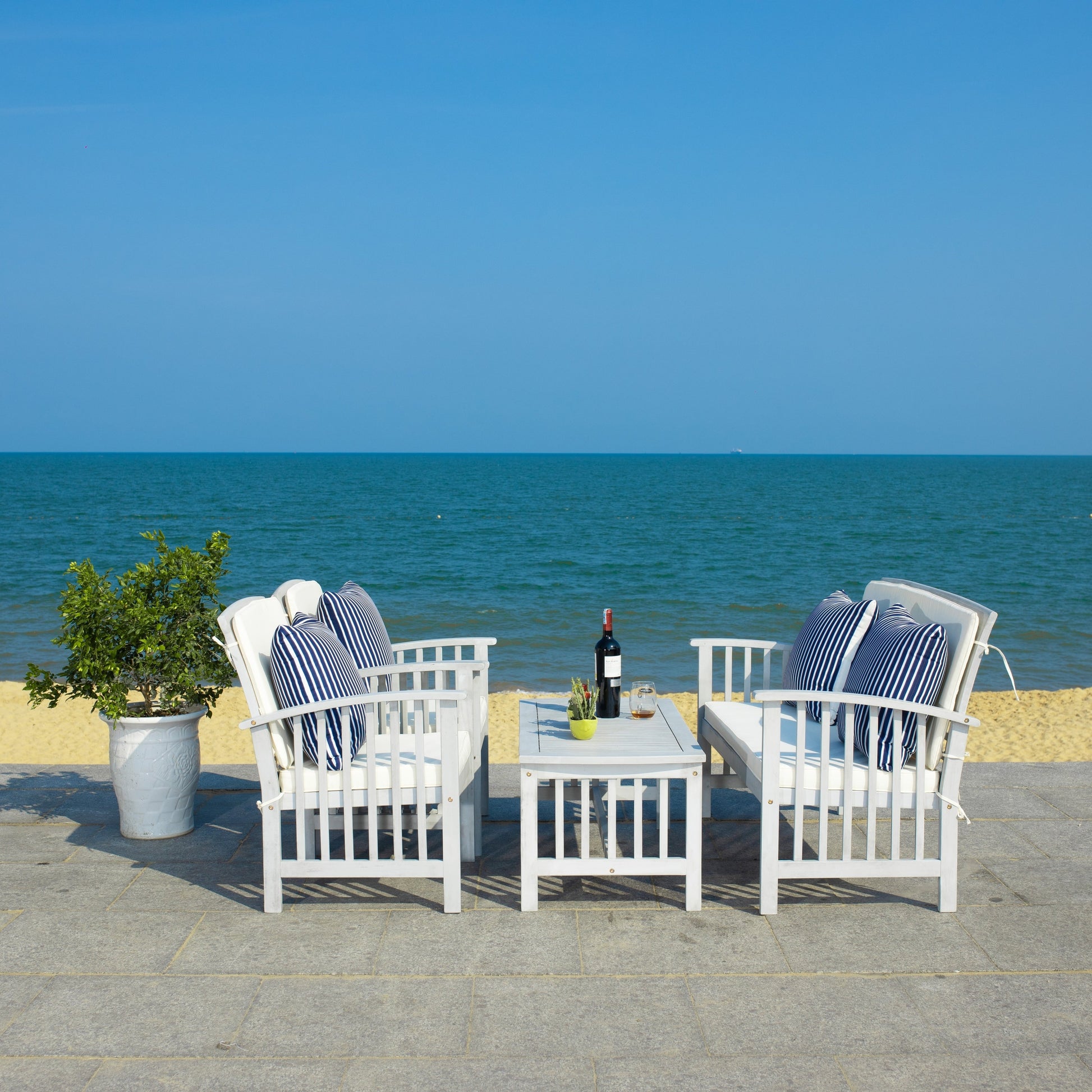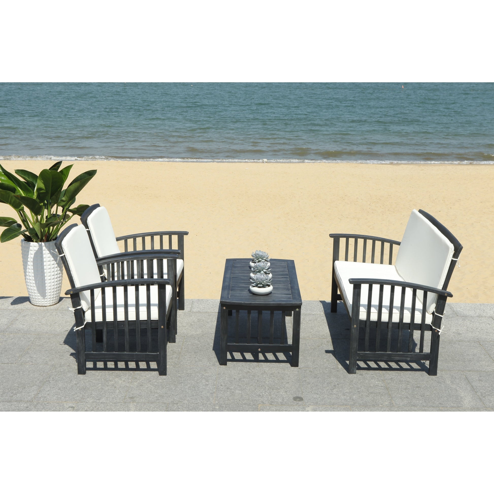 SAFAVIEH Outdoor Yuliana 4-Piece Conversation Patio...