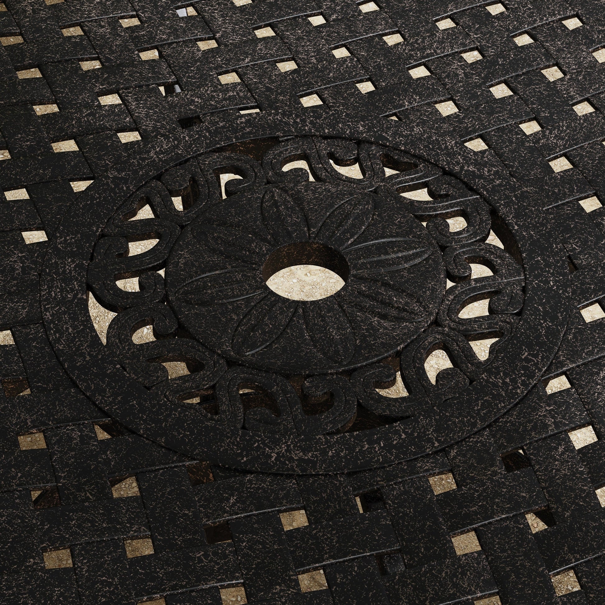 Bronze powder-coated cast aluminum frame with durable clear coat is designed to withstand the elements