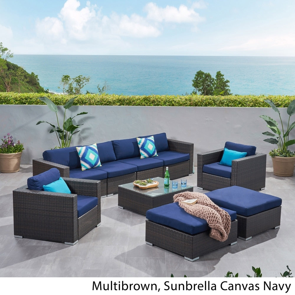 Stretch out in the company of friends or family with this nine-piece sectional sofa by Christopher Knight Home. The included cushions offer ample comfort and are ideal for outdoor use thanks to their water-resistant construction. Fashioned from PE wicker woven over solid iron frames, this robust set holds up well through the seasons.