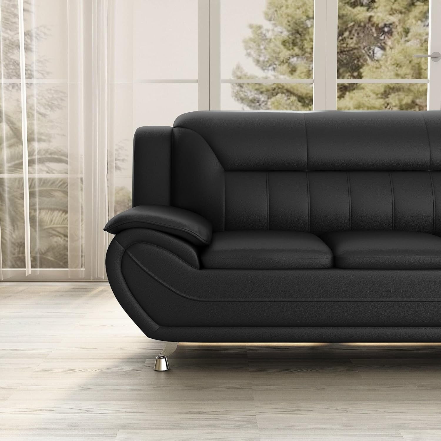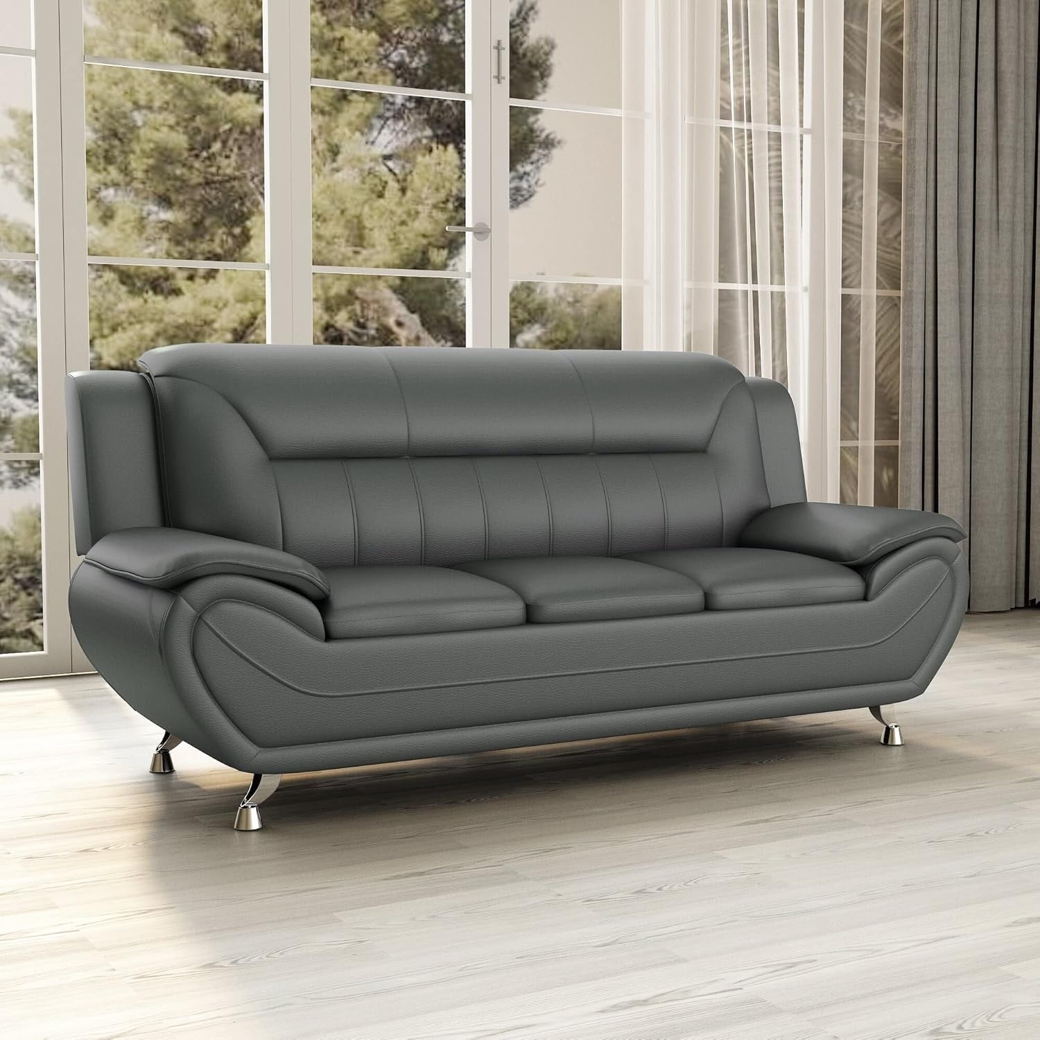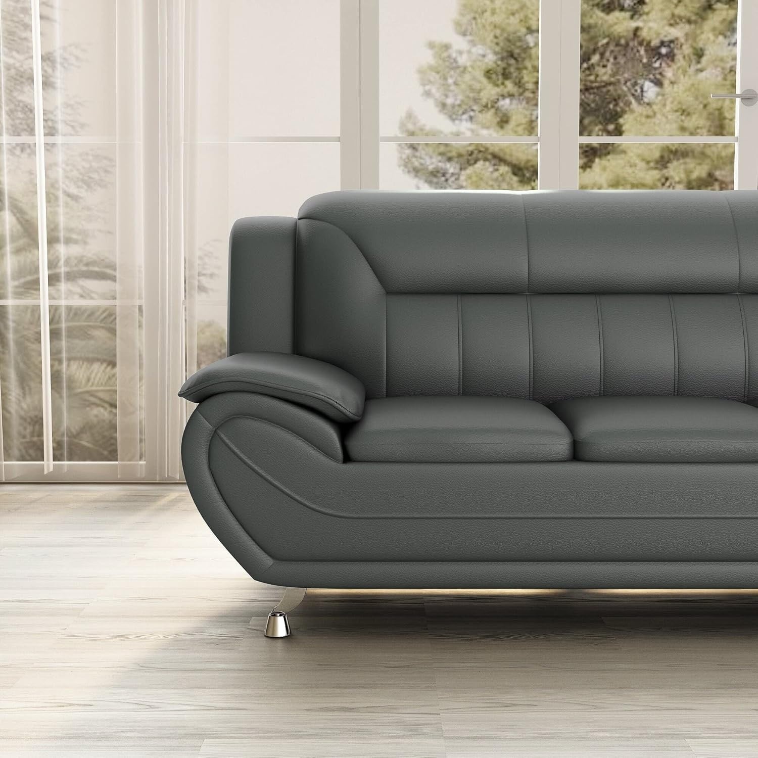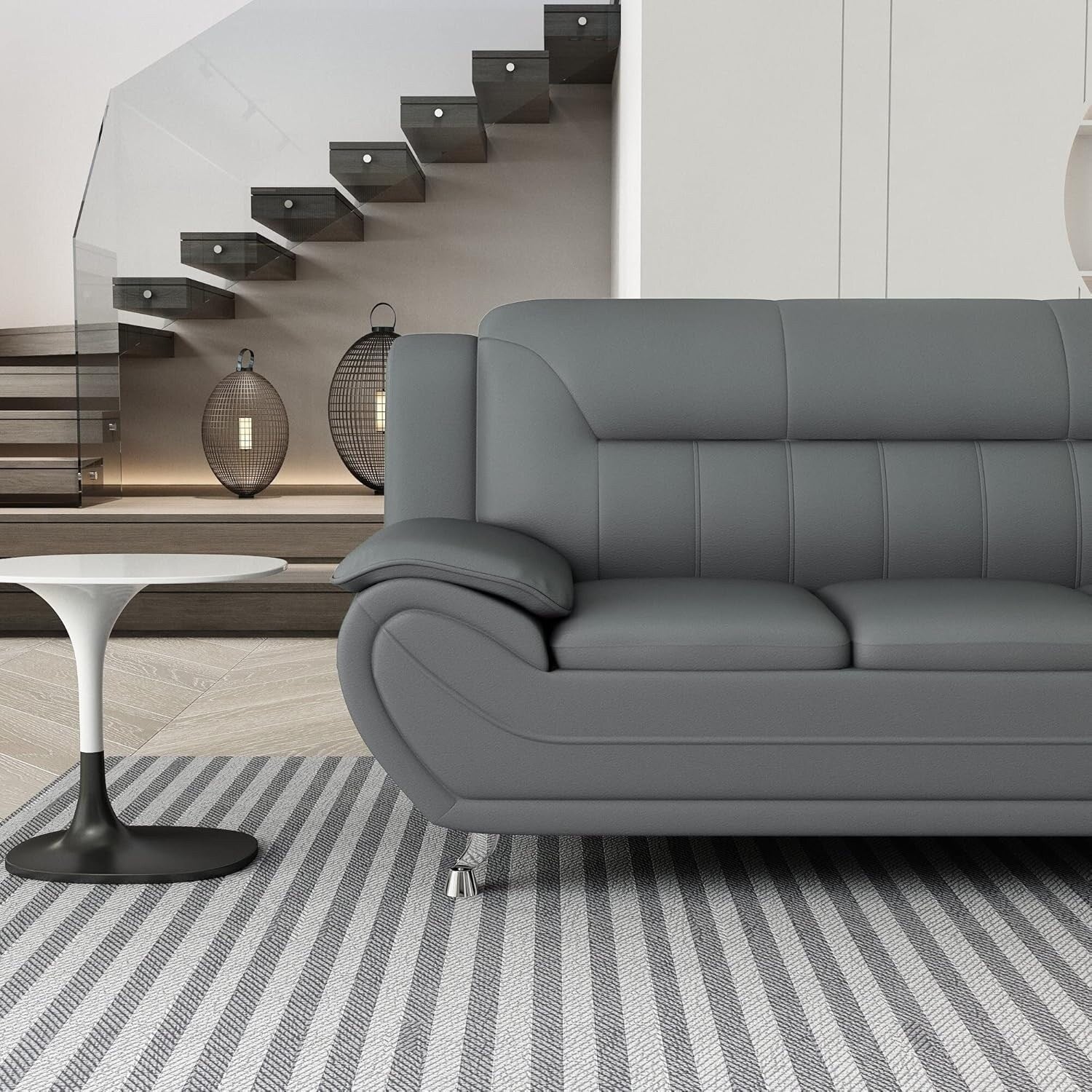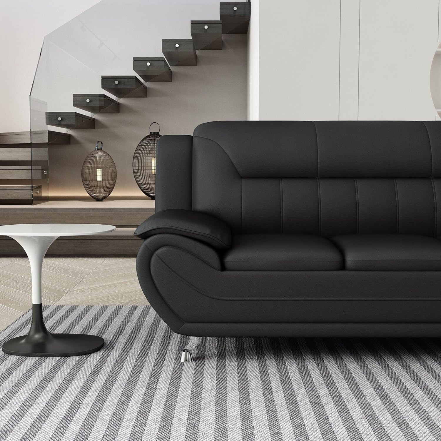 This product is steeped in the desire to combine a modern minimalist style with flawless design and unsurpassed manufacturing. This piece is certain to give your interior the desired look and visual impact worthy of a modern living room. It is designed to be comfortable, stylish, sturdy, and built to last for years to come. It is upholstered with top-grade bonded leather for smooth and easy to clean surface pillow top armrests for additional comfort and finally accented with stainless steel sofa legs to complete the look. This sofa will be the smart choice for the modern contemporary living room.