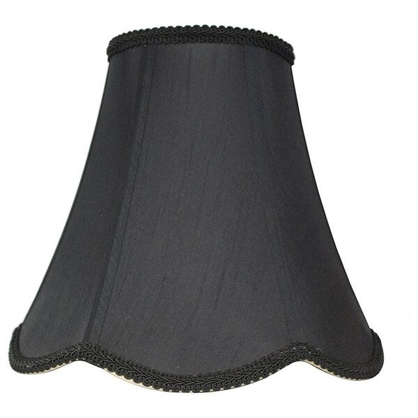 Bring elegance to your home decor with this classic Scalloped Bell Lamp Shade by Urbanest. The softback faux silk material and braided trim add a touch of luxury to your space. Measuring 6 inches at the top, 12 inches at the bottom, and 10 inches in height, this lamp shade is the perfect size for most table lamps. It's easy to install with a spider fitter and can hold bulbs up to 100 watts.