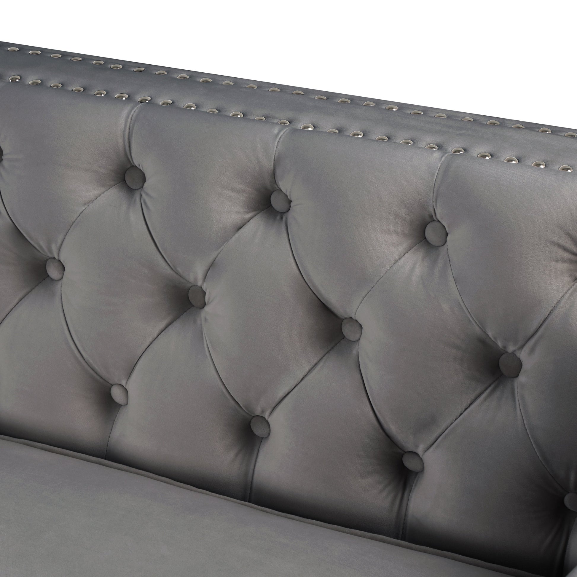 Luxurious Design: Inspired by the Chesterfield style, this velvet couch for the living room features classic nailhead trim and button tufting on the backrest and square arm, creating a classic and sophisticated appearance that adds glamour to your home, living room, apartment, and small place.