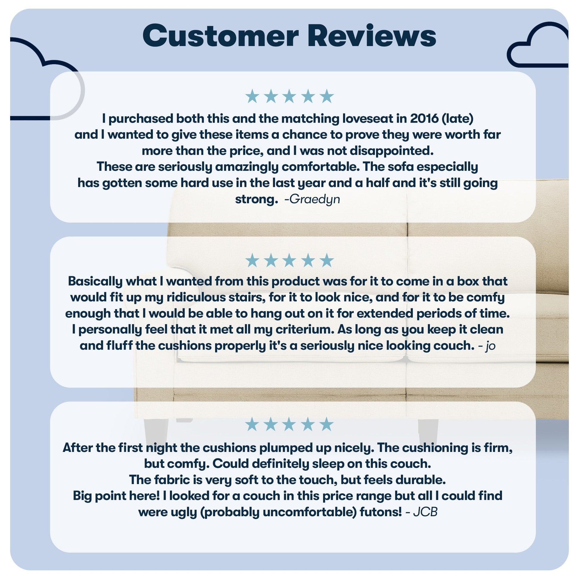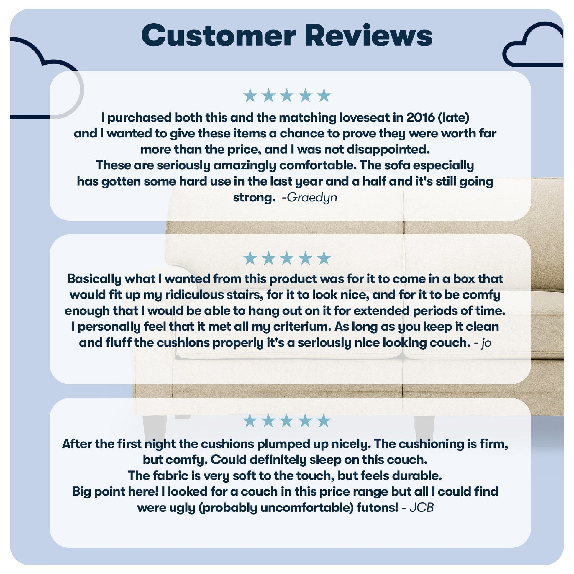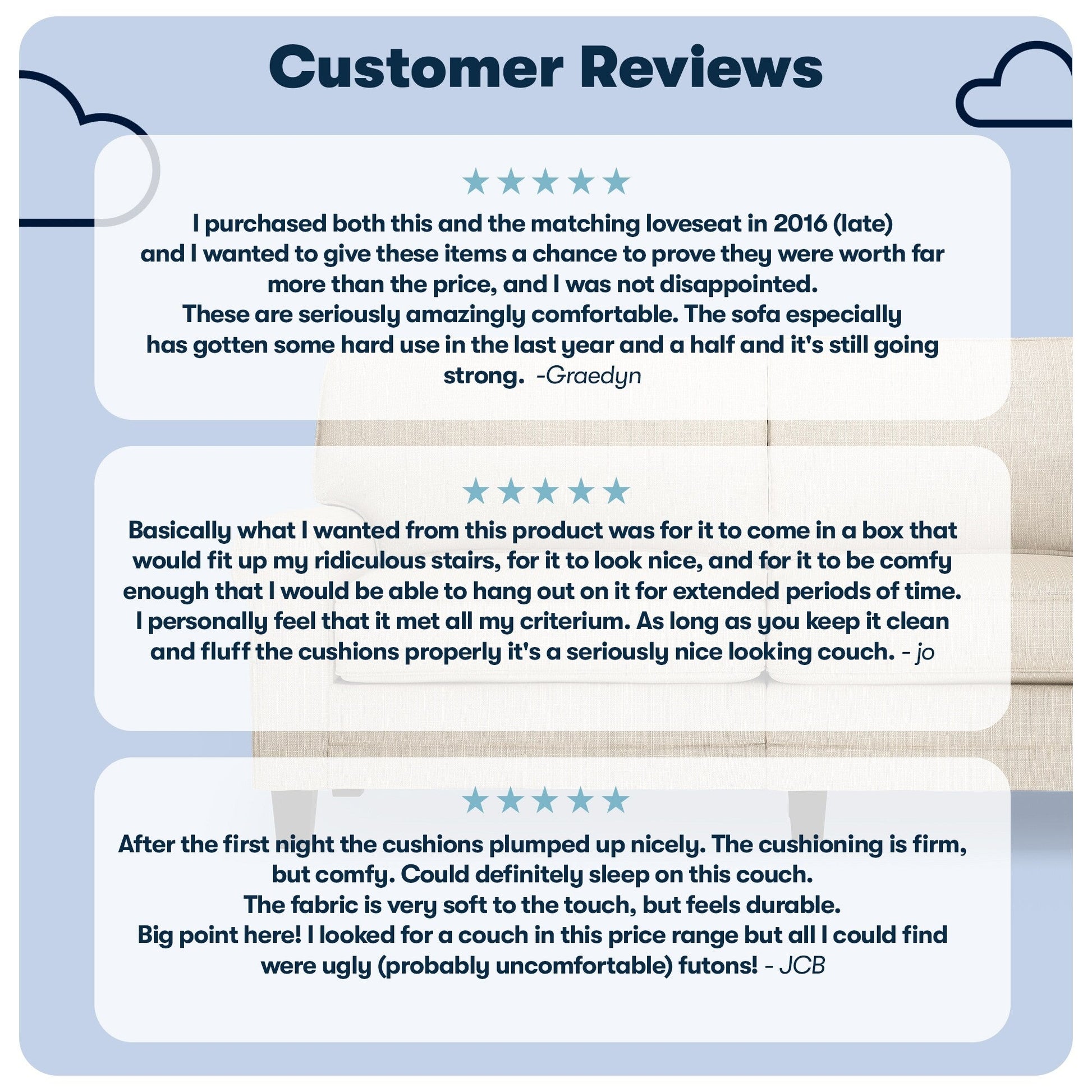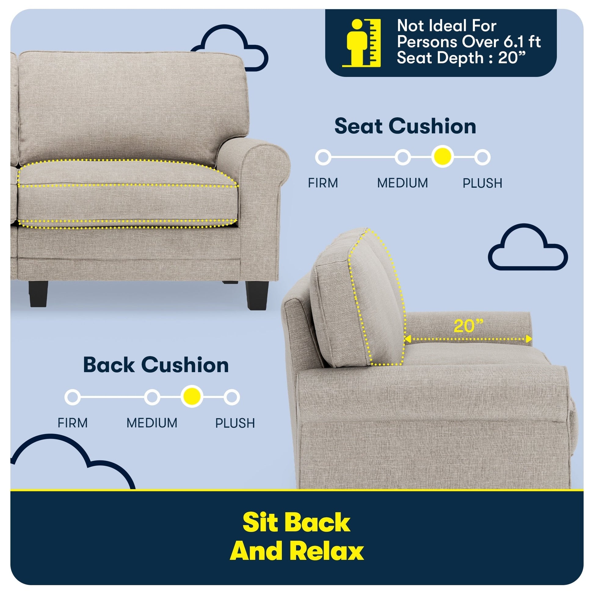 - Sit Back &Relax: The loose pillow backs are generously filled with soft fibers and supported by structured webbing within the backrest for comfort and support. The pocket coil seat cushions filled with high-density foam provide a semi-plush sit and have removable covers for effortless cleaning.