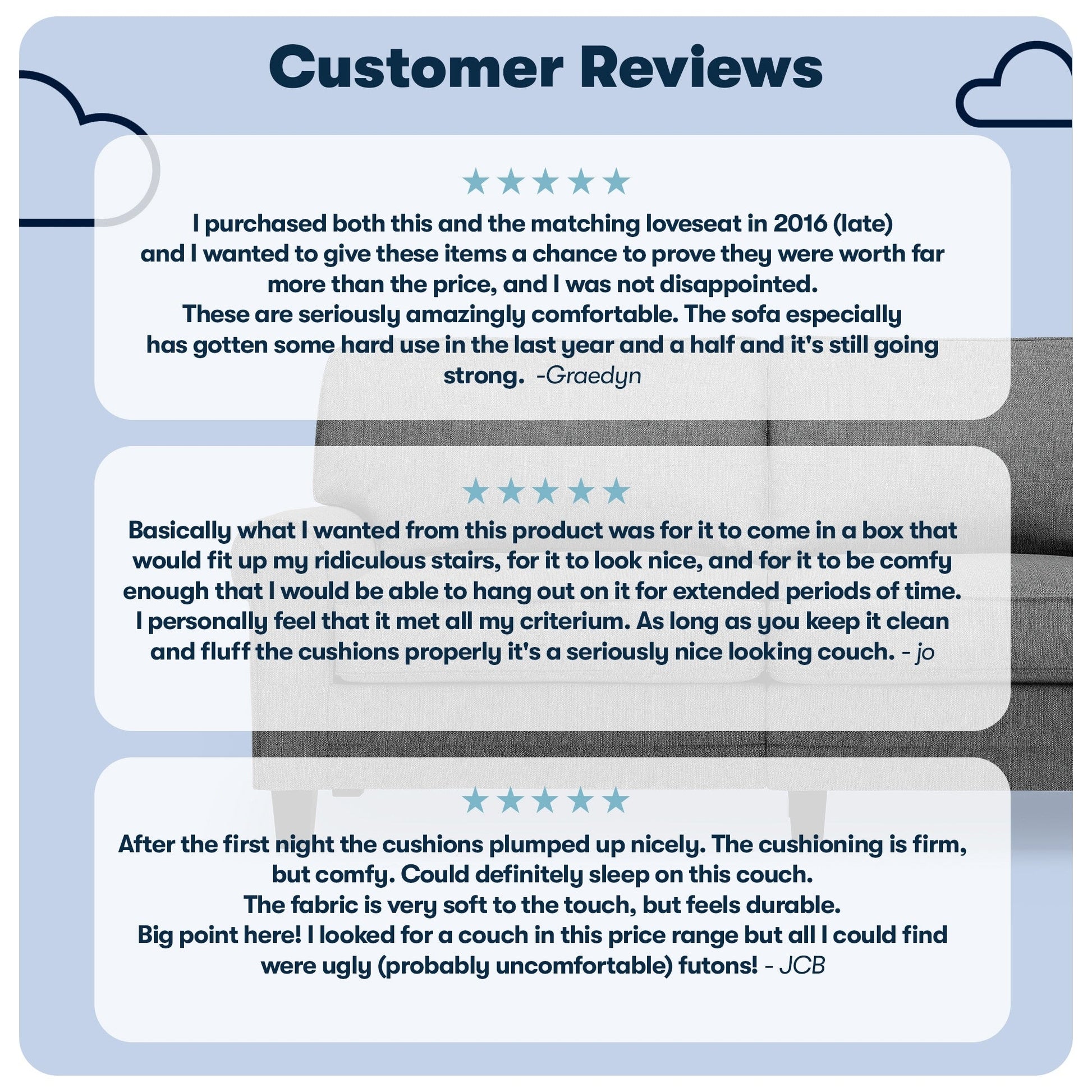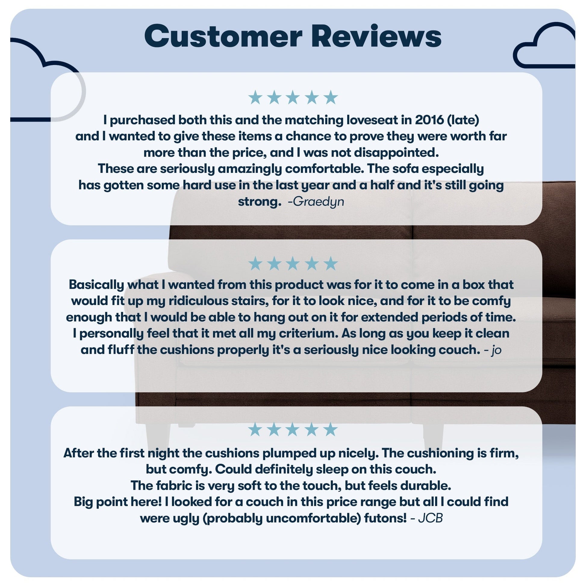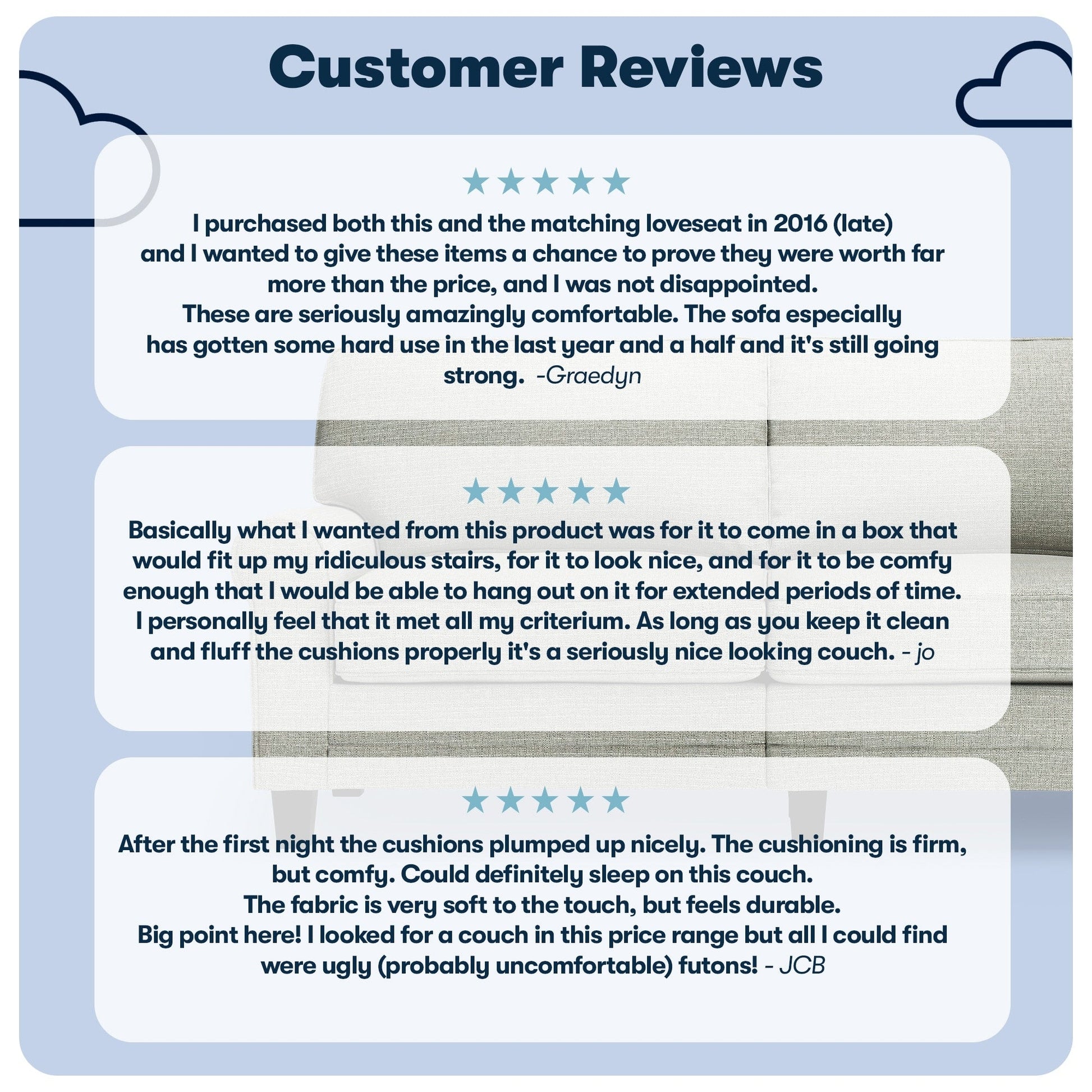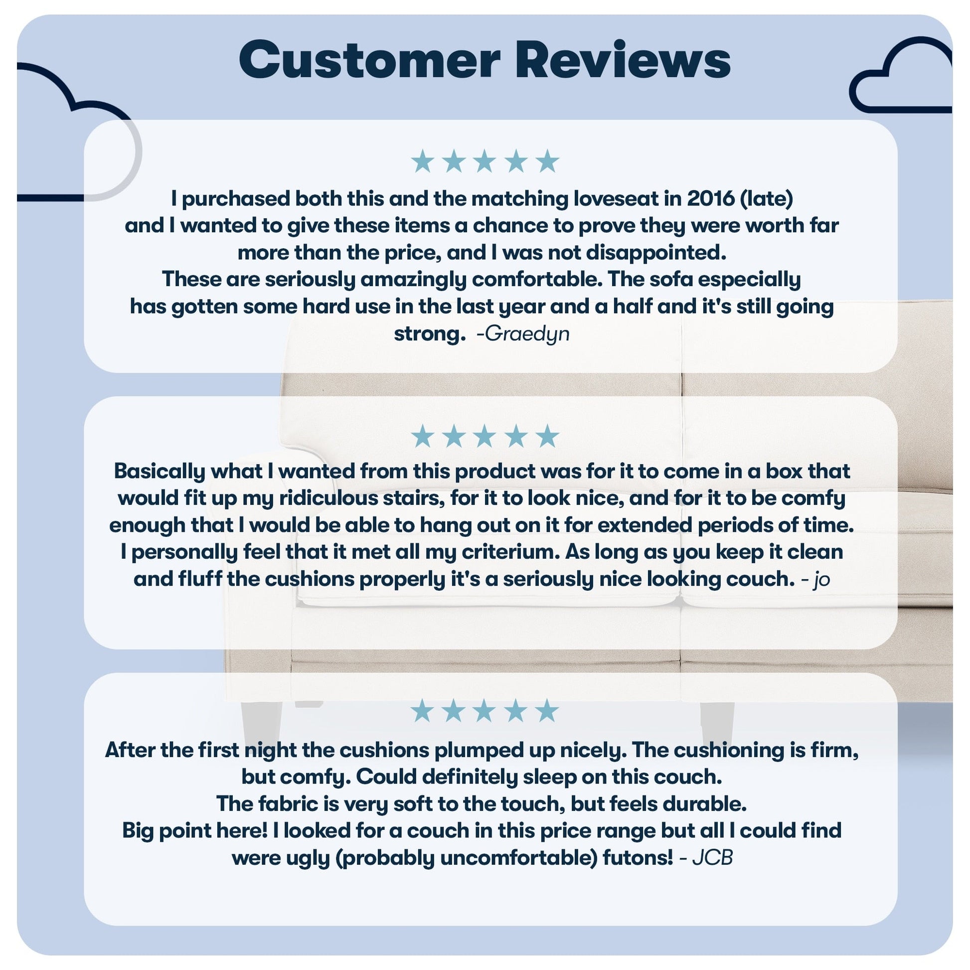 - Sit Back &Relax: The loose pillow backs are generously filled with soft fibers and supported by structured webbing within the backrest for comfort and support. The pocket coil seat cushions filled with high-density foam provide a semi-plush sit and have removable covers for effortless cleaning.