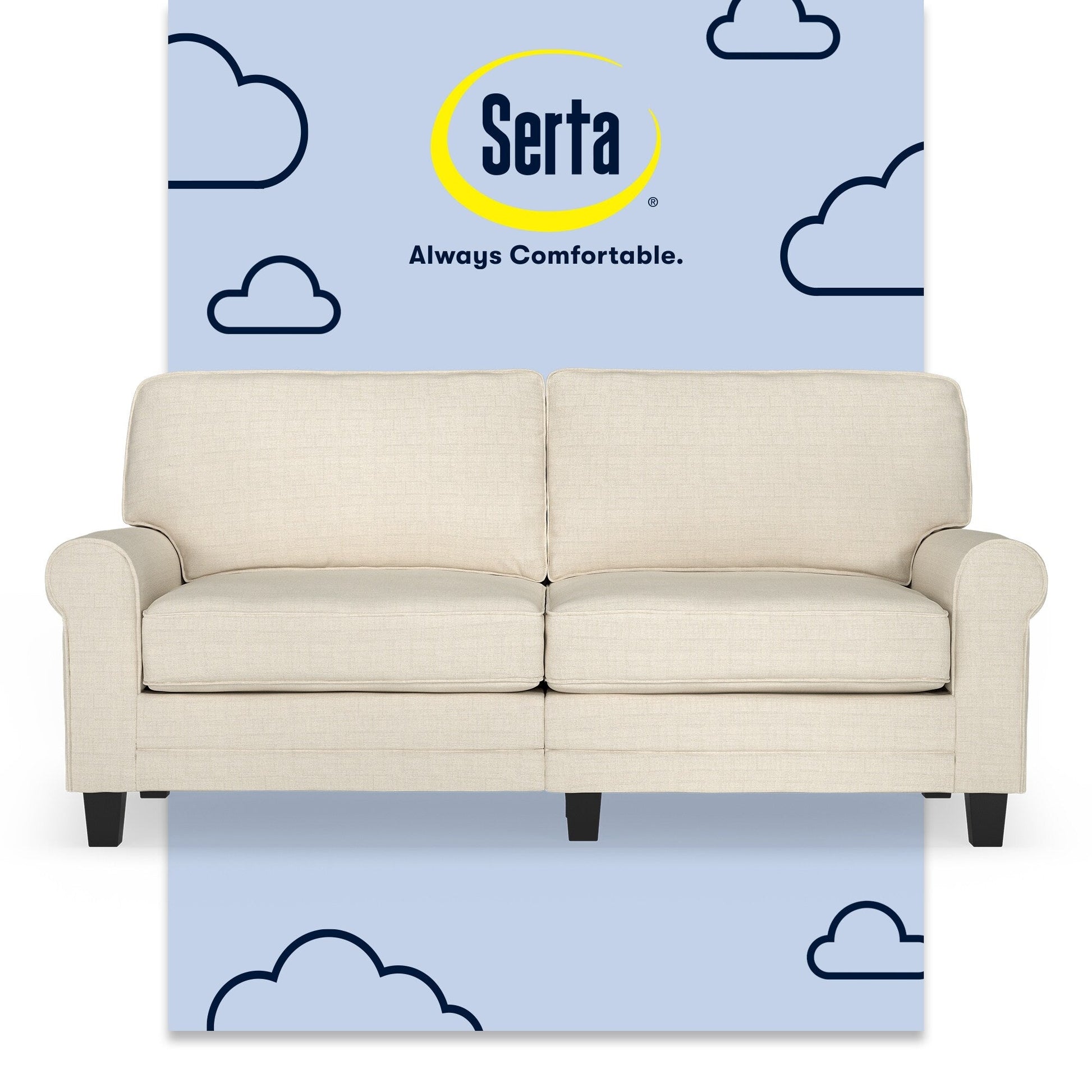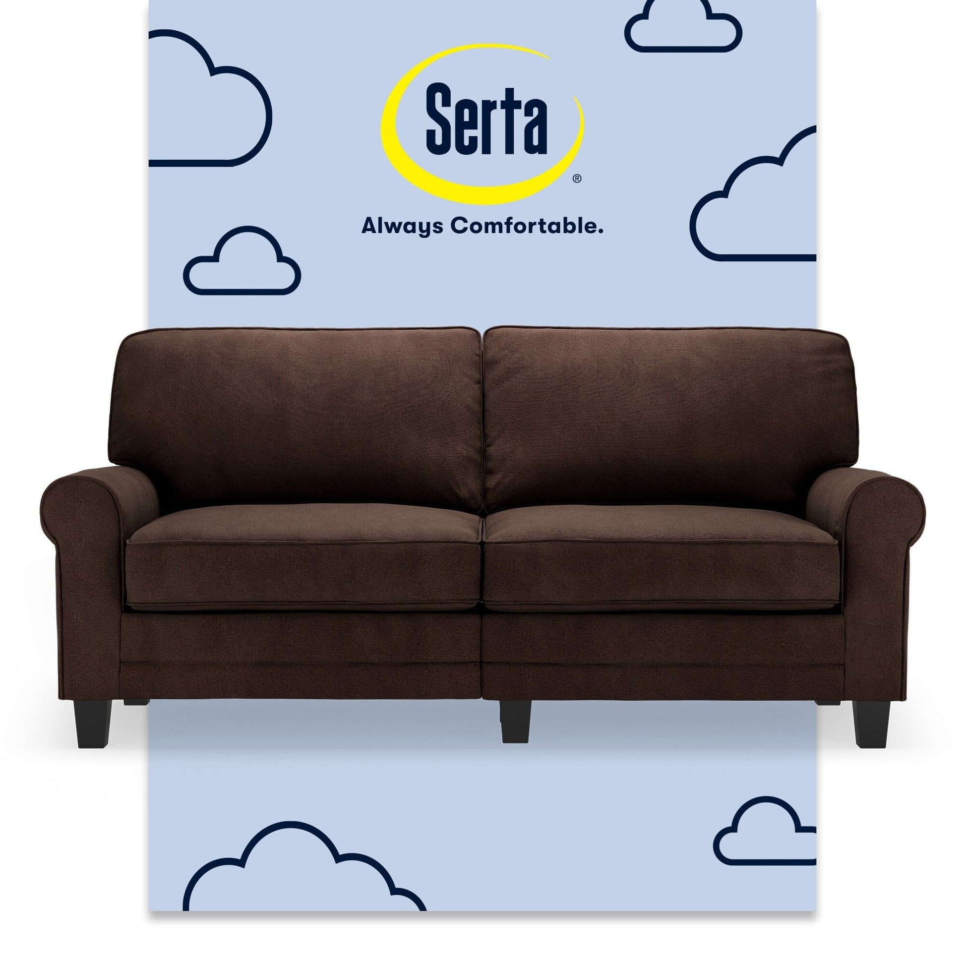 Serta Copenhagen 73 Rolled Arm Sofa, Easy Care Polyester, Soft Pillow Back, Pocket Coil Seat Cushions