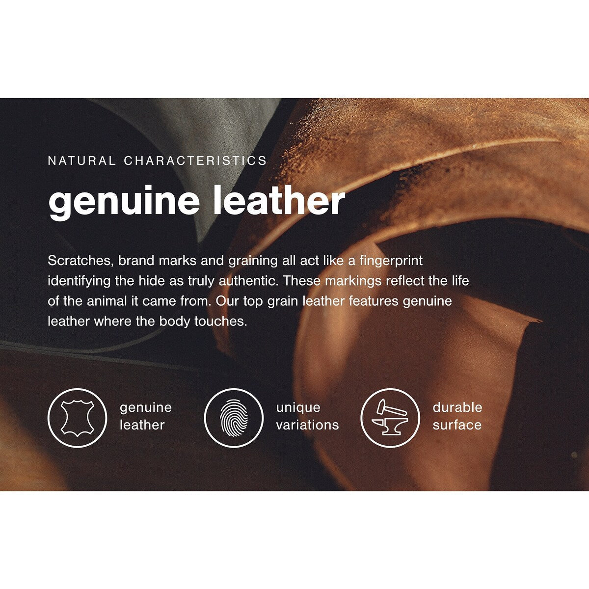 Due to its natural origin, real leather can show individual characteristics such as healed scars, growth marks, grain variation and shade variation