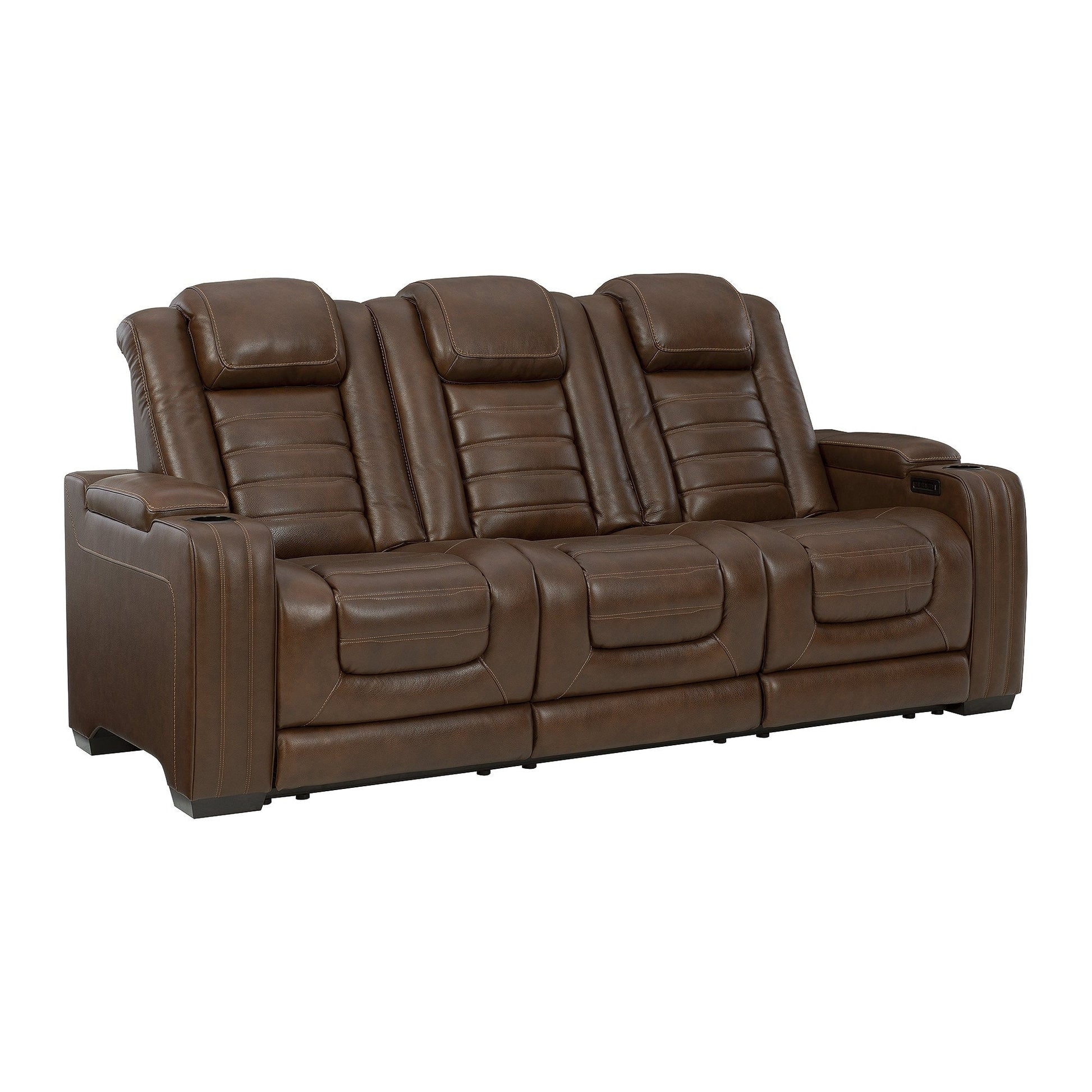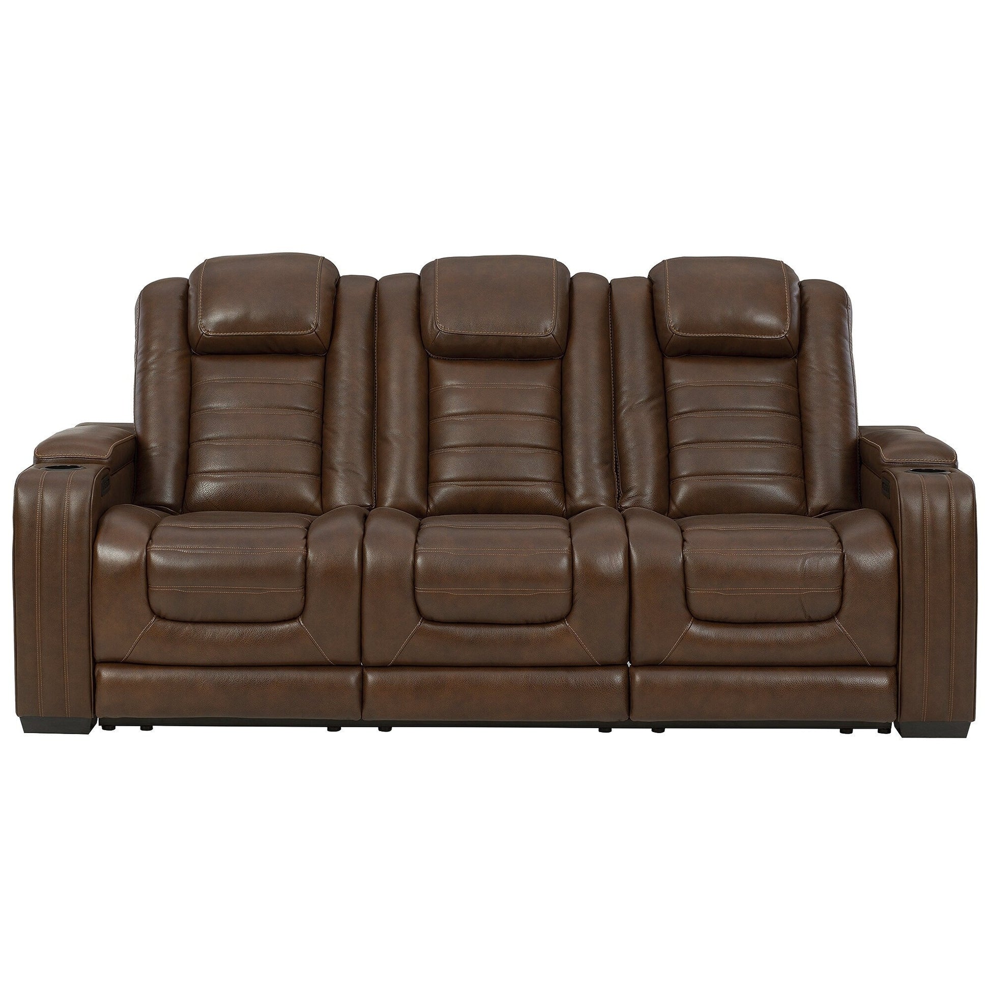 With its fashion-forward sense of style, this power reclining sofa has you covered with high-tech advancements and down-home comfort. Combination leather and faux leather upholstery keeps luxury comfortably within budget. Love being pampered? With the touch of a button, experience the pure bliss of an air massage system (with three settings), or chill out with the heated seat element. Distinctive elements of this power recliner include contemporary waterfall tufting that beautifully goes with the flow and a zero-gravity mechanism further raising the ottoman for better blood flow.