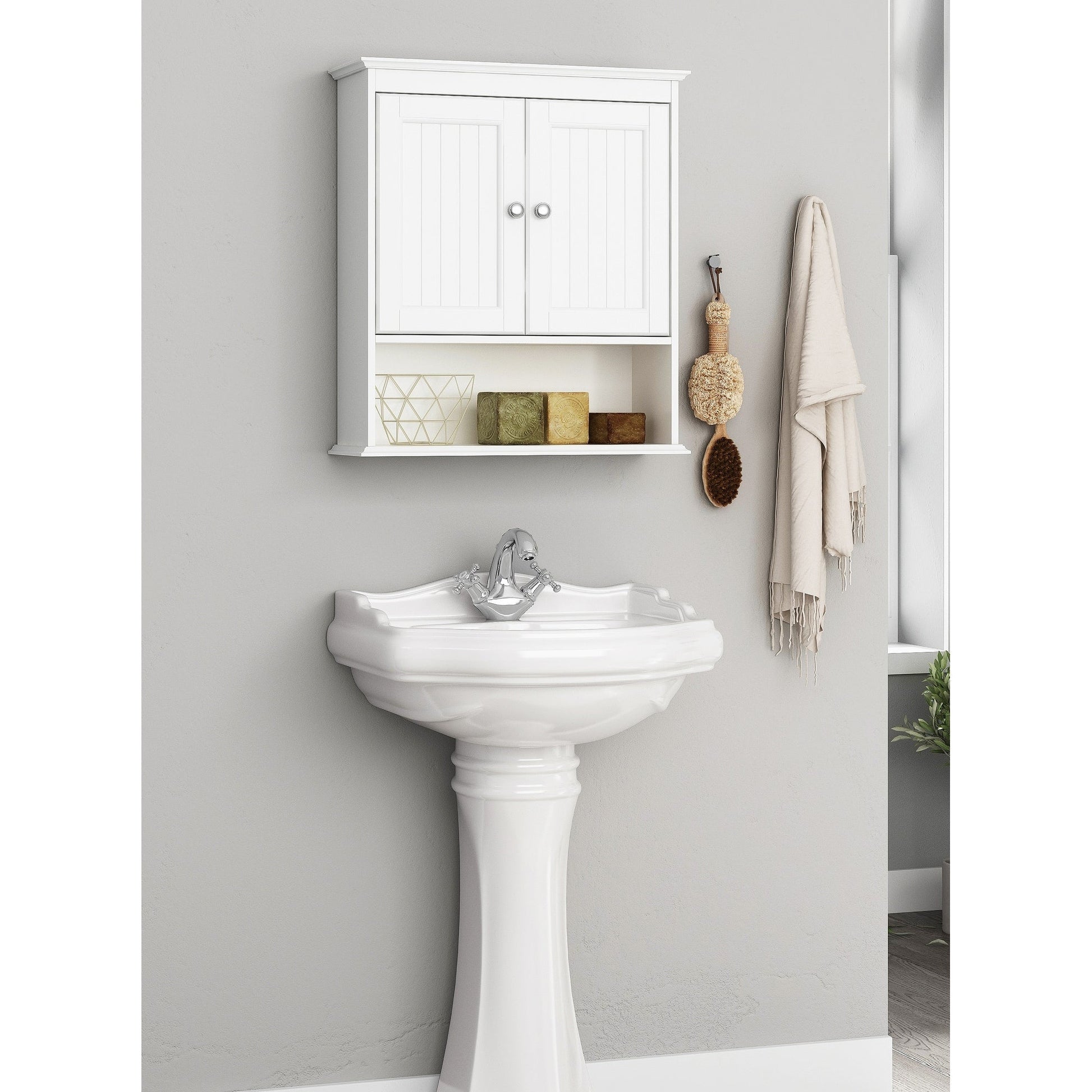 Utilize your unused bathroom space and find room for all your storing and displaying needs with this wall cabinet. With solid manufactured wood construction and a classic soft finish, it projects a bright, cheery look that will enhance your home decor. Revamp the entire bathroom with all four spirich beadboard collections items