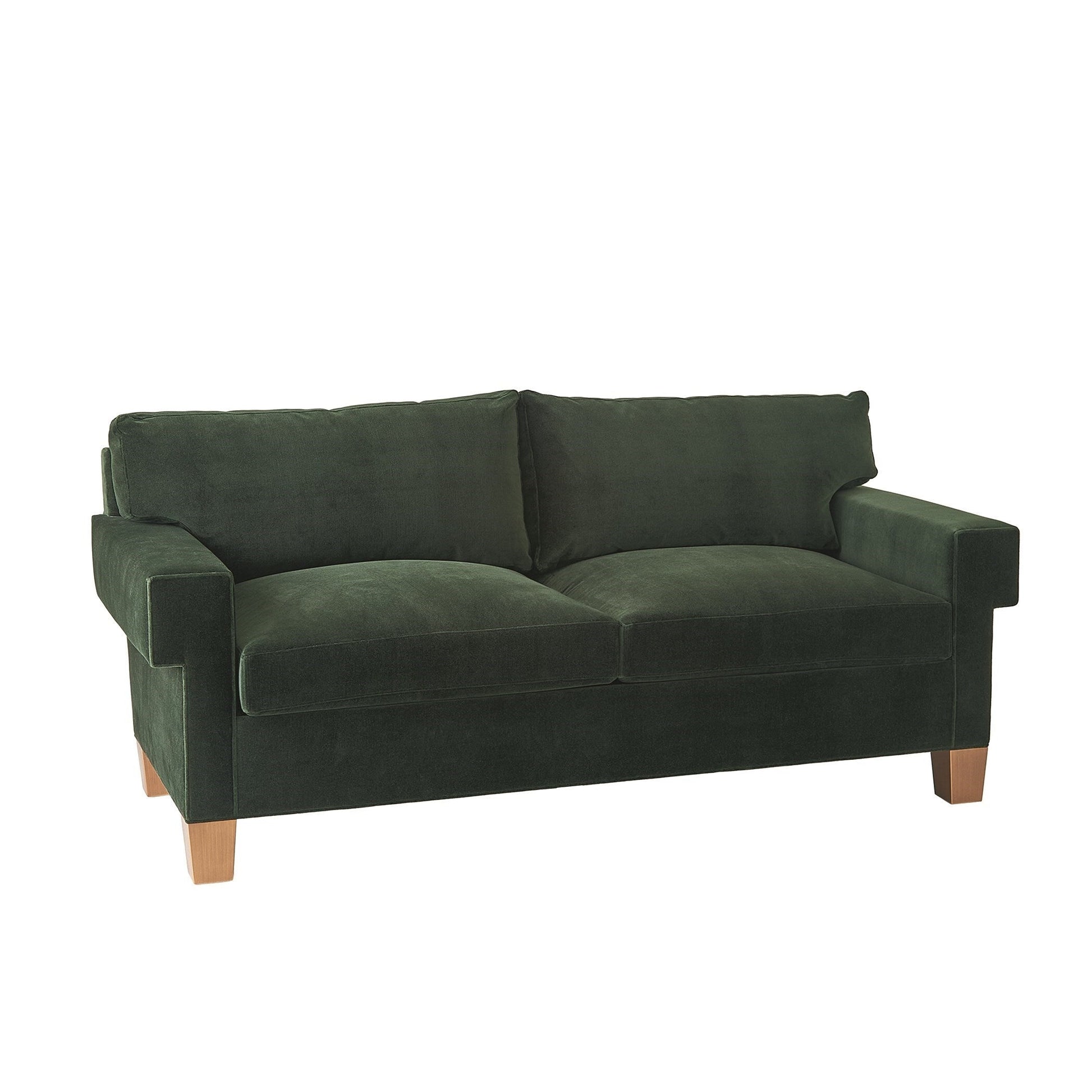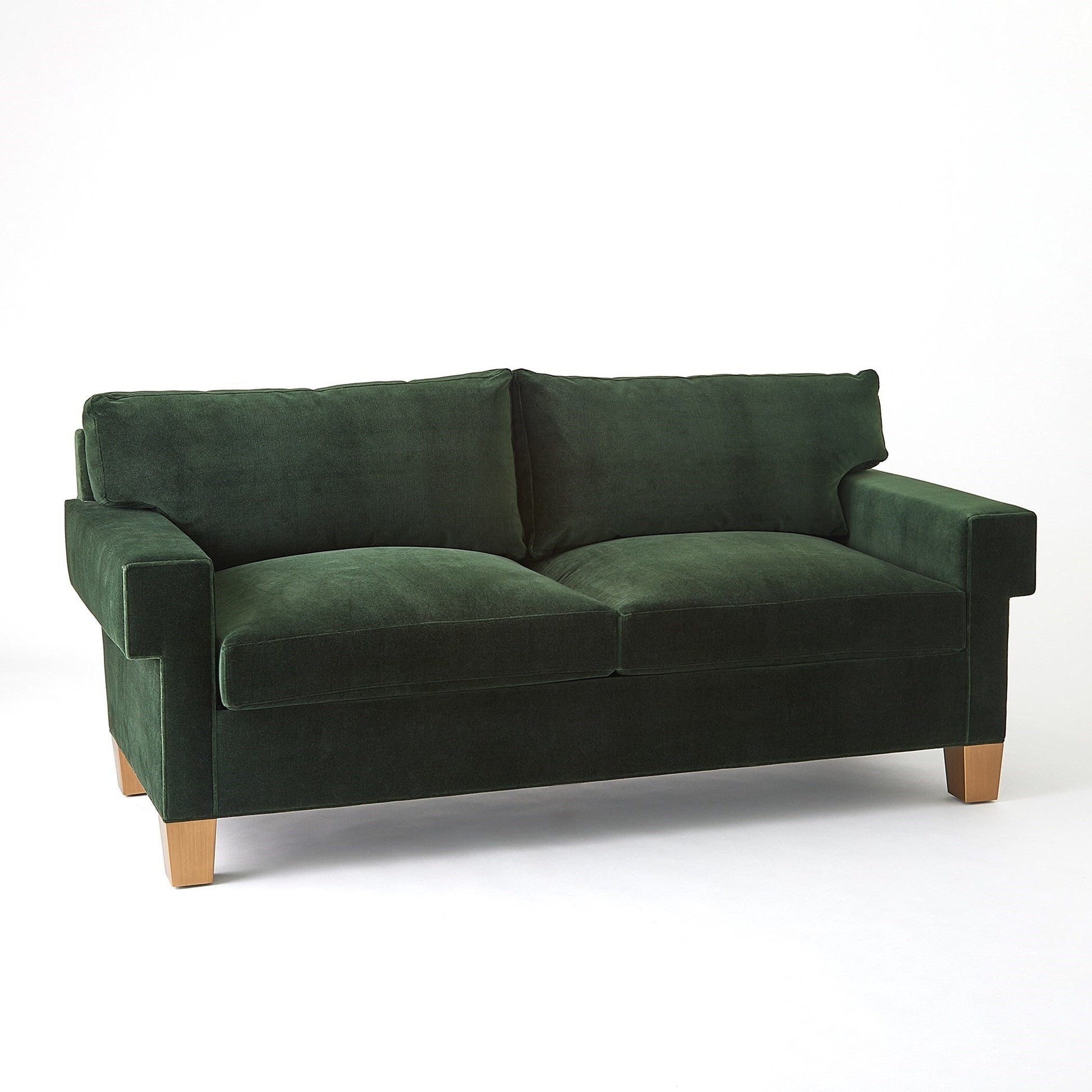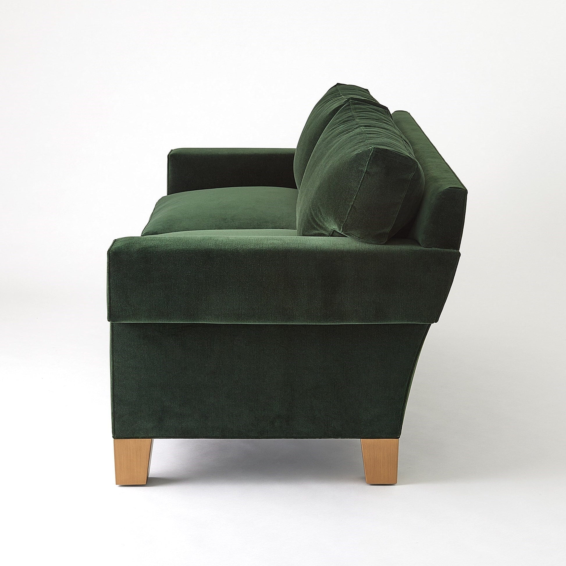 Experience the perfect blend of 1940s Modernism and Art Deco design with our Square Arm Sofa and Chair, a sleek and sophisticated masterpiece that redefines comfort and style. Crafted with precision, this sofa boasts walnut veneer accents and luxurious velvet fabric, creating a living room centerpiece that's as elegant as it is inviting.