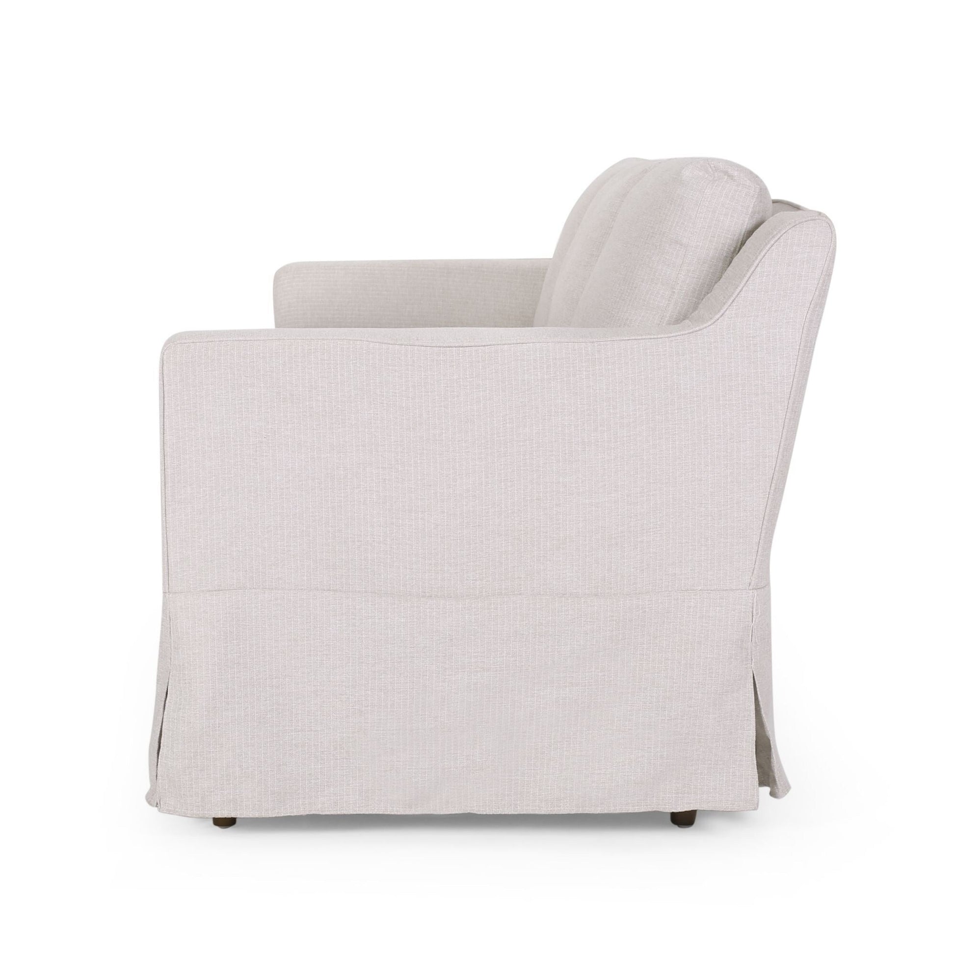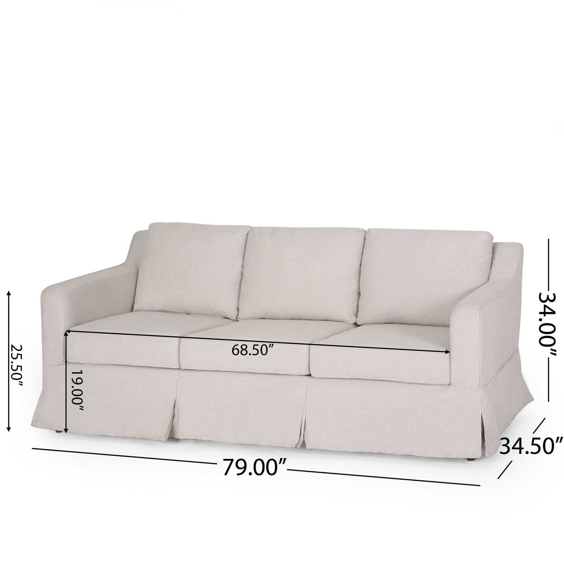 Comfortable Fabric Material: Crafted from high-quality fabric, this sofa offers a comfortable seating experience for three people. The fabric upholstery is soft to the touch and breathable, providing a cozy and inviting feel.