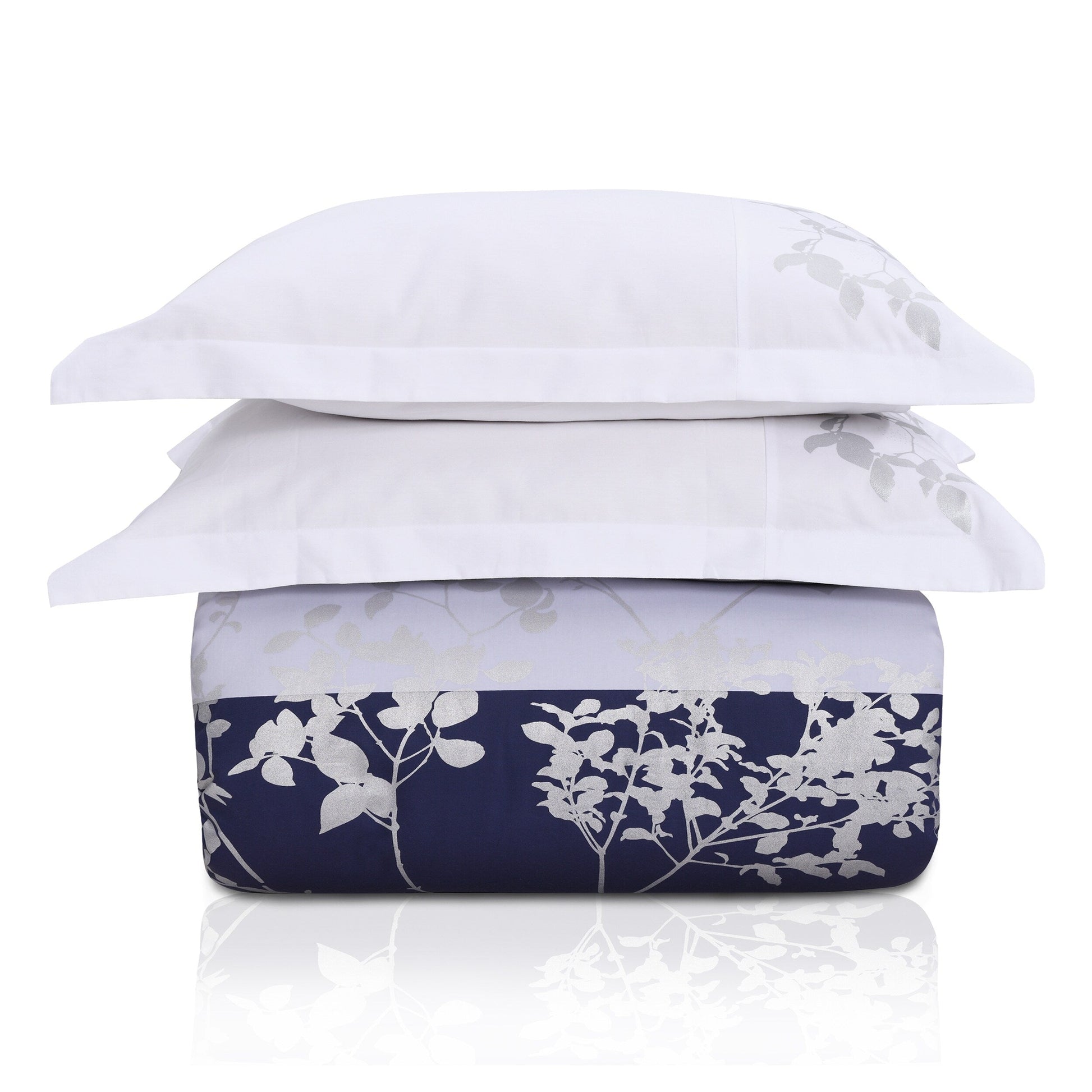 Change up your bedding with this Sydney duvet cover set's chunky tonal stripes and silver leaf and branch graphic. Crafted from 100% premium cotton in a sateen weave, this duvet cover with coordinating pillow shams offers exceptional softness and a silky smooth touch that feels great against your skin.