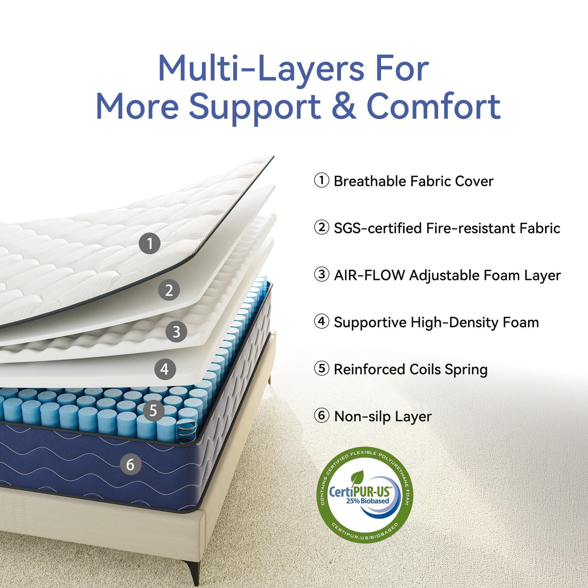 SweDrea 10 in. Firm Hybrid Mattress Cooling and Breathable with CertiPUR-US, SGS and OEKO-TEX