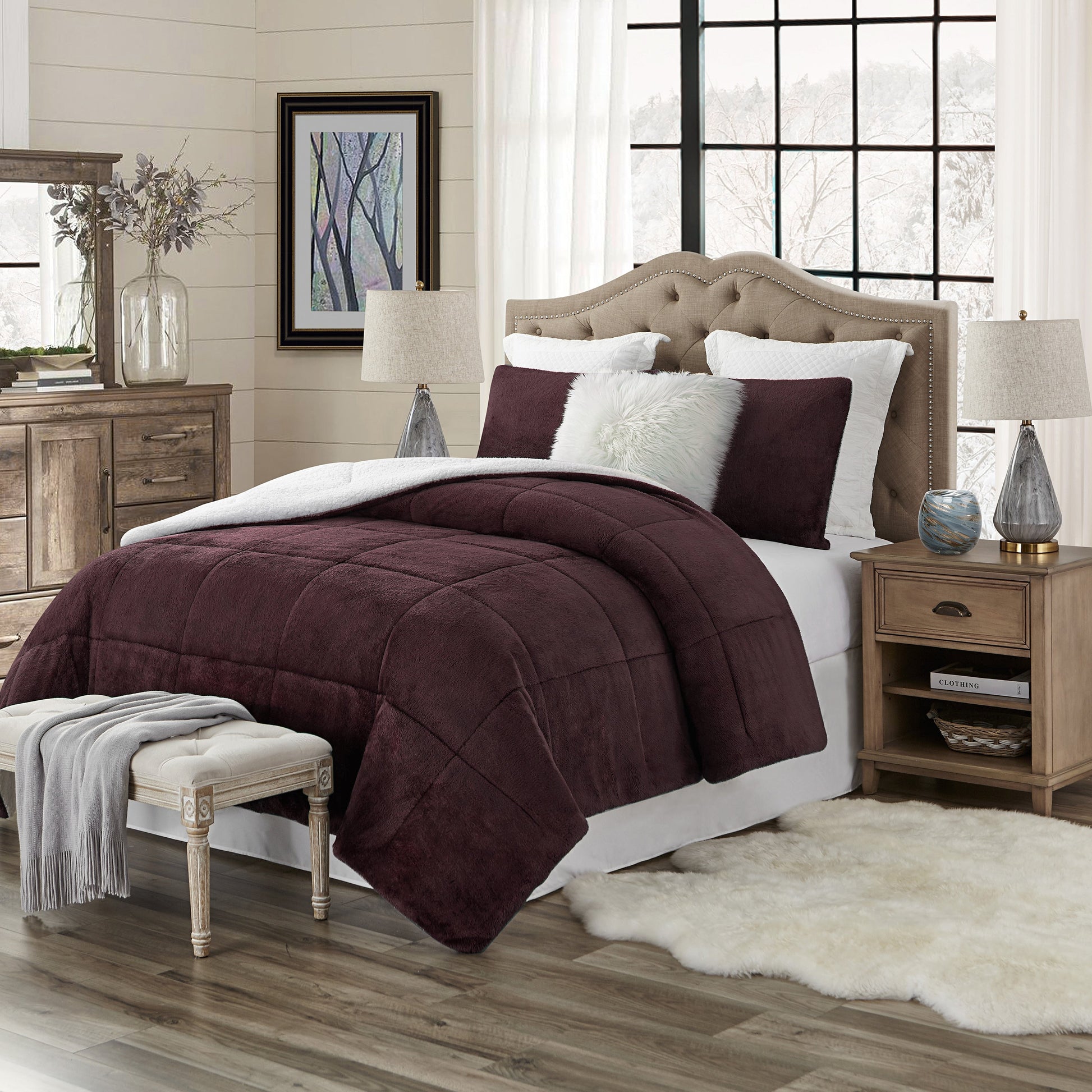Indulge in ultimate comfort and luxury with the Swift Home Plush and Sherpa Comforter Set. The high-pile yarn creates a sumptuous cotton candy texture on the plush imitation-fur face, while the Sherpa backing adds extra warmth and coziness. Available in navy, chocolate, grey, or wine, this well-coordinated set includes two matching shams and is reversible for ultimate versatility. Crafted from ultra-soft, hypoallergenic microfiber, this comforter set is perfect for all-year-round use and fits effortlessly into any decor.