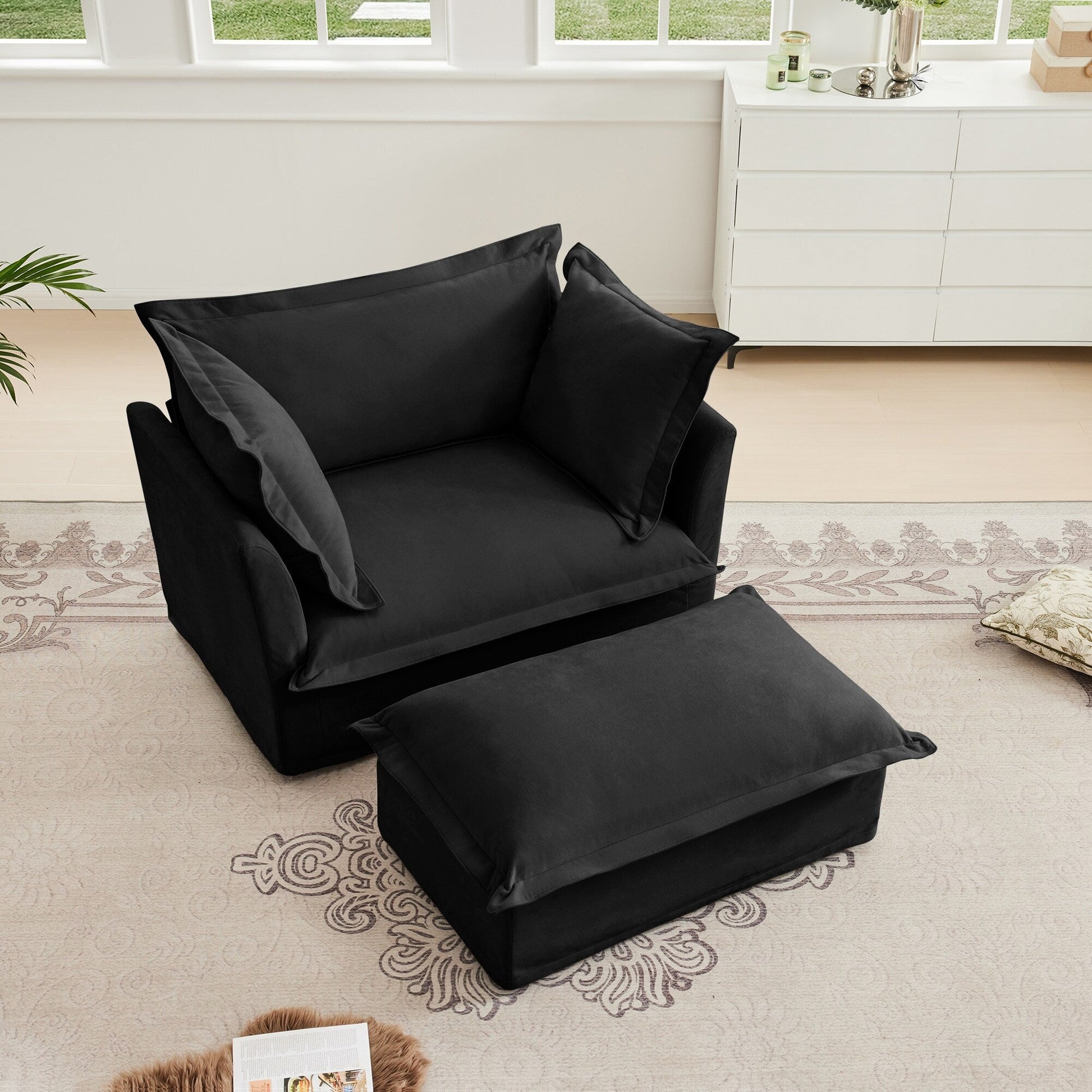 Upholstered Slipcovered Armchair with Ottoman, Deep Seat Armchair W/ Wide Ottoman for Living Room