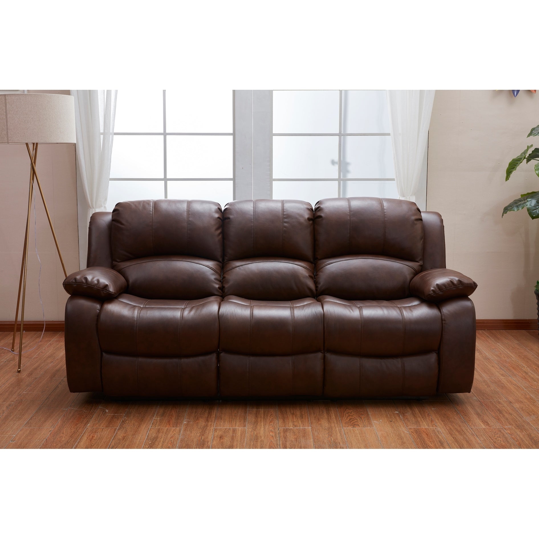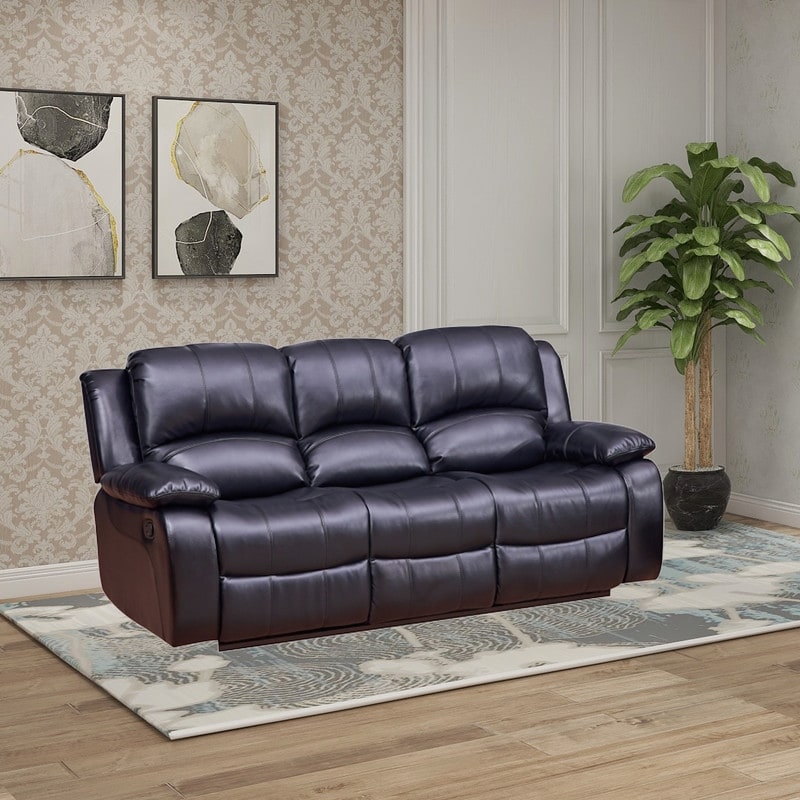 Upgrade your living room with the ultimate comfort provided by the Vanity Art Bonded Leather 3-Seat Recliner Loveseat. With a capacity of up to 3 people, this couch features 2 end seats that fully recline and can easily return to a sit-up position. Overstuffed with high-density soft memory foam and upholstered in durable, soft bonded leather that looks and feels like real leather, this recliner couch is designed to provide comfort, style, and sturdiness for years to come.