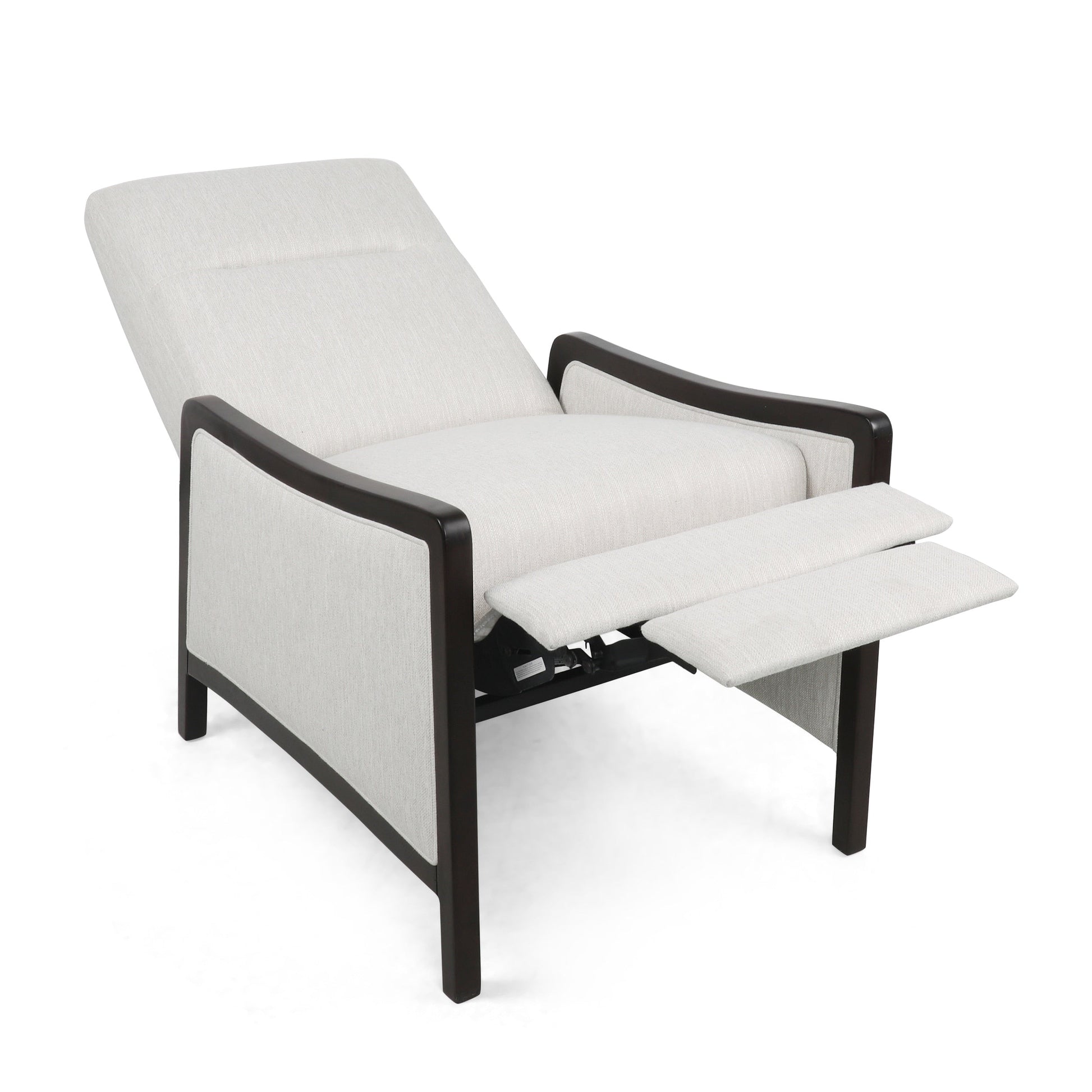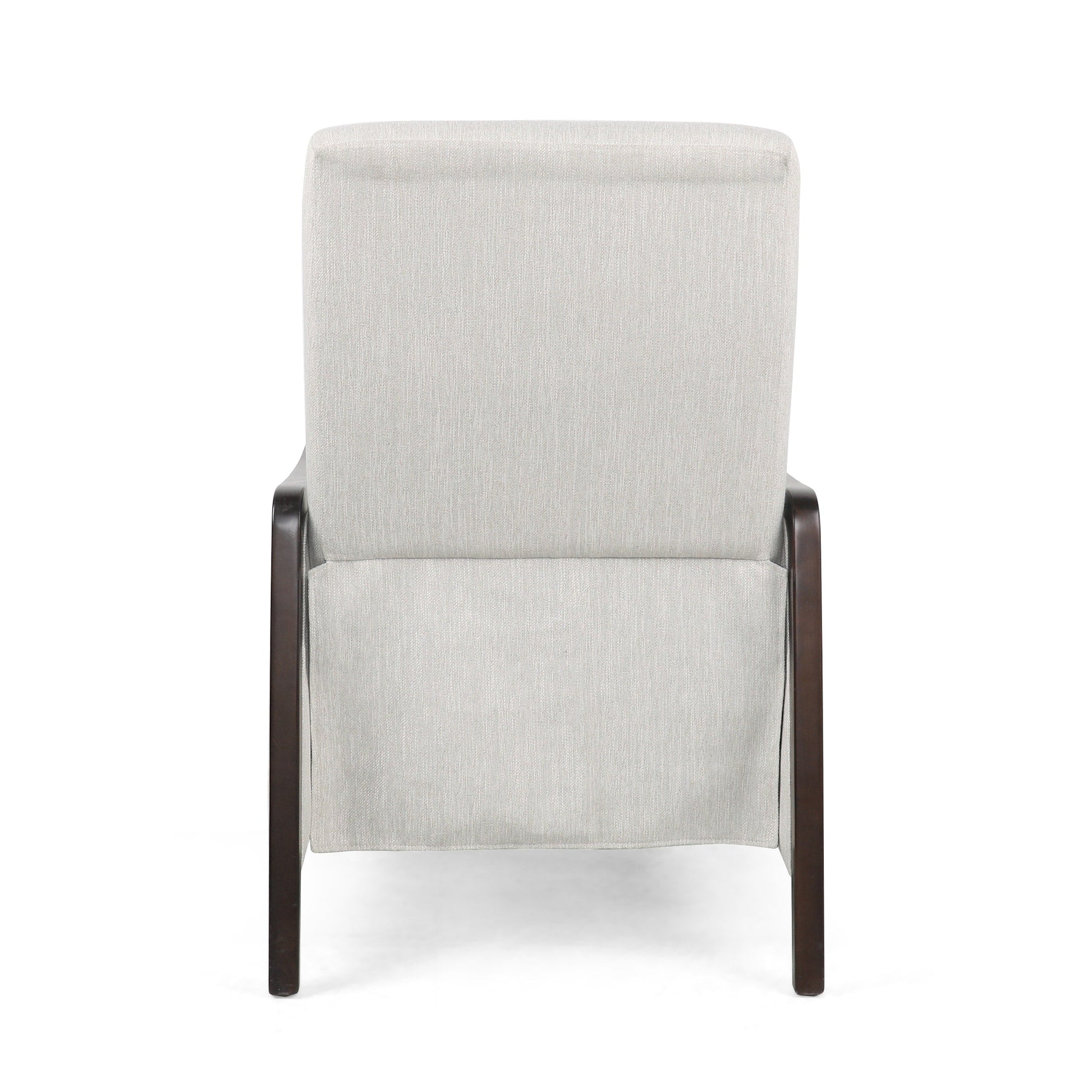 Take relaxation to another level with the perfect seating for your home. Our convenient recliner chair provides an incredibly high degree of leisure in an attractive package, emphasizing a charming contemporary design with a mid-century modern twist. Featuring refined upholstery and a rich wood frame, this recliner pairs perfectly with the push-back functionality allowing for high comfort with little effort. Sure to become the new favorite spot of leisure, you and your family will surely enjoy this recliner for years to come.