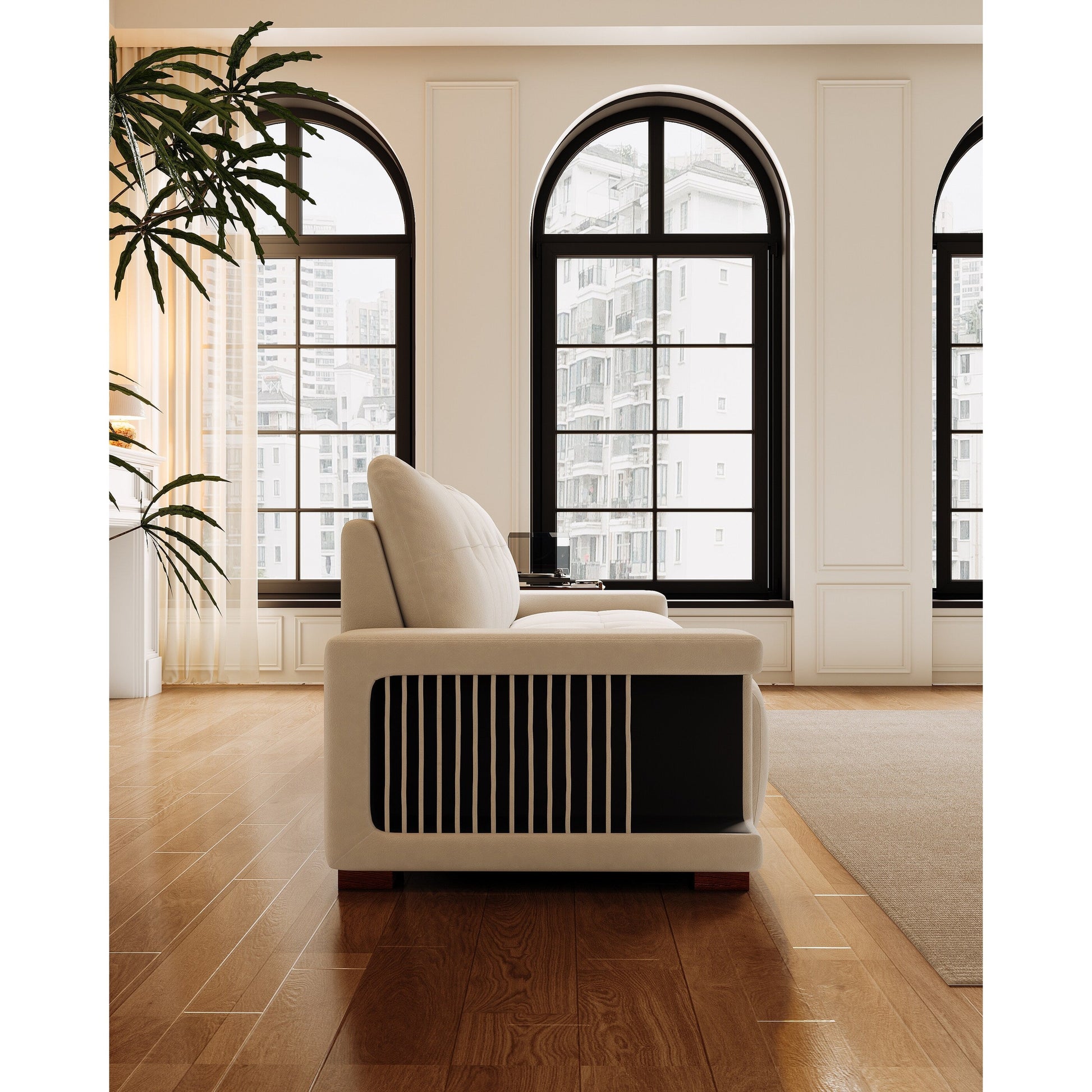Unique Sofa Design: This modern sofa has a unique space under the armrests, allowing your cat and dog to rest inside. When you rest on the sofa, your cat and dog can accompany you together. This 89' small space couch is suitable for apartments, dorms, bedrooms, and medium to small living rooms.