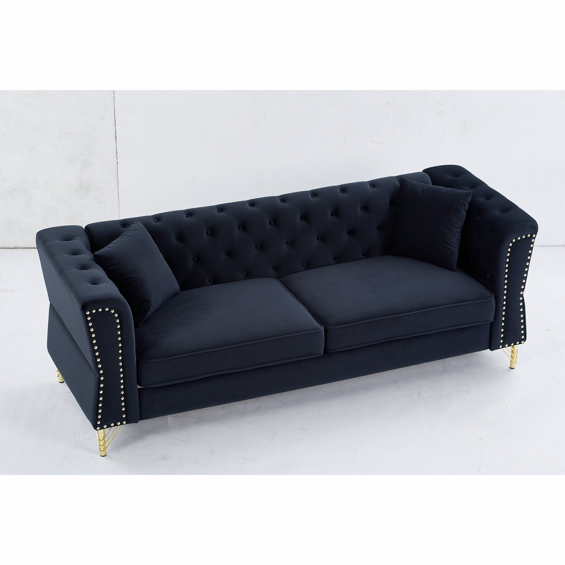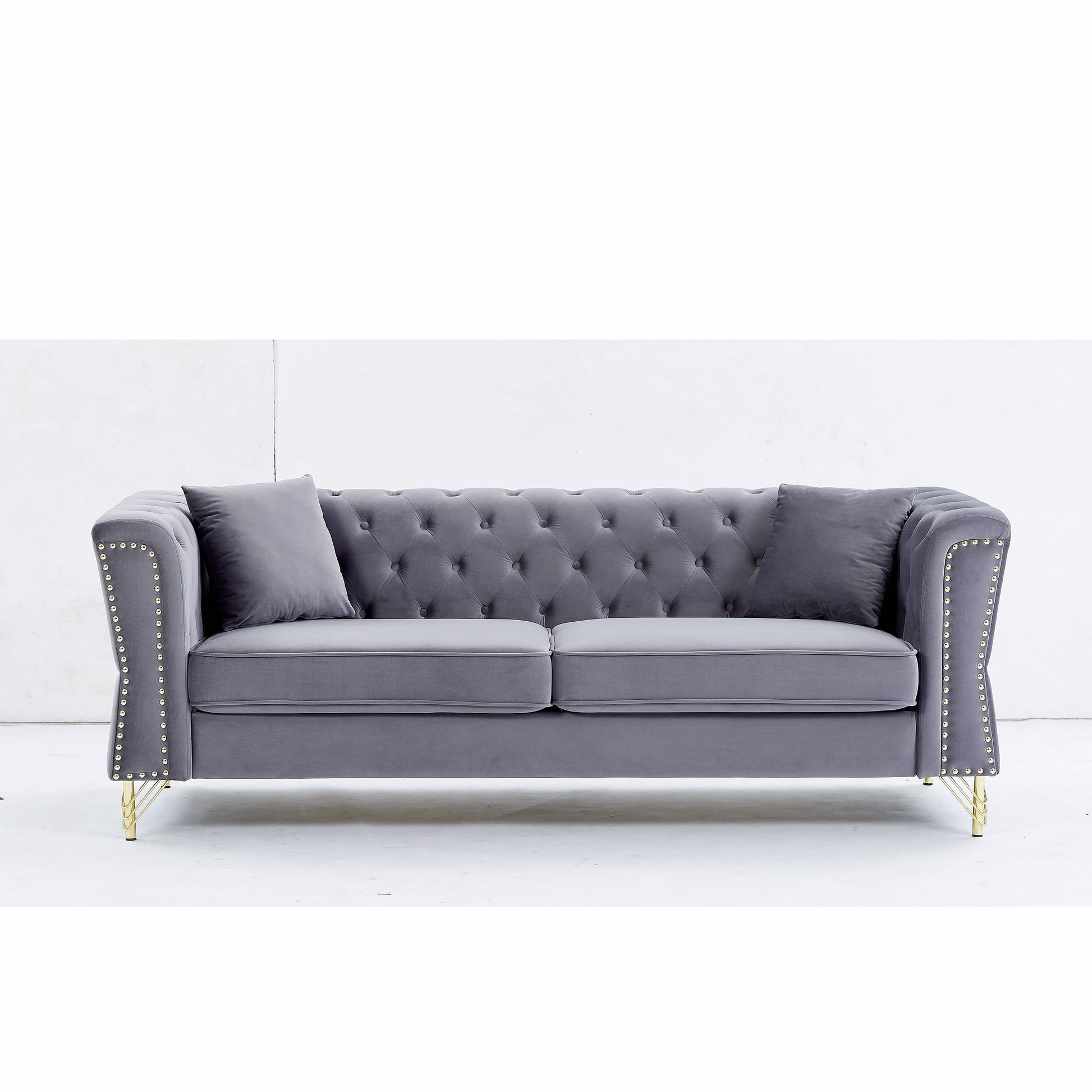 Sturdy and Durable: The frame of the sofa is made of solid wood for added sturdiness and durability. With comfortable foam, soft cushions supported by a curved spring structure, and tufted buttons on the back and arms, this sofa is perfect for those who want to rest after a busy day.