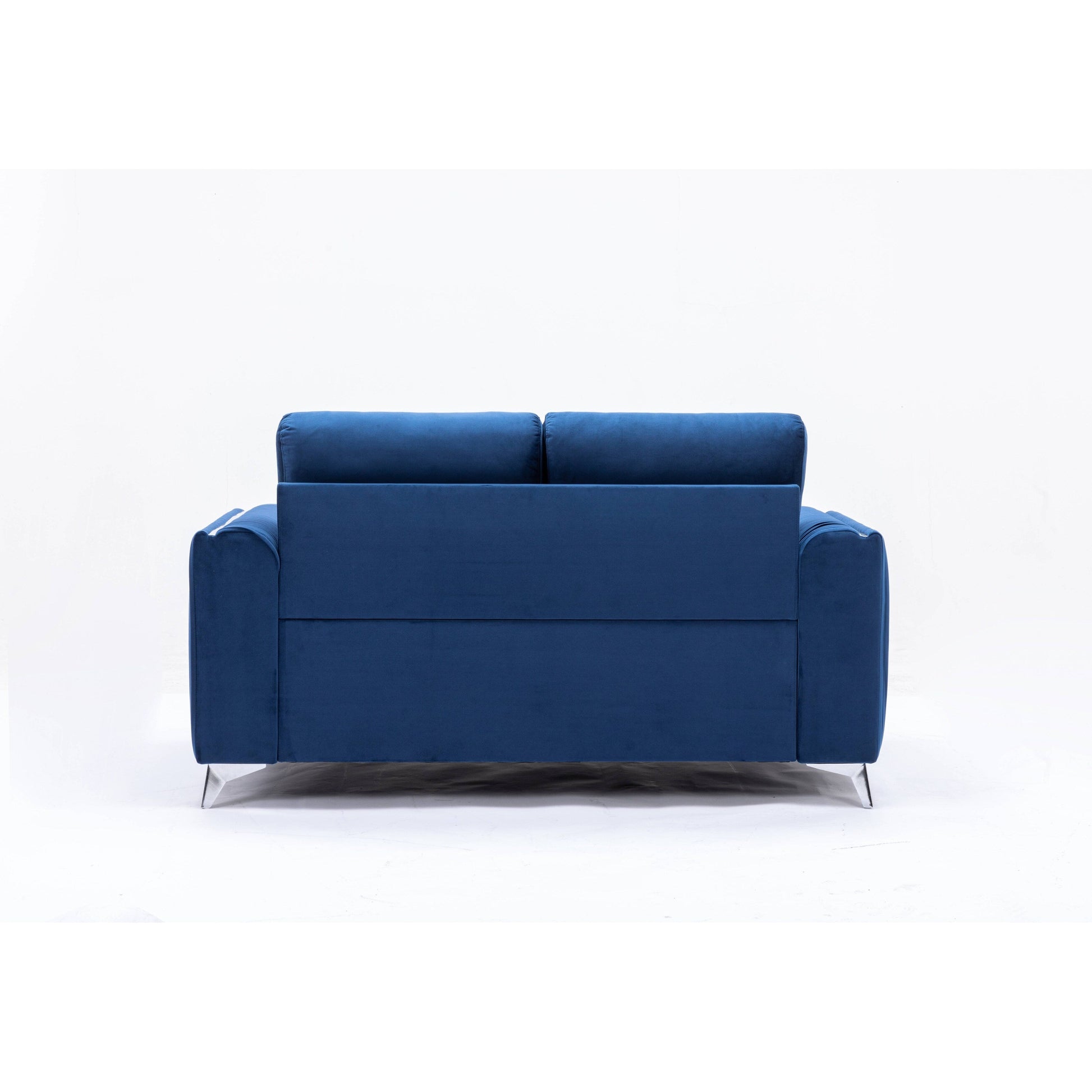 Make a bold statement with the Wenona blue velvet loveseat. The blue color of the velvet upholstery is a classic color that will provide a fun pop of color in any home. This loveseat is highlighted with polished chrome trim accents along the armrests and legs to match. The armrests boast eye-catching vertical pleating that creates a beautiful contemporary 3-D effect. This loveseat offers plush pocket coil seating for hours of comfort around the TV with the family.