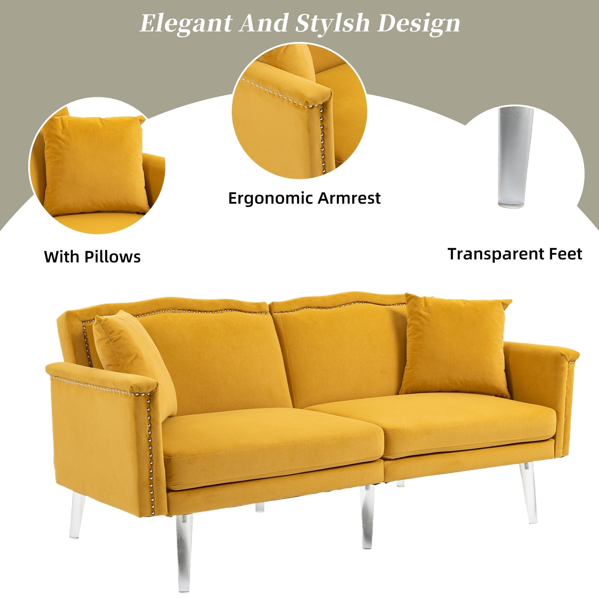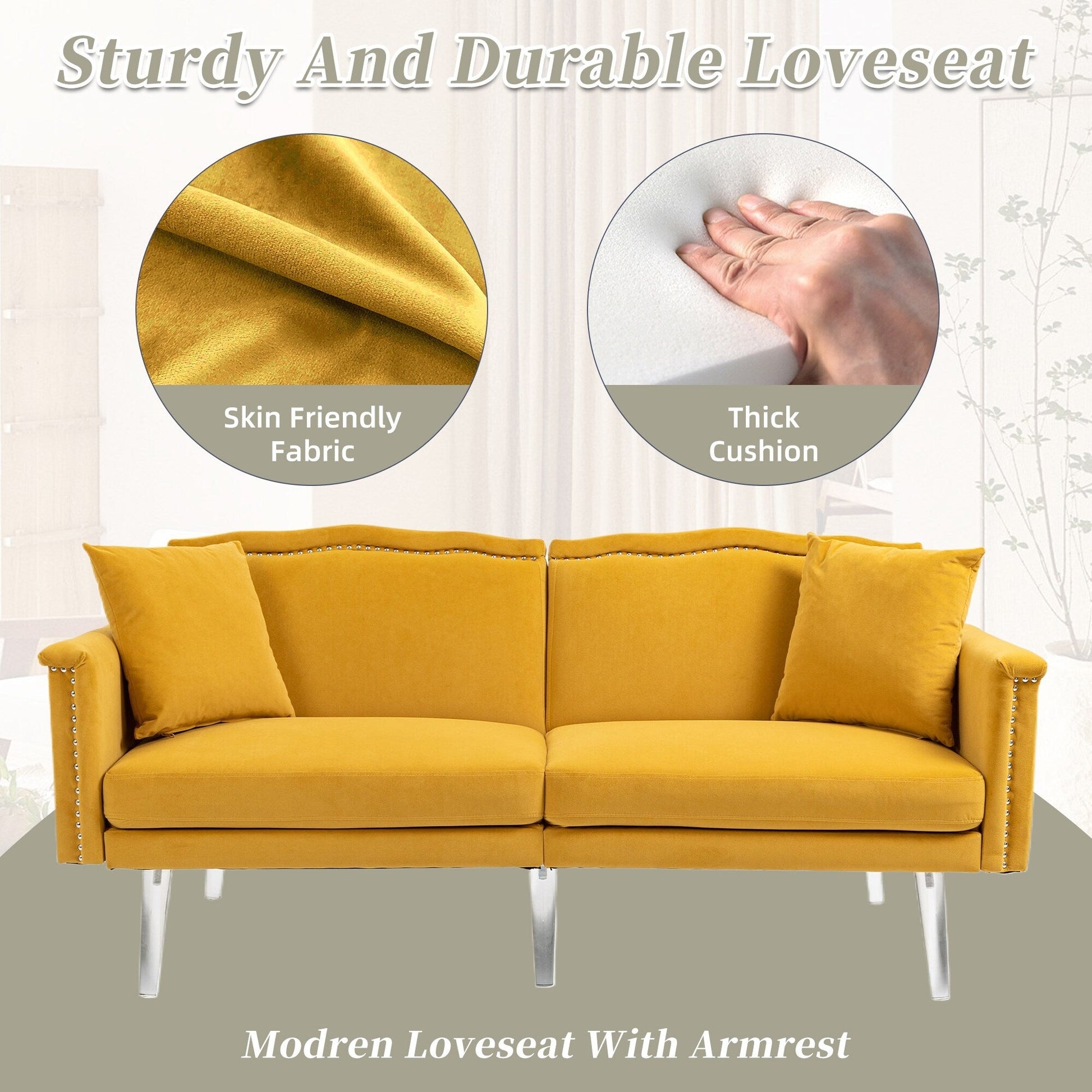 à ãBE A PART OF YOUãCoolmore high-quality small couch with low back design to support the back and waist, rescuing from fatigue! Classic shape & retro details--a typical Mid-Century Morden 3-seated sofa that will brighten your room with retro feel. Fit for living room, bedroom and home office. Obeviously, you'll love this sofa and so will your friends and family.