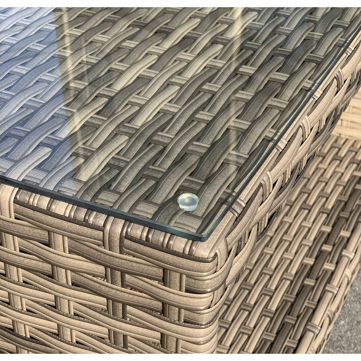 Transform your outdoor space into a cozy retreat with the Ventura 12-Piece Deep Seating Set. Crafted with a strong and durable rust-free aluminum frame, this set is both lightweight and versatile. The all-weather resin wicker used to hand weave each piece ensures resistance to UV rays, moisture, mold, and inclement weather. The set includes 2 armless chairs, 4 single-arm chairs, 2 club chairs, 2 ottomans, 1 side table, and 1 tempered-glass top table, all designed to provide ample room for lounging and entertaining. The generously sized chairs feature wide arms and roomy seats for added comfort. The seat cushions are 5' thick and engineered with resilient foam core wrapped in extra soft polyester sheet covered by long-lasting Olefin? fabric. With the Ventura 12-Piece Deep Seating Set, you can enjoy a sophisticated contemporary look that will last for many seasons to come.